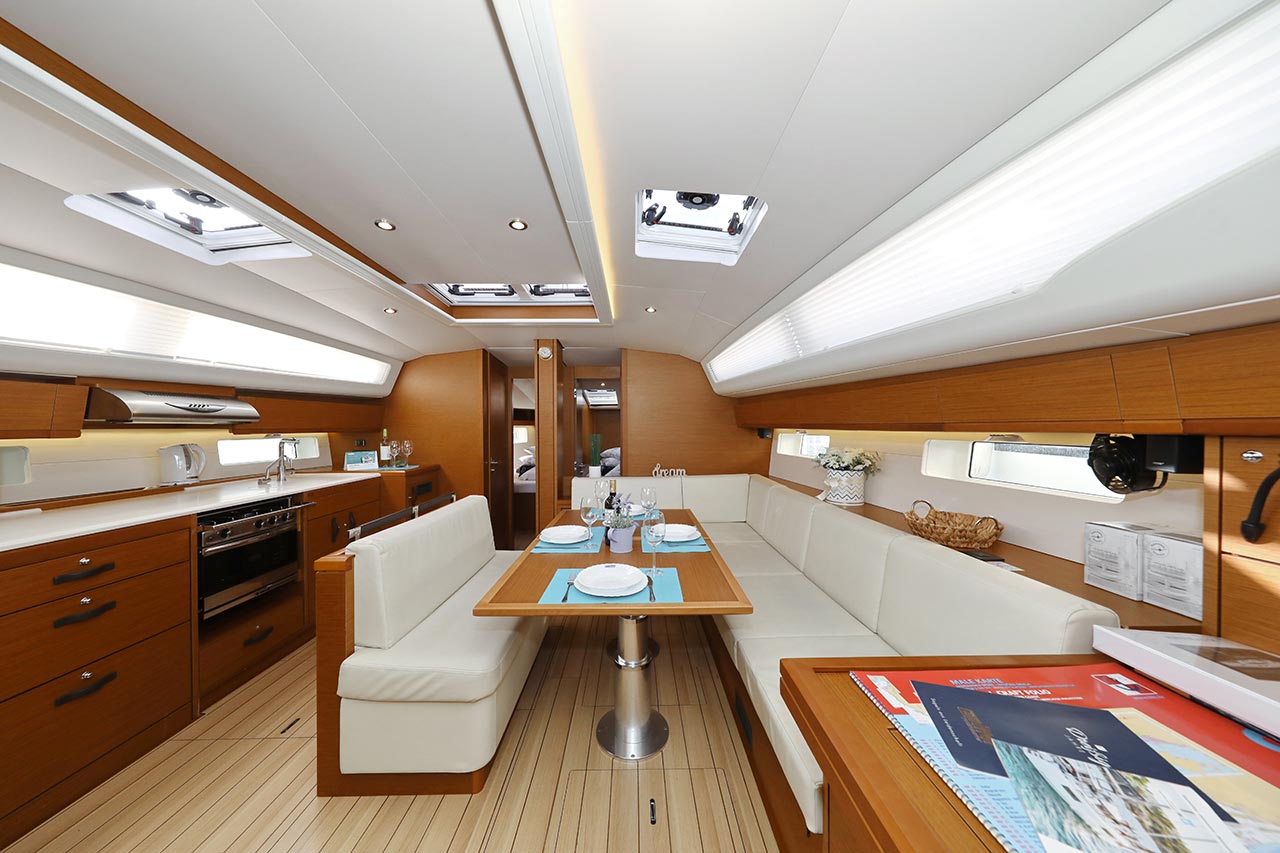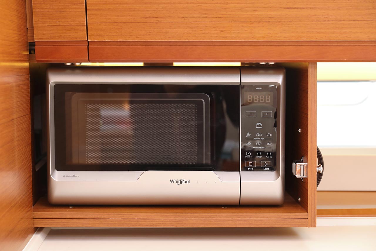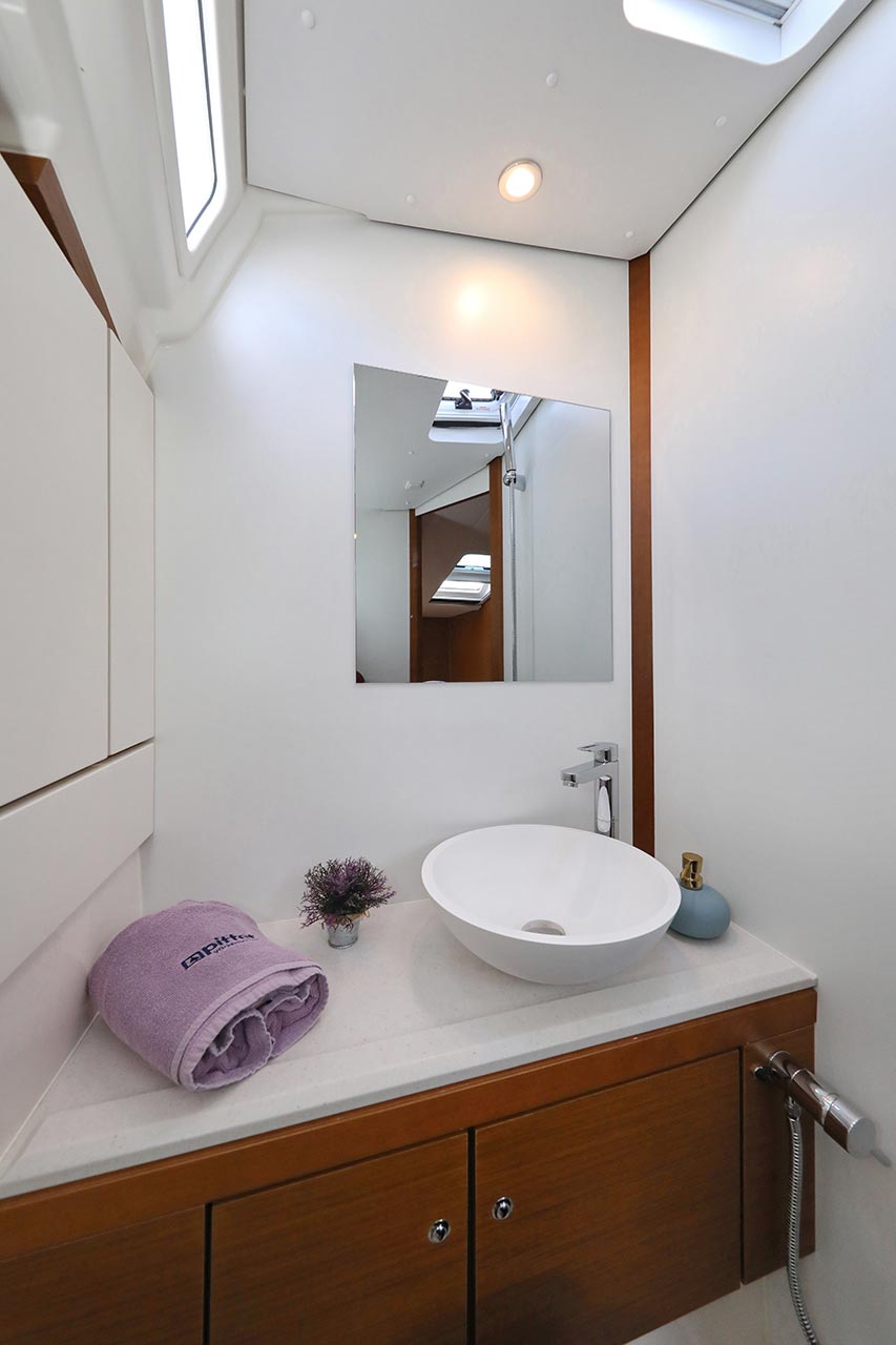 | Inside | 2. Kühlschrank, Borduhr, Dusche, DVD-Player, Heizung, Inverter 12V/220V, Kühlschrank mit Gefrierfach, Ladegerät, Luftpumpe für Beiboot, Mikrowelle, Pantryausstattung, Radio mit MP3 , Warmwasser |