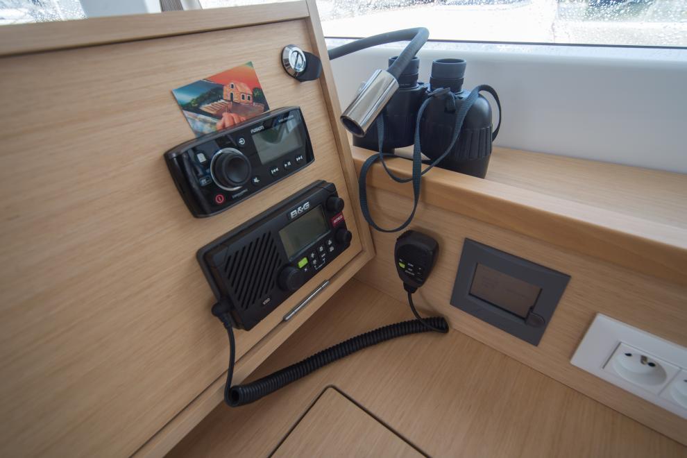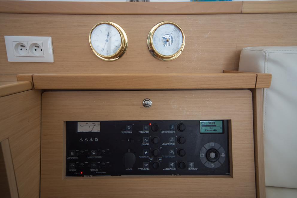 | Outside | 12 V-Anschluss, Badeleiter, Biminitop, Cockpitdusche, Cockpitlautsprecher, Cockpitpolster, Cockpittisch, Davits, elektr. Ankerwinsch, elektr. Winsch, Selbstholende Winschen, Sprayhood |