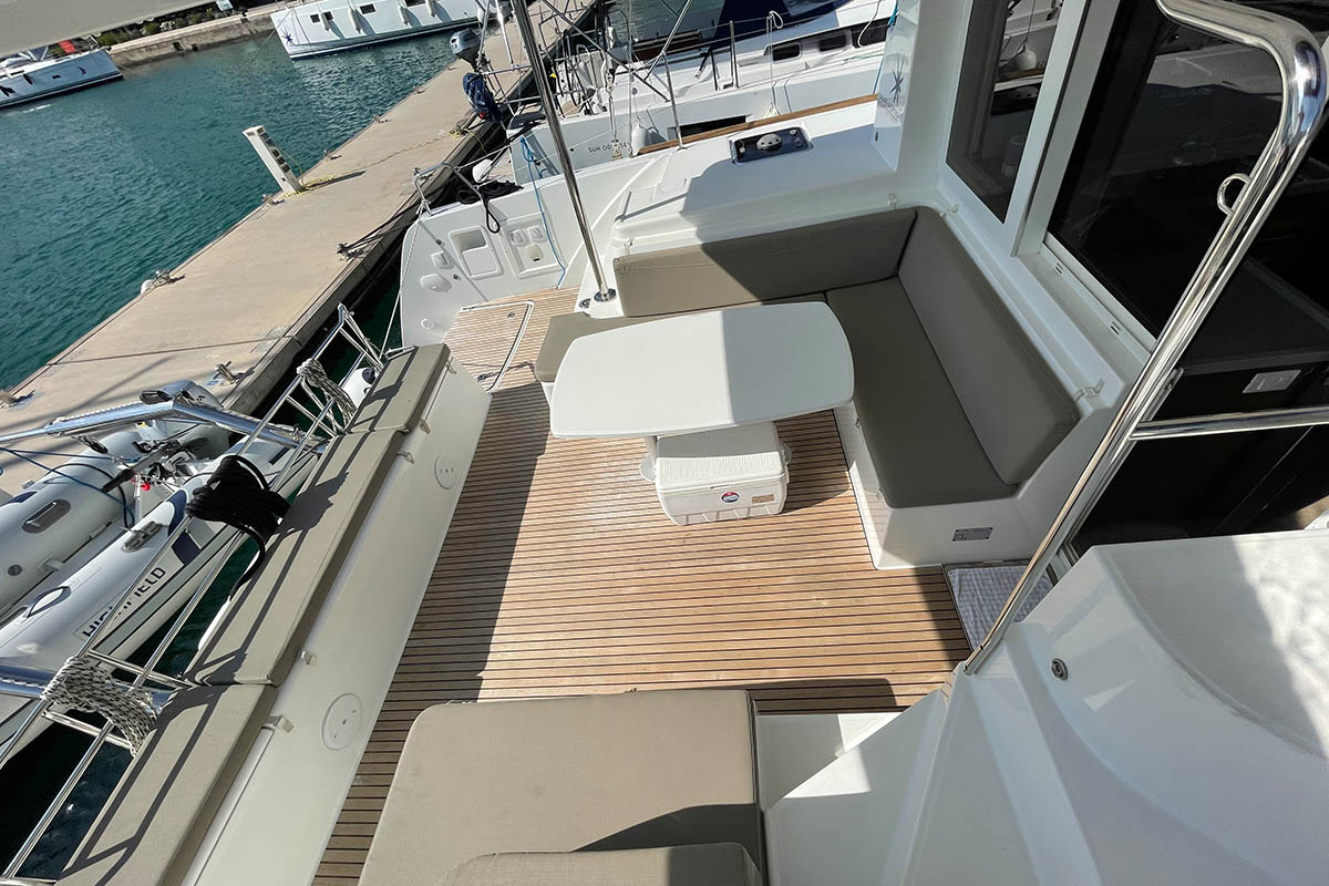 | Outside | Anker mit Kette, Badeleiter, Badeplattform, Biminitop, Cockpitdusche, Cockpitlautsprecher, elektr. Ankerwinsch, elektr. Winsch, Sprayhood, Winschen |