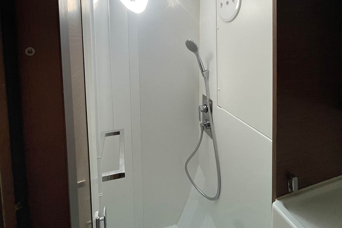 | Inside | 12V/220V-Steckdosen, Eisbox, Fäkalientank, Heizung, Kühlschrank, Ladegerät, Lautsprecher im Salon, Pantryausstattung, Radio mit CD und MP3, USB Steckdose, Wasserkocher |