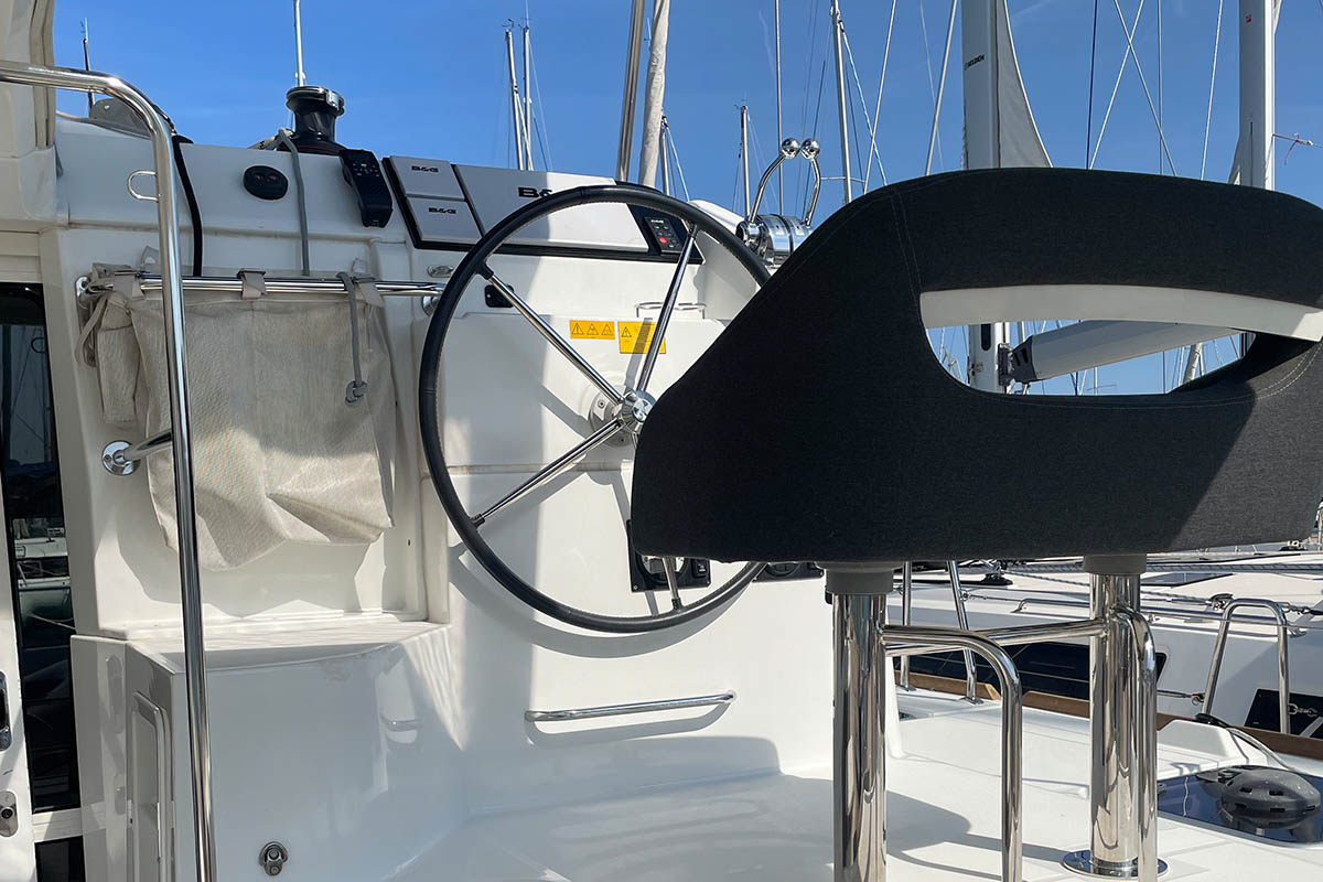 | Outside | Anker mit Kette, Badeleiter, Badeplattform, Biminitop, Cockpitdusche, Cockpitlautsprecher, elektr. Ankerwinsch, elektr. Winsch, Winschen |
