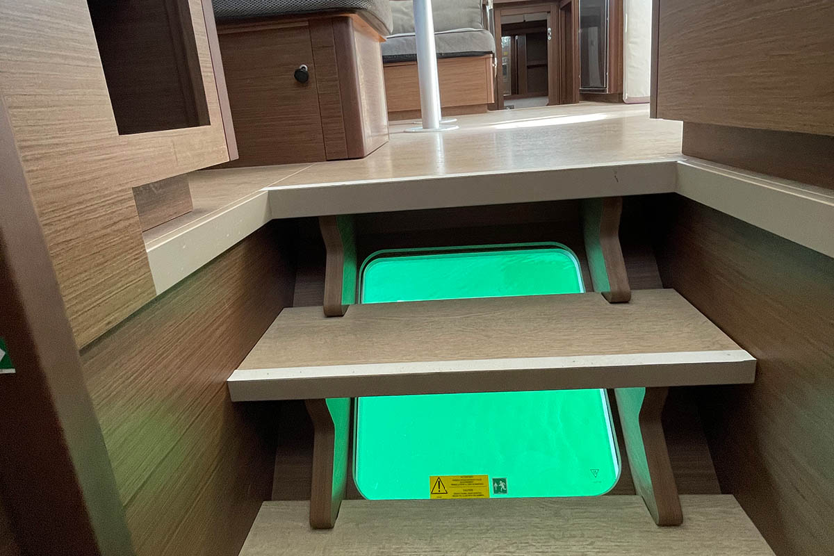 | Inside | 12V/220V-Steckdosen, Eisbox, Fäkalientank, Heizung, Kühlschrank, Ladegerät, Lautsprecher im Salon, Pantryausstattung, Radio mit CD und MP3, USB Steckdose, Wasserkocher |