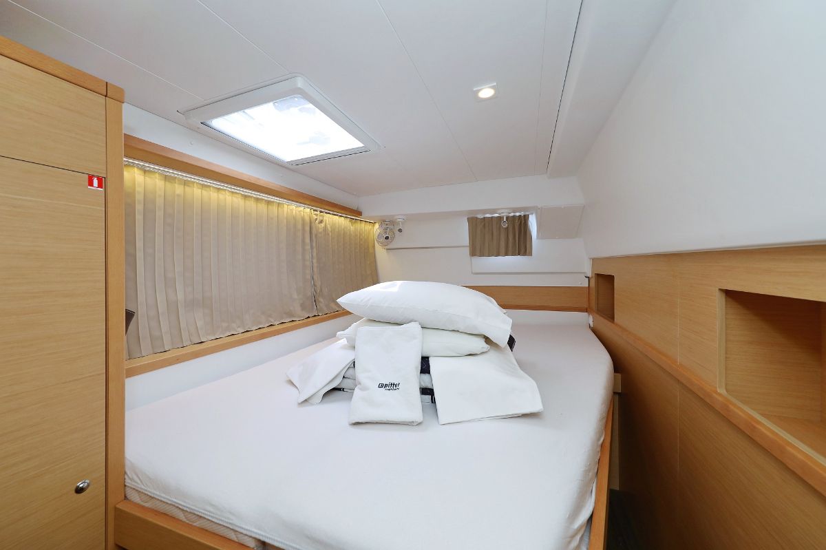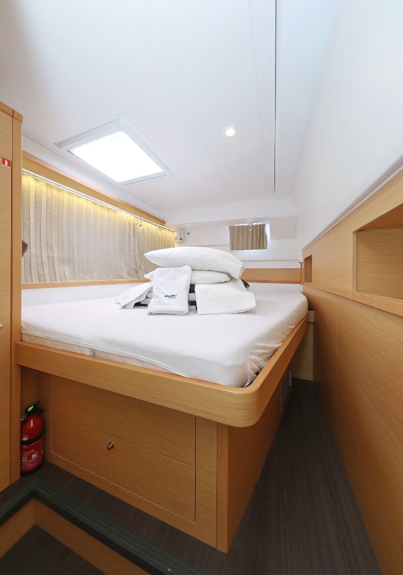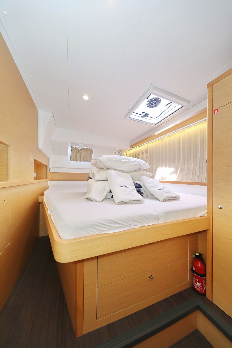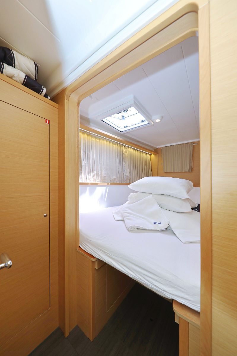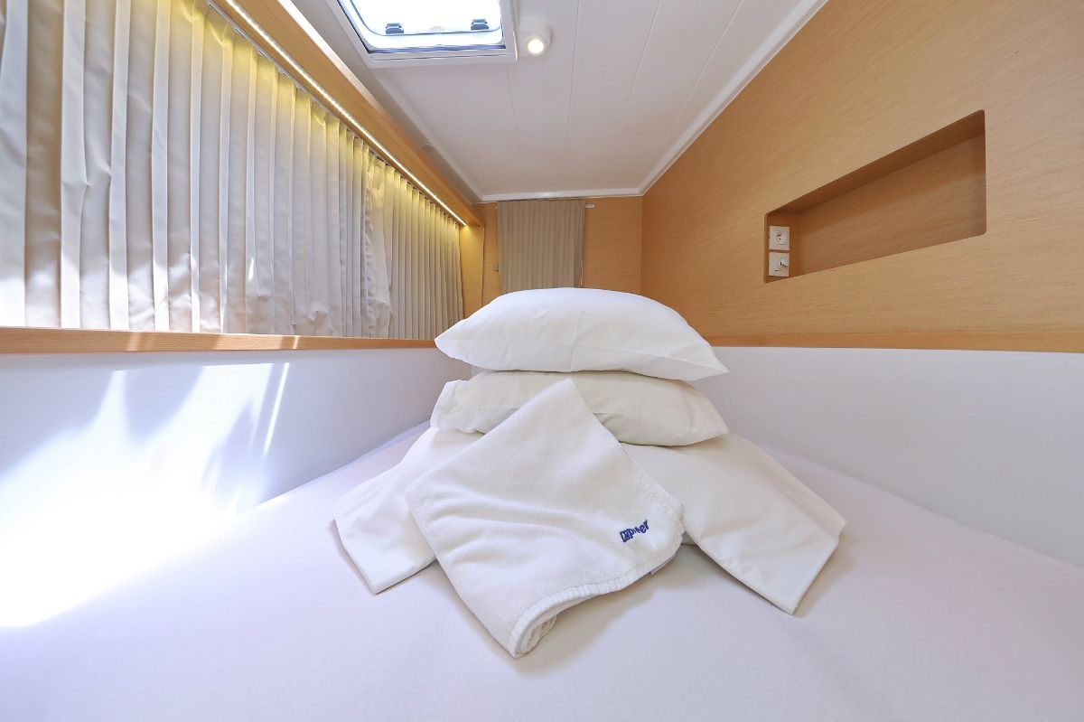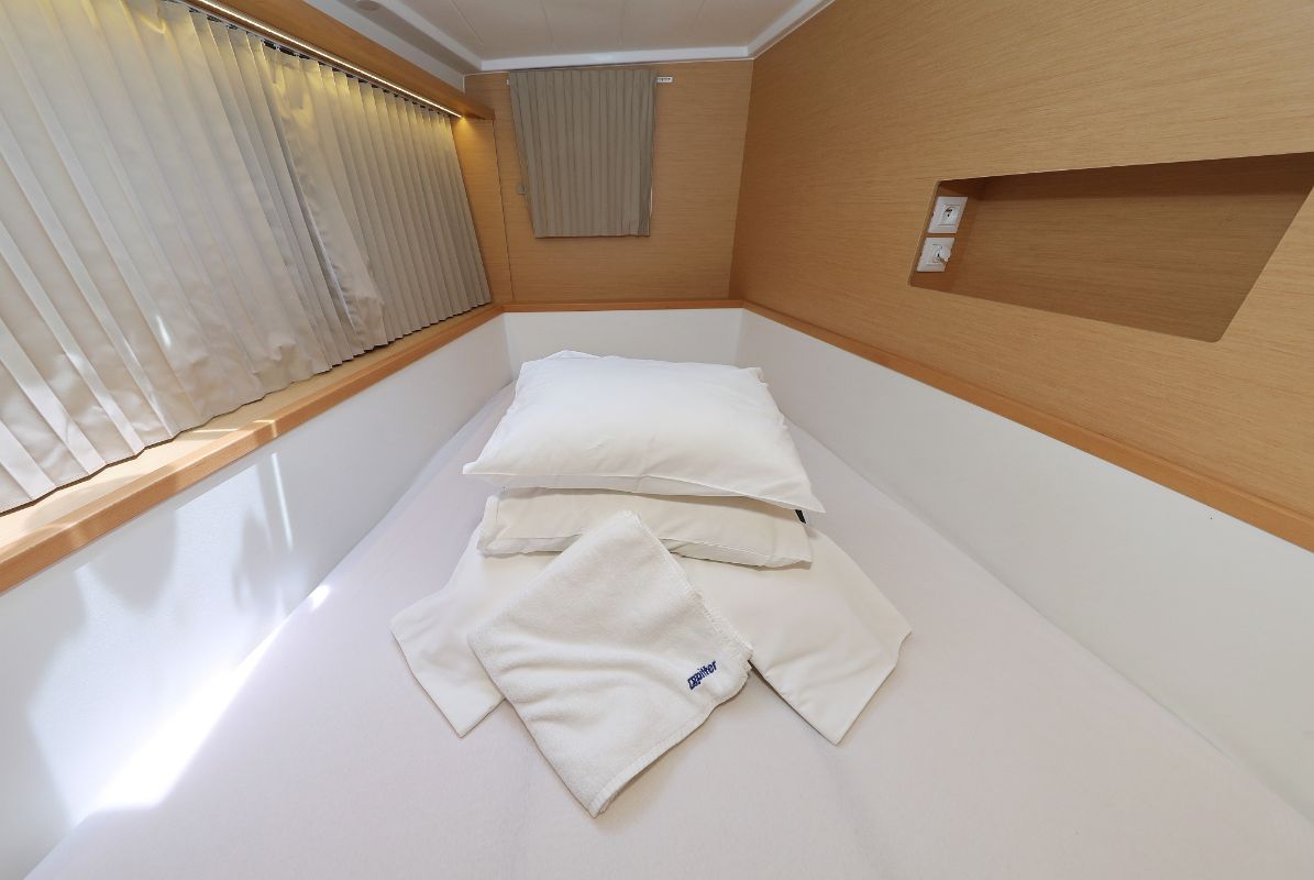 | Inside | 2. Kühlschrank, Borduhr, Heizung, Inverter 12V/220V, Kühlschrank, Ladegerät, Luftpumpe für Beiboot, Pantryausstattung, Radio mit Bluetooth, Salontisch absenkbar, Ventilatoren in Kabinen, Warmwasser |