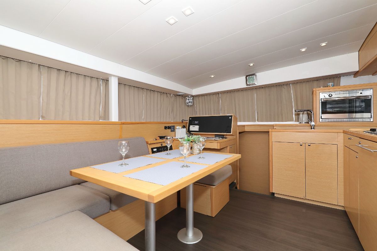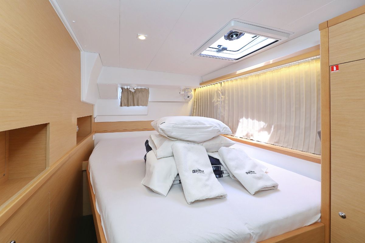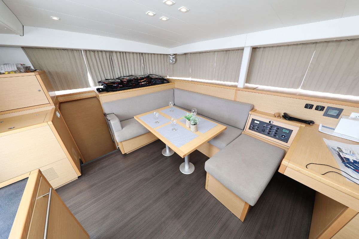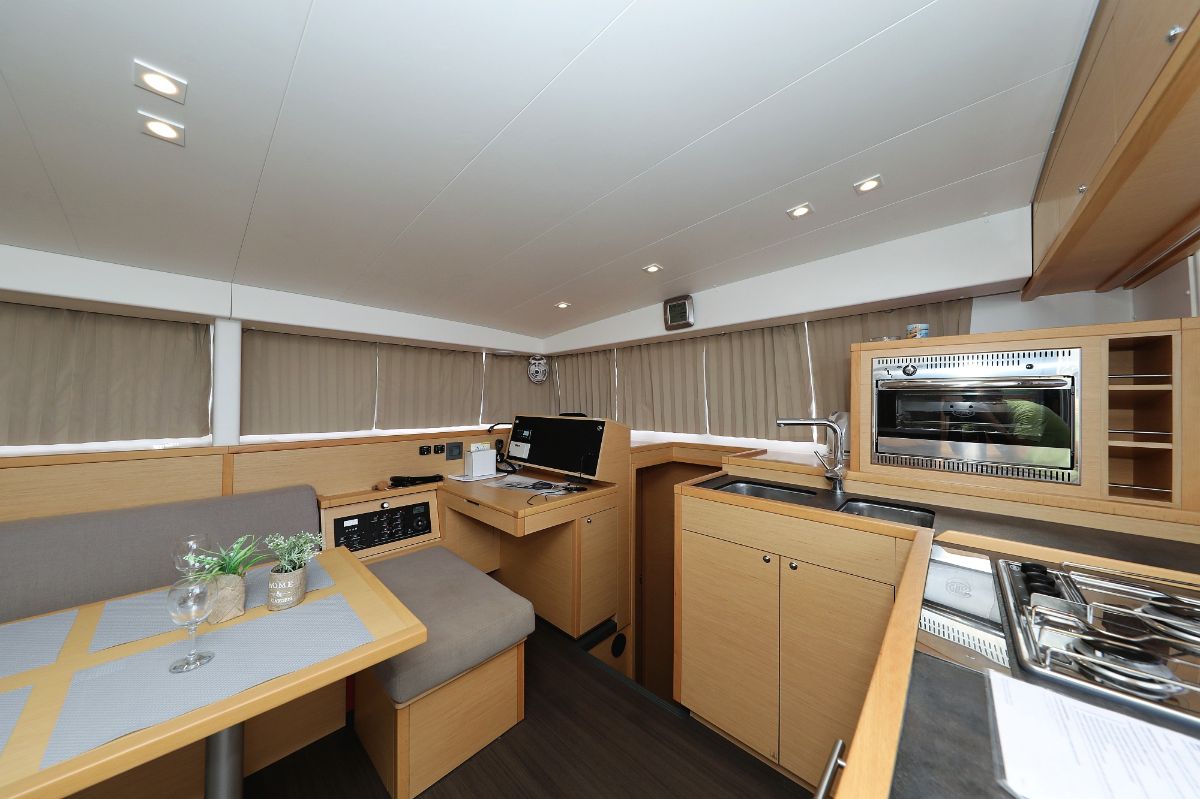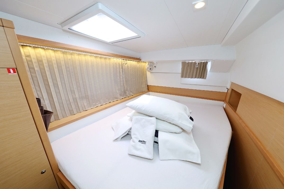 | Inside | 2. Kühlschrank, Borduhr, Heizung, Inverter 12V/220V, Kühlschrank, Ladegerät, Luftpumpe für Beiboot, Pantryausstattung, Radio mit Bluetooth, Salontisch absenkbar, Ventilatoren in Kabinen, Warmwasser |