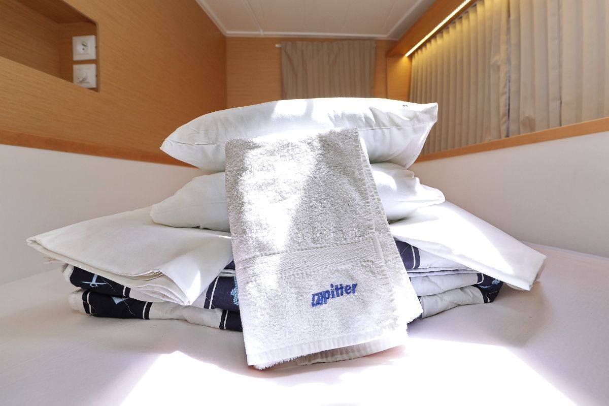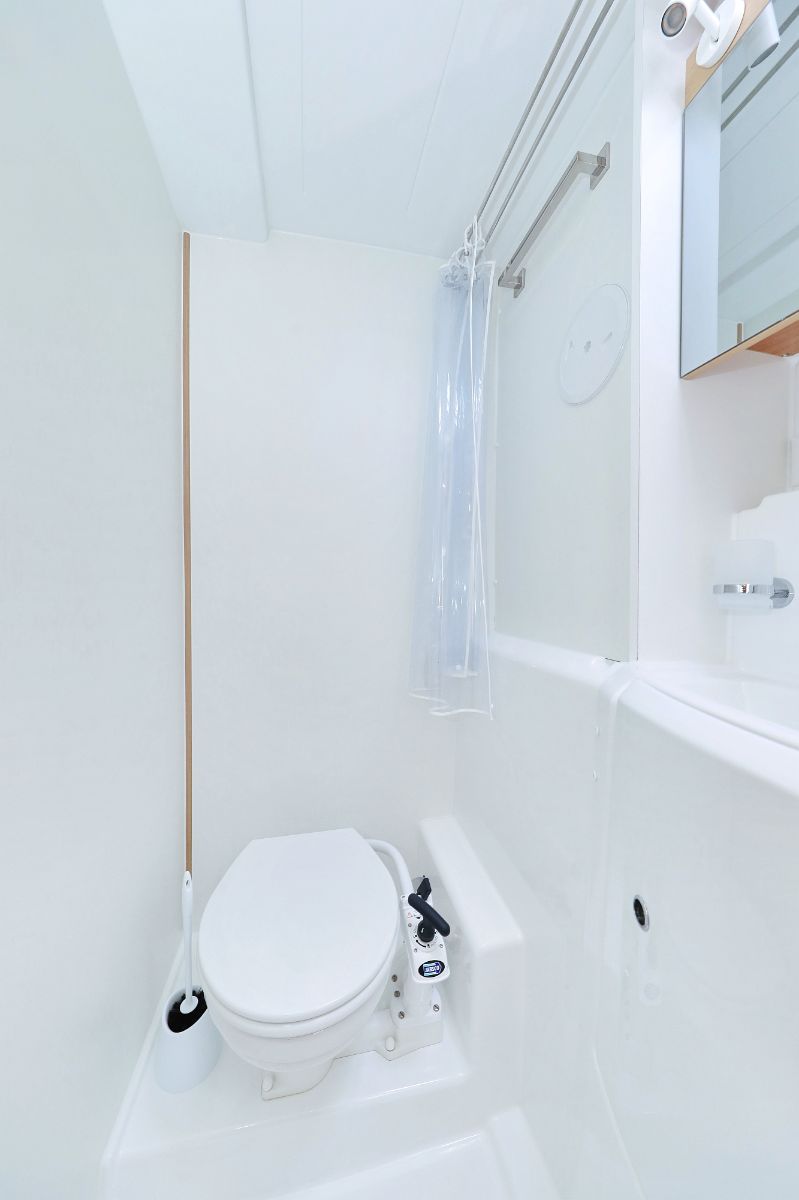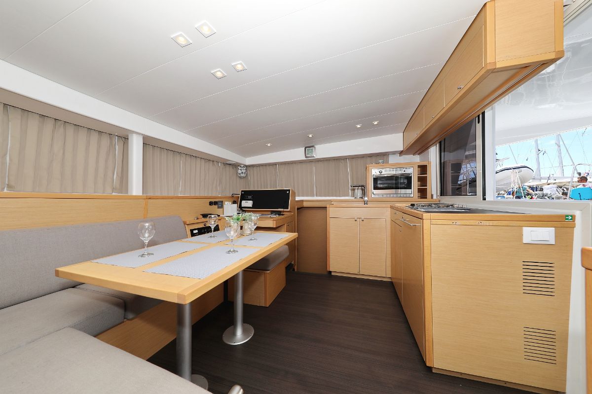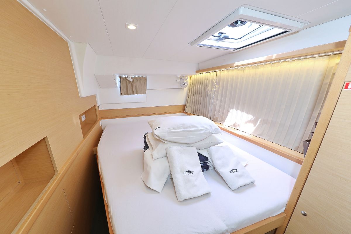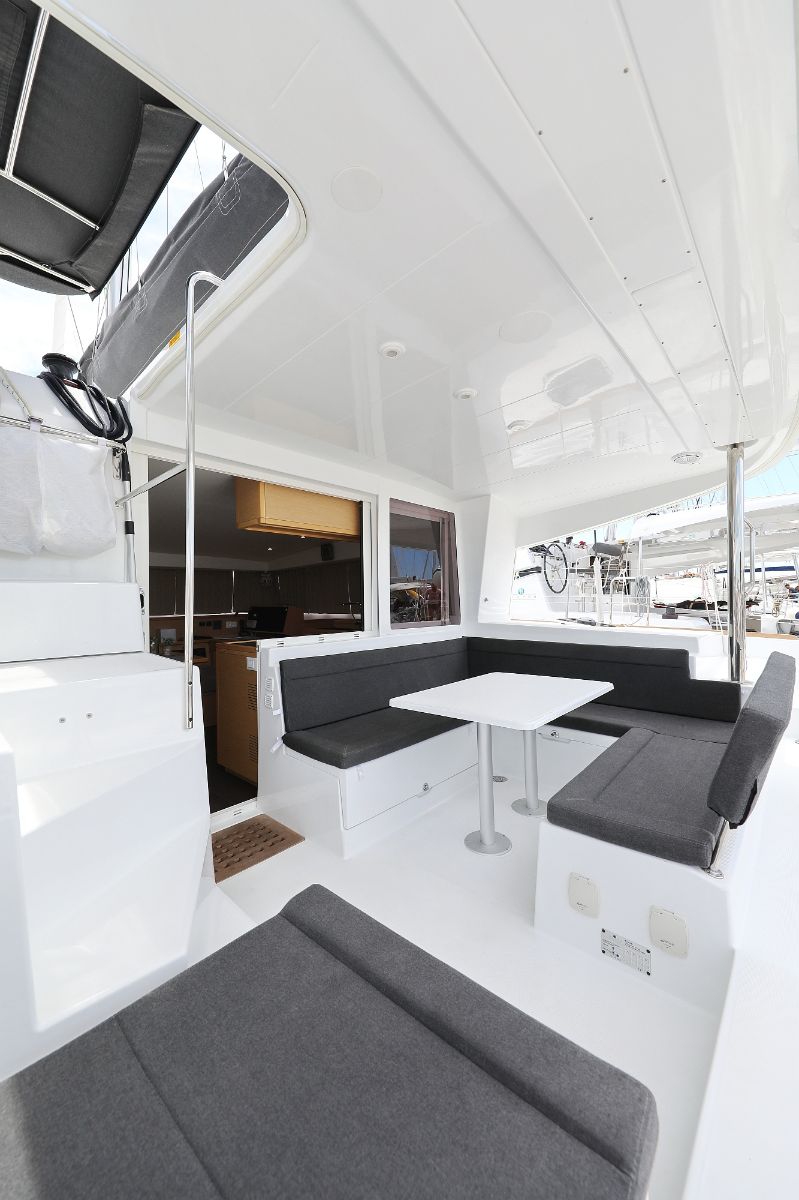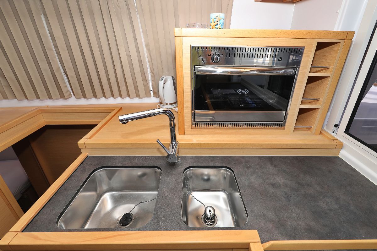 | Inside | 2. Kühlschrank, Borduhr, Heizung, Inverter 12V/220V, Kühlschrank, Ladegerät, Luftpumpe für Beiboot, Pantryausstattung, Radio mit Bluetooth, Salontisch absenkbar, Ventilatoren in Kabinen, Warmwasser |