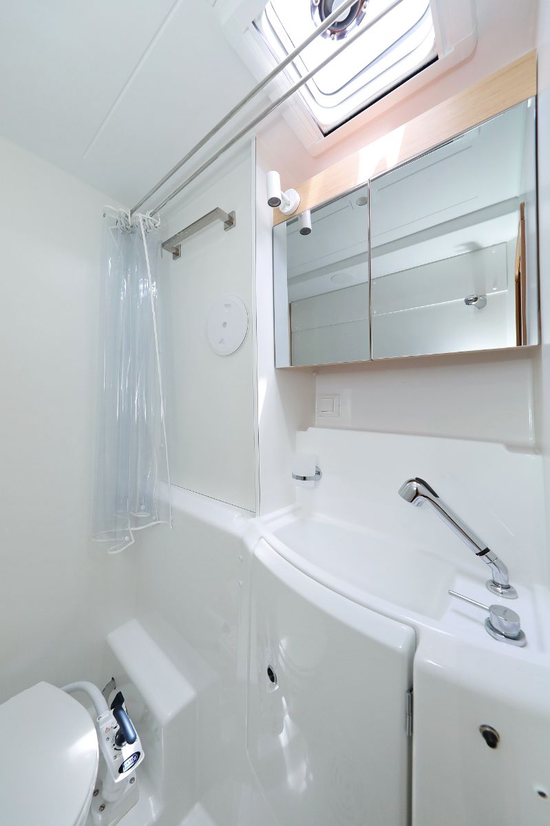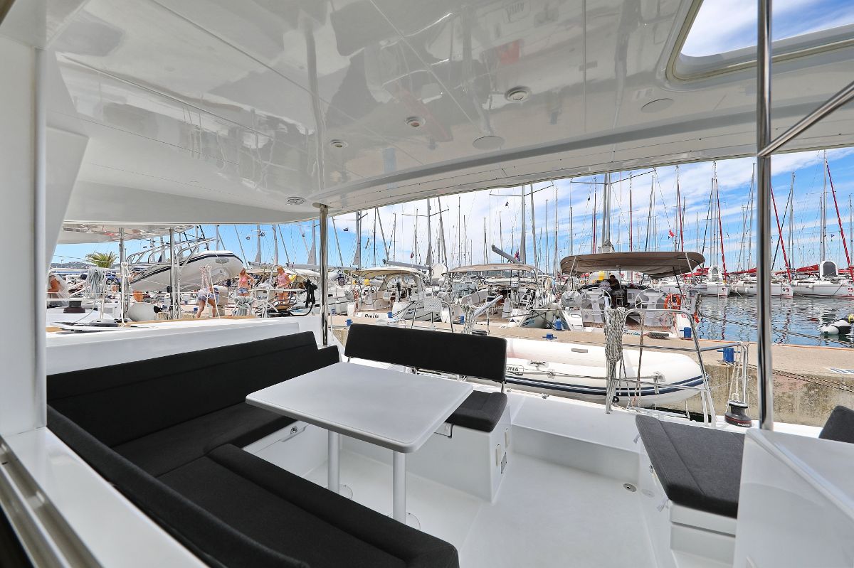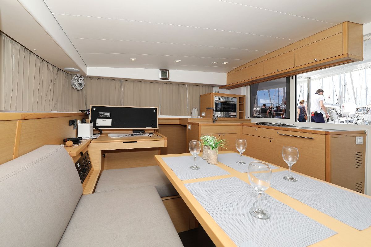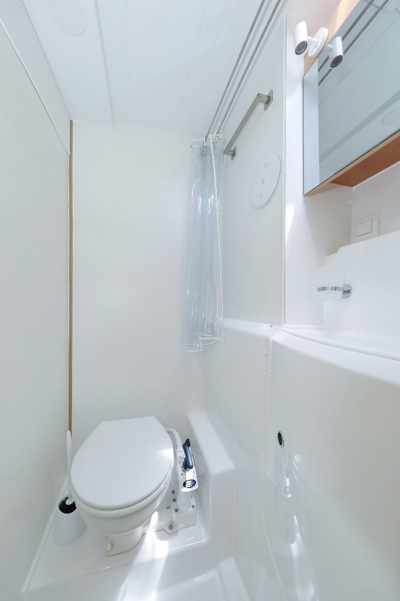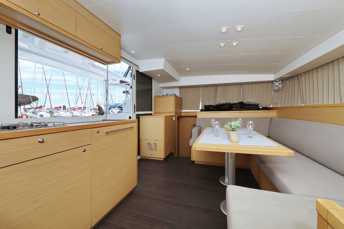 | Inside | 2. Kühlschrank, Borduhr, Heizung, Inverter 12V/220V, Kühlschrank, Ladegerät, Luftpumpe für Beiboot, Pantryausstattung, Radio mit Bluetooth, Salontisch absenkbar, Ventilatoren in Kabinen, Warmwasser |