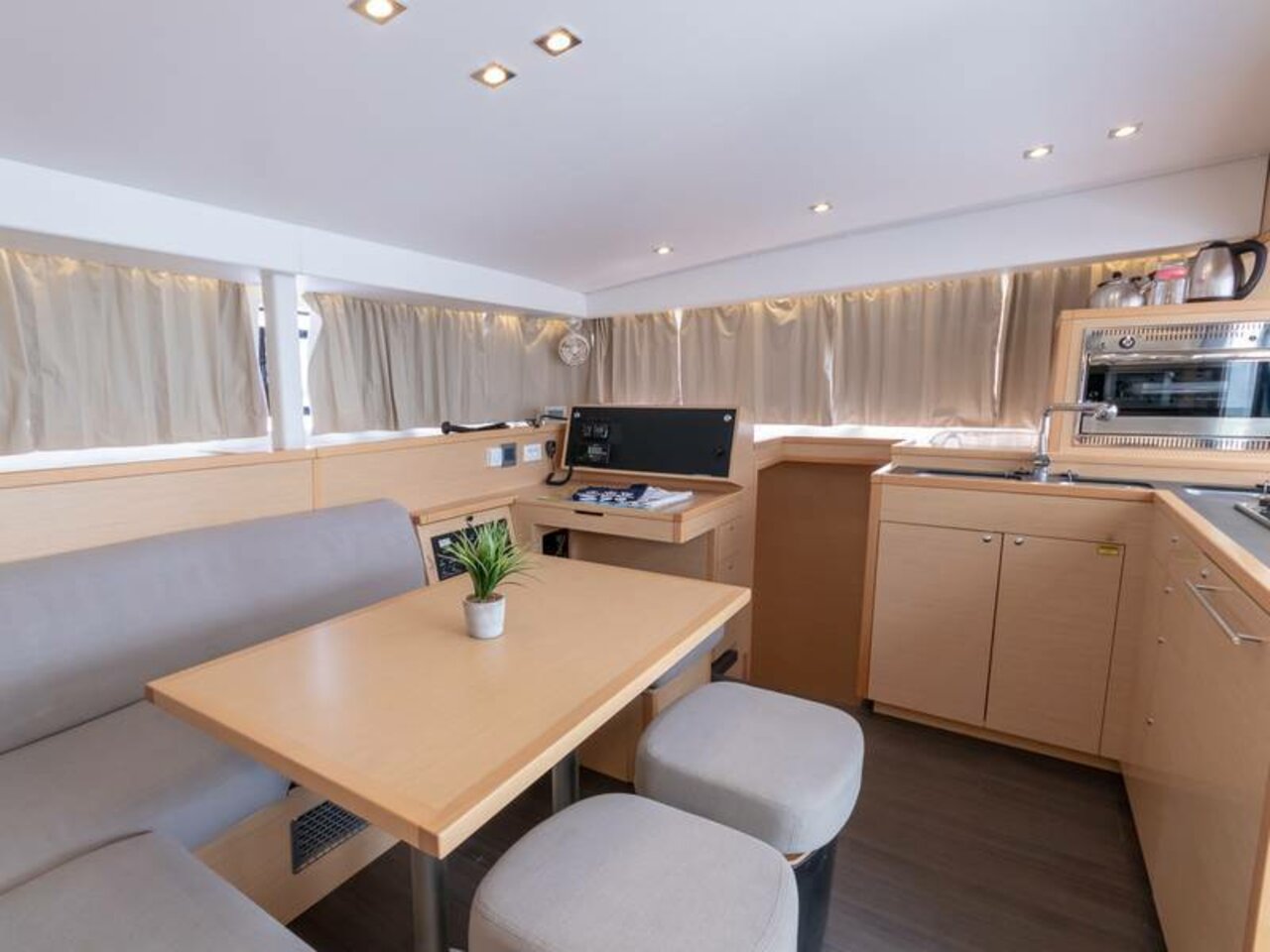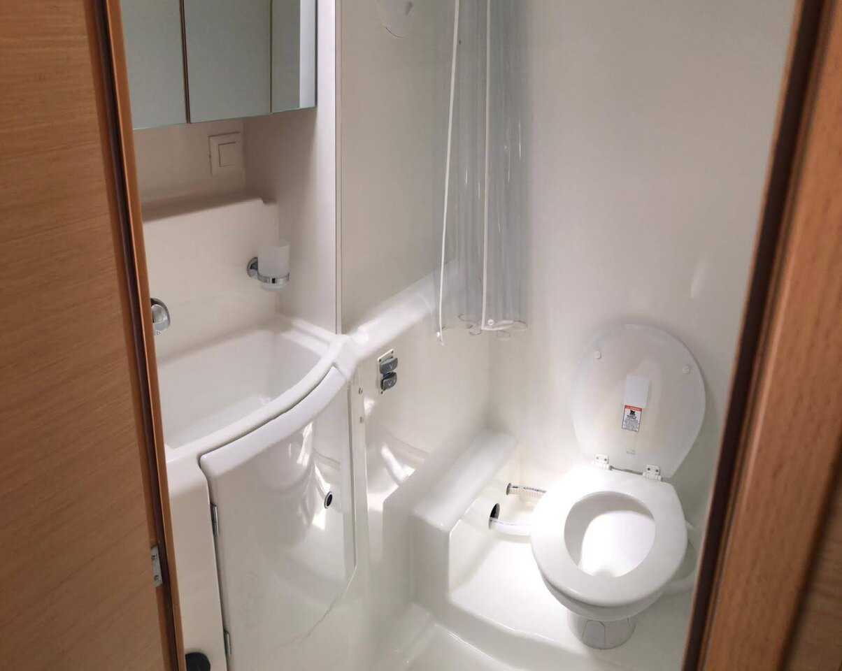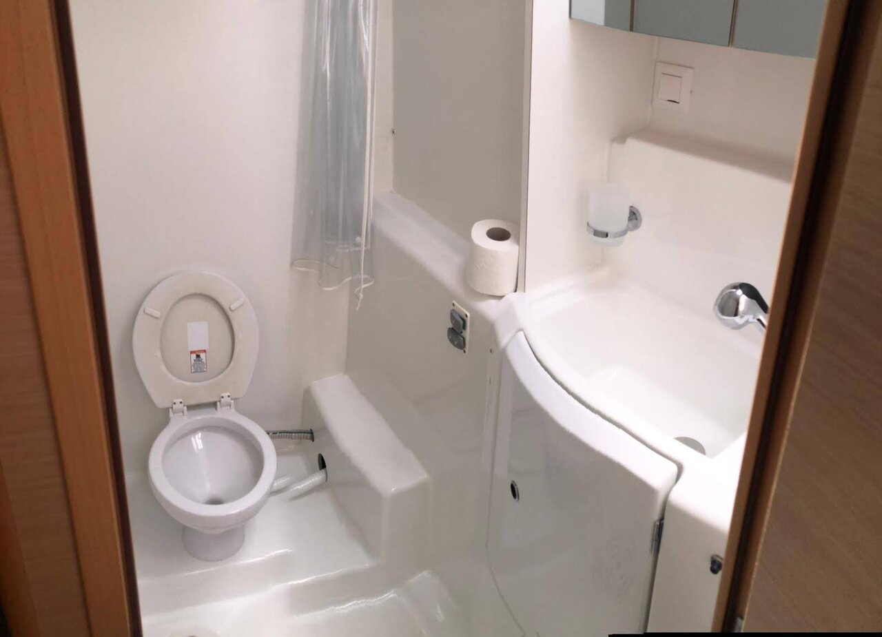| Inside | 2. Kühlschrank, Fäkalientank, Heizung, Inverter 12V/220V, Kühlschrank mit Gefrierfach, Lautsprecher im Salon, Mikrowelle, Radio mit CD, USB, Bluetooth, Ventilatoren in Kabinen, Warmwasser, WC (elektr.) |