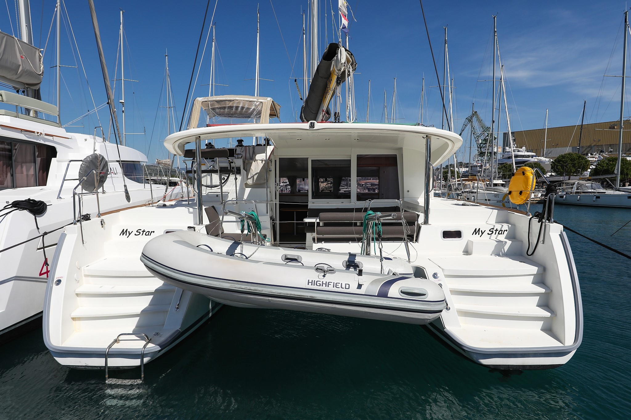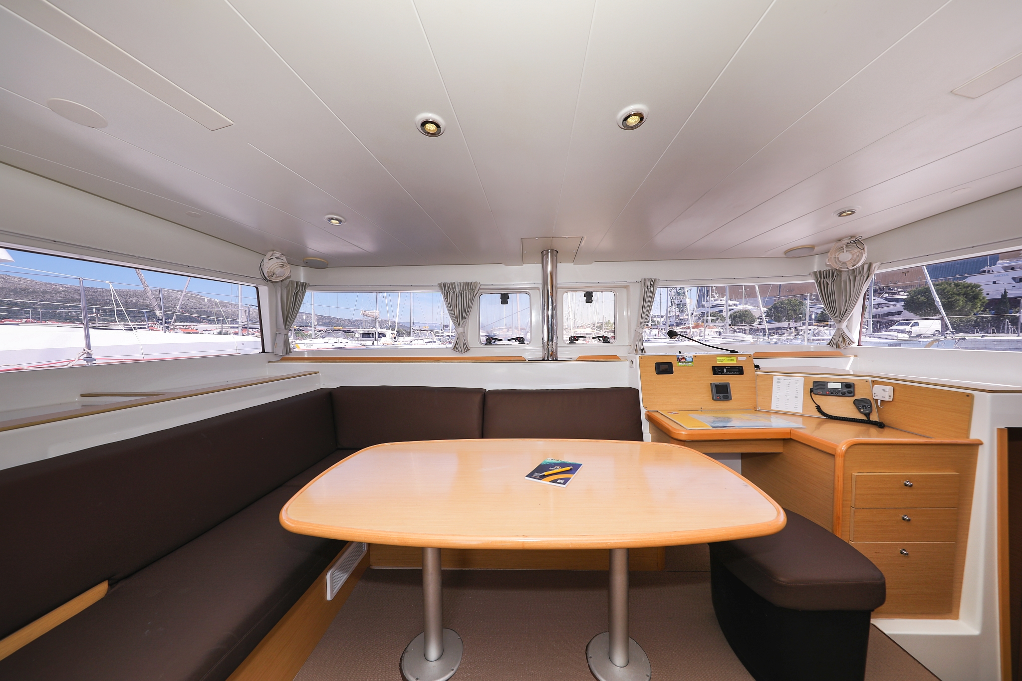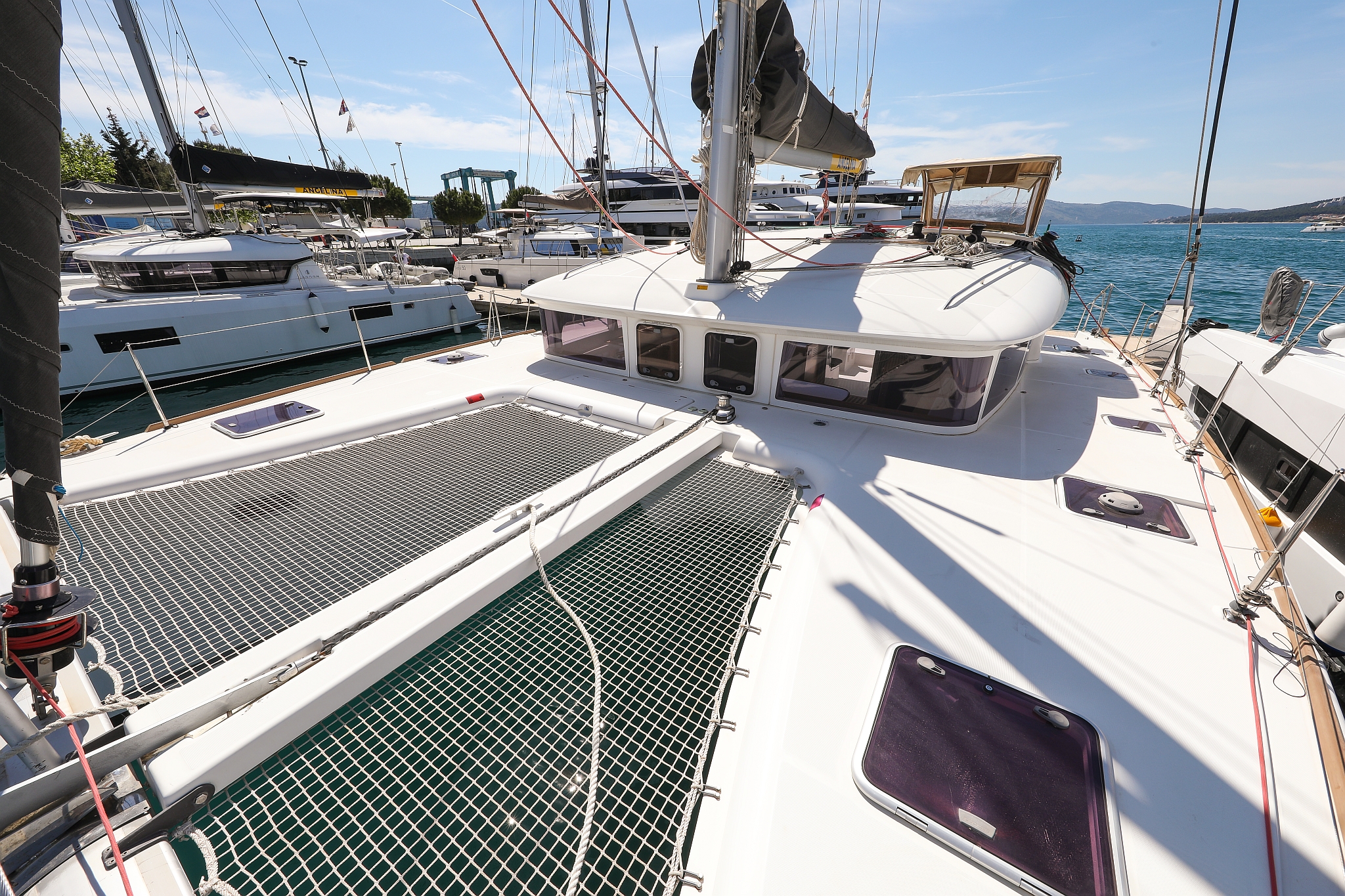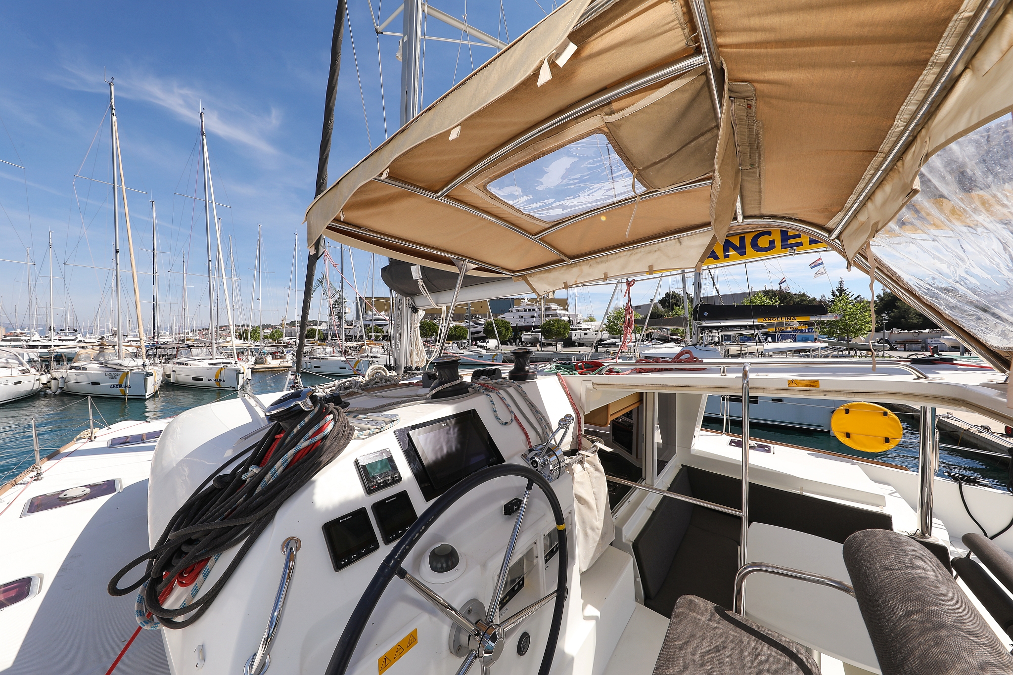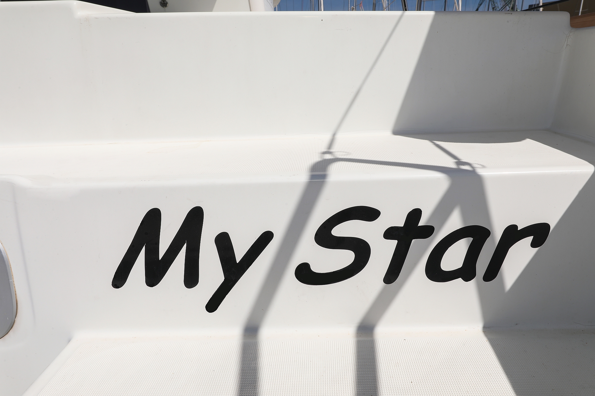 | Outside | 220 V-Landanschluss, Anker mit Kette, Cockpitdusche, Cockpitkühlschrank, Cockpitlautsprecher, Cockpitpolster, Cockpittisch, elektr. Ankerwinsch, Fender, Gangway, Hardtop, Kugelfender, Solaranlage, Winschen |