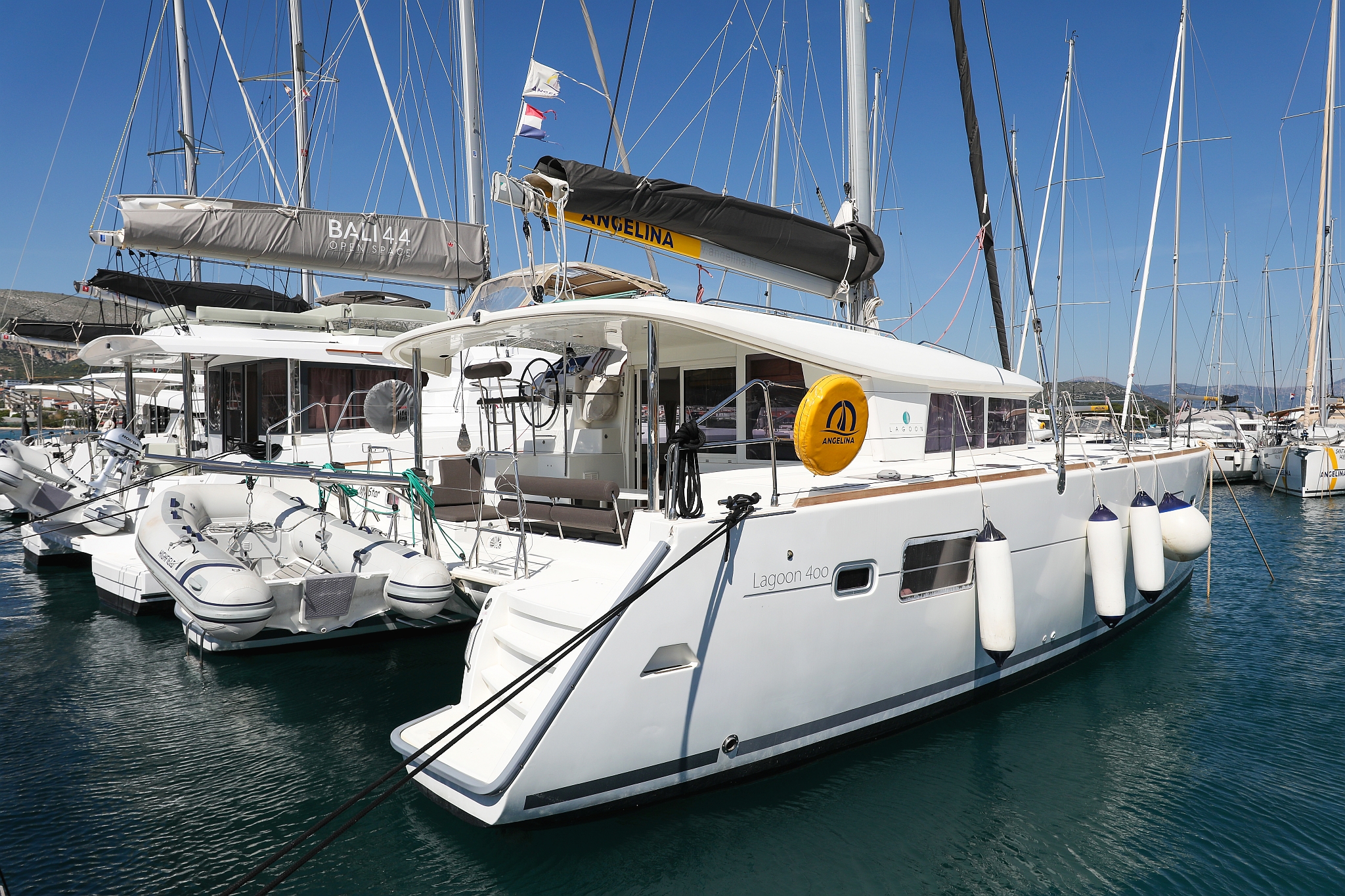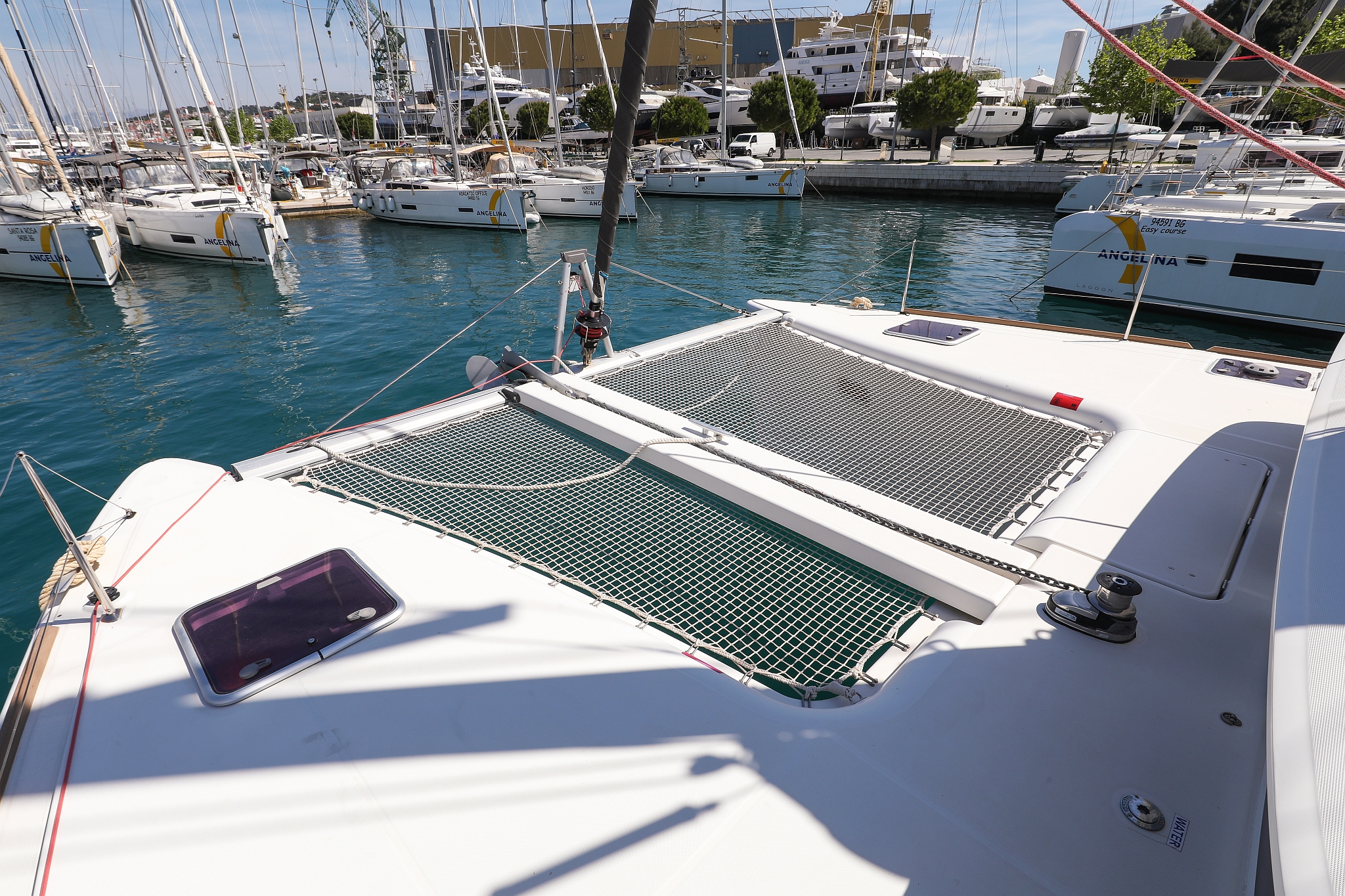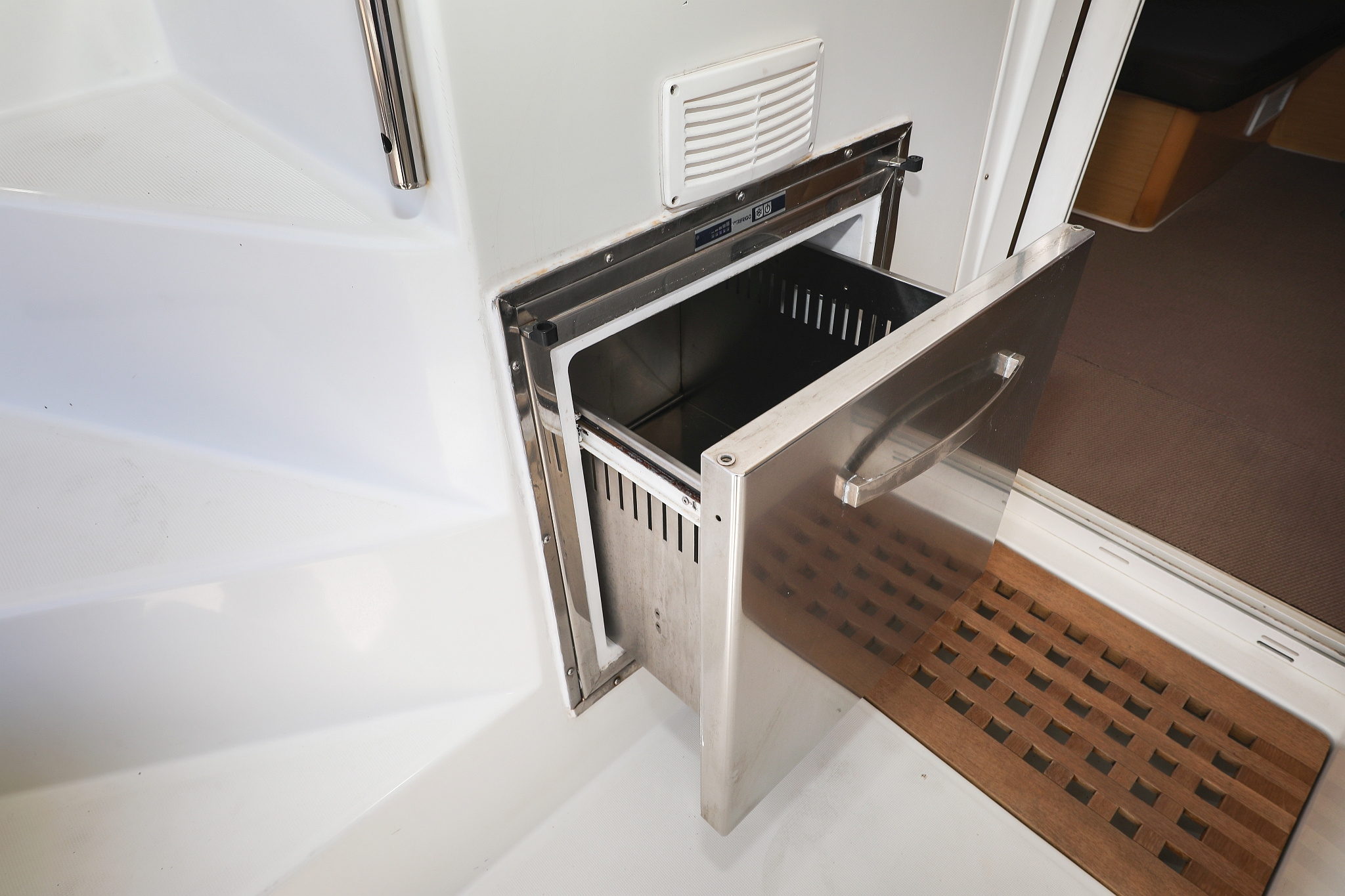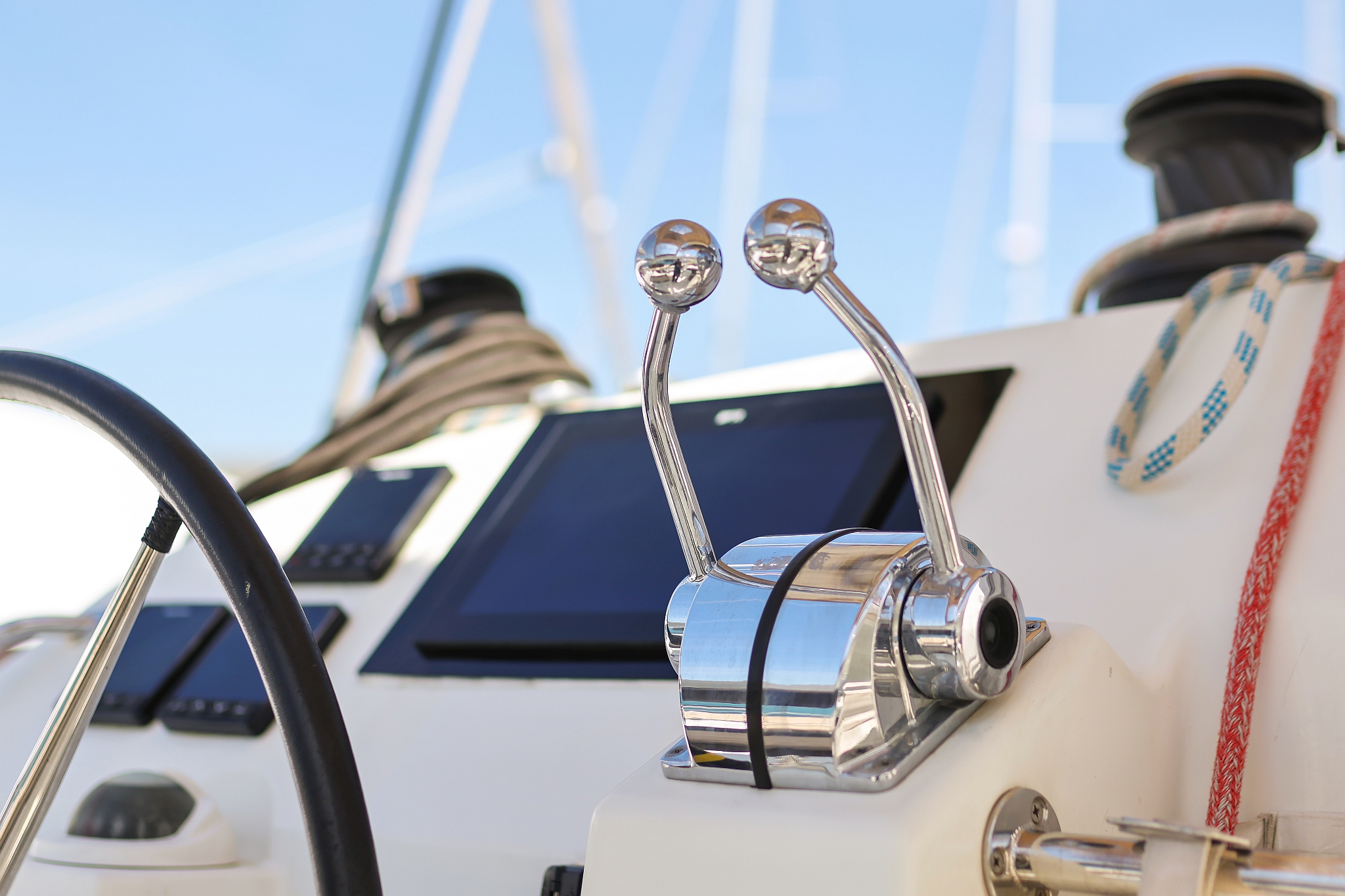 | Outside | 220 V-Landanschluss, Anker mit Kette, Cockpitdusche, Cockpitkühlschrank, Cockpitlautsprecher, Cockpitpolster, Cockpittisch, elektr. Ankerwinsch, Fender, Gangway, Hardtop, Kugelfender, Solaranlage, Winschen |