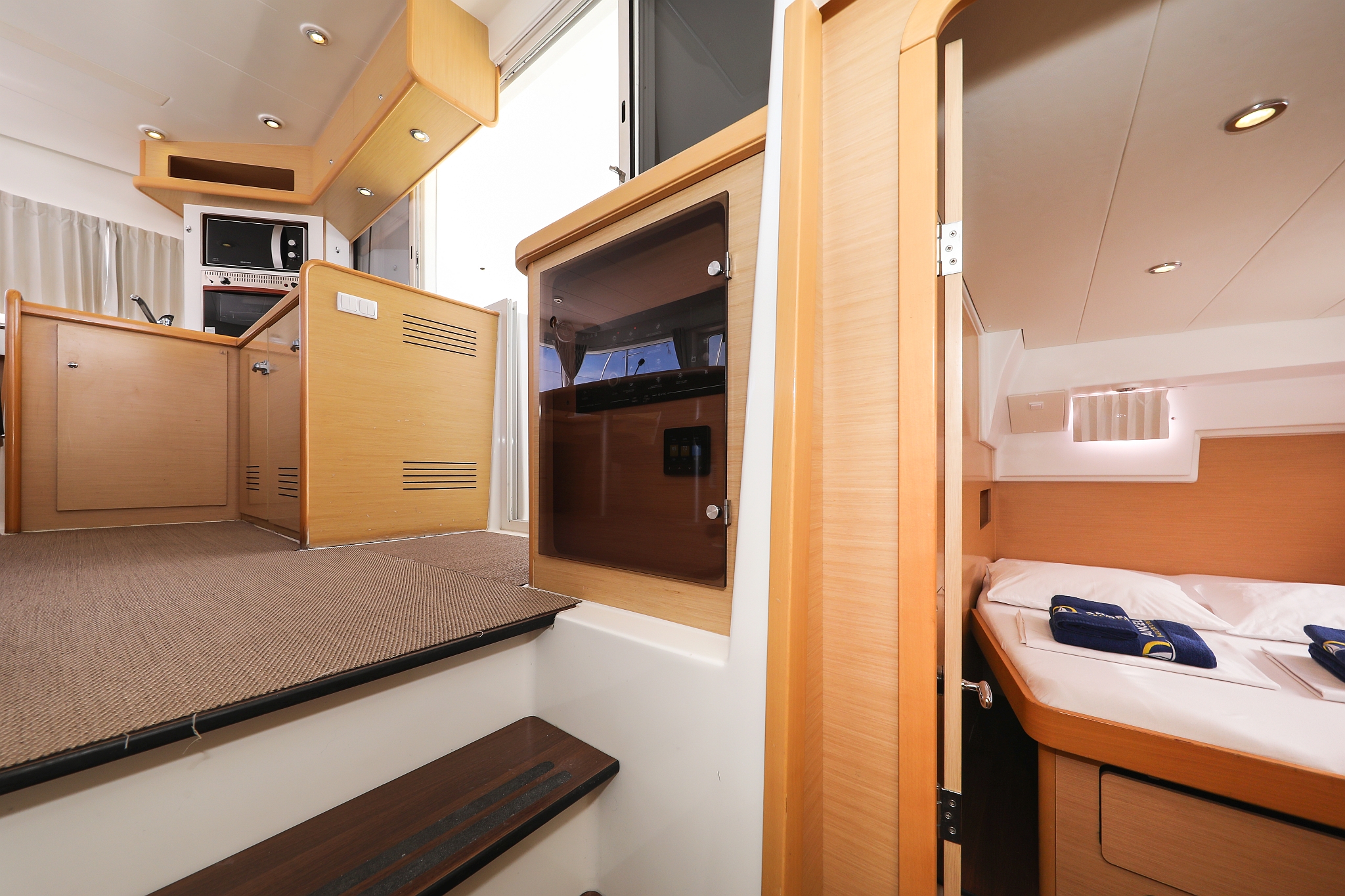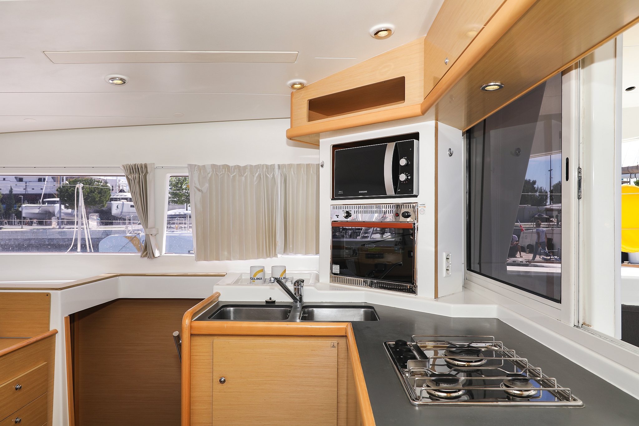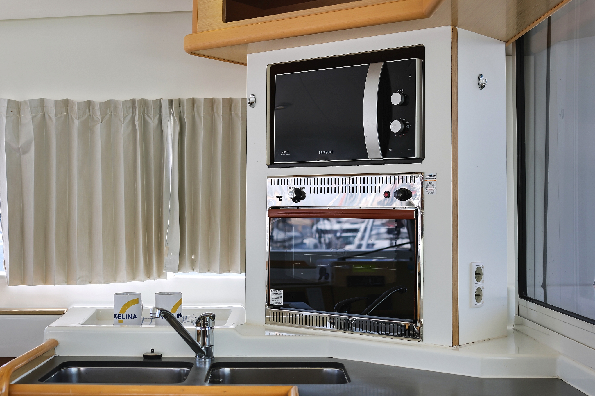 | Inside | 220V Steckdosen, Fäkalientank, Gasherd mit Backofen, Klimaanlage (Landstrom), Kühlschrank mit Gefrierfach, Ladegerät, Mikrowelle, Mokkakanne, Pantryausstattung, Radio mit CD/MP3/USB/AUX-In, Spülbecken, USB Steckdose, Ventilatoren in Kabinen, Warmwasser, Wasserkocher |