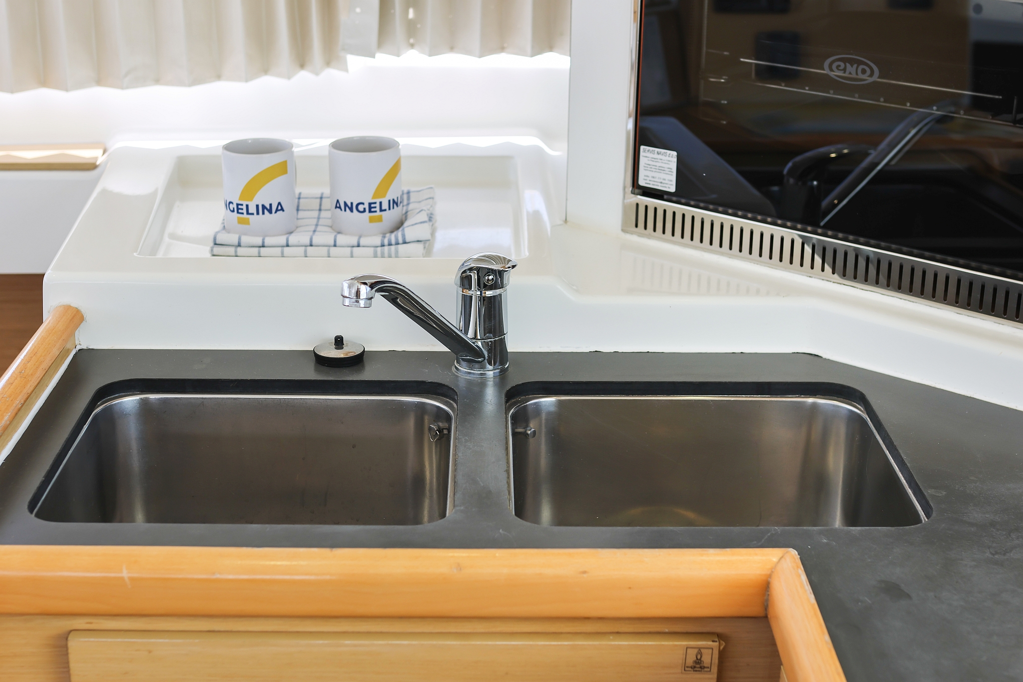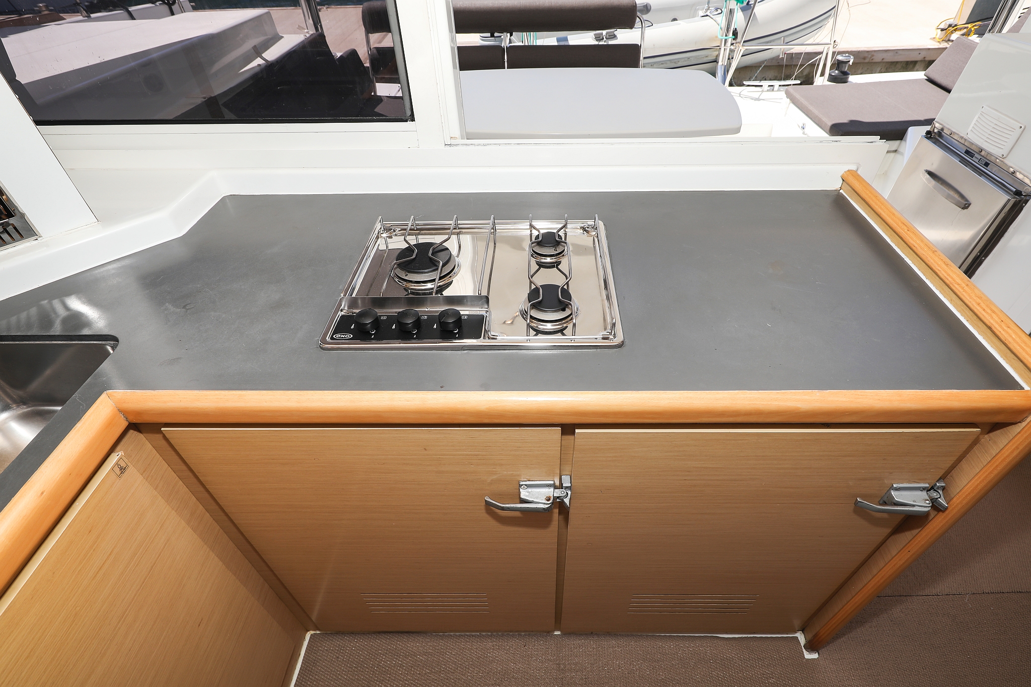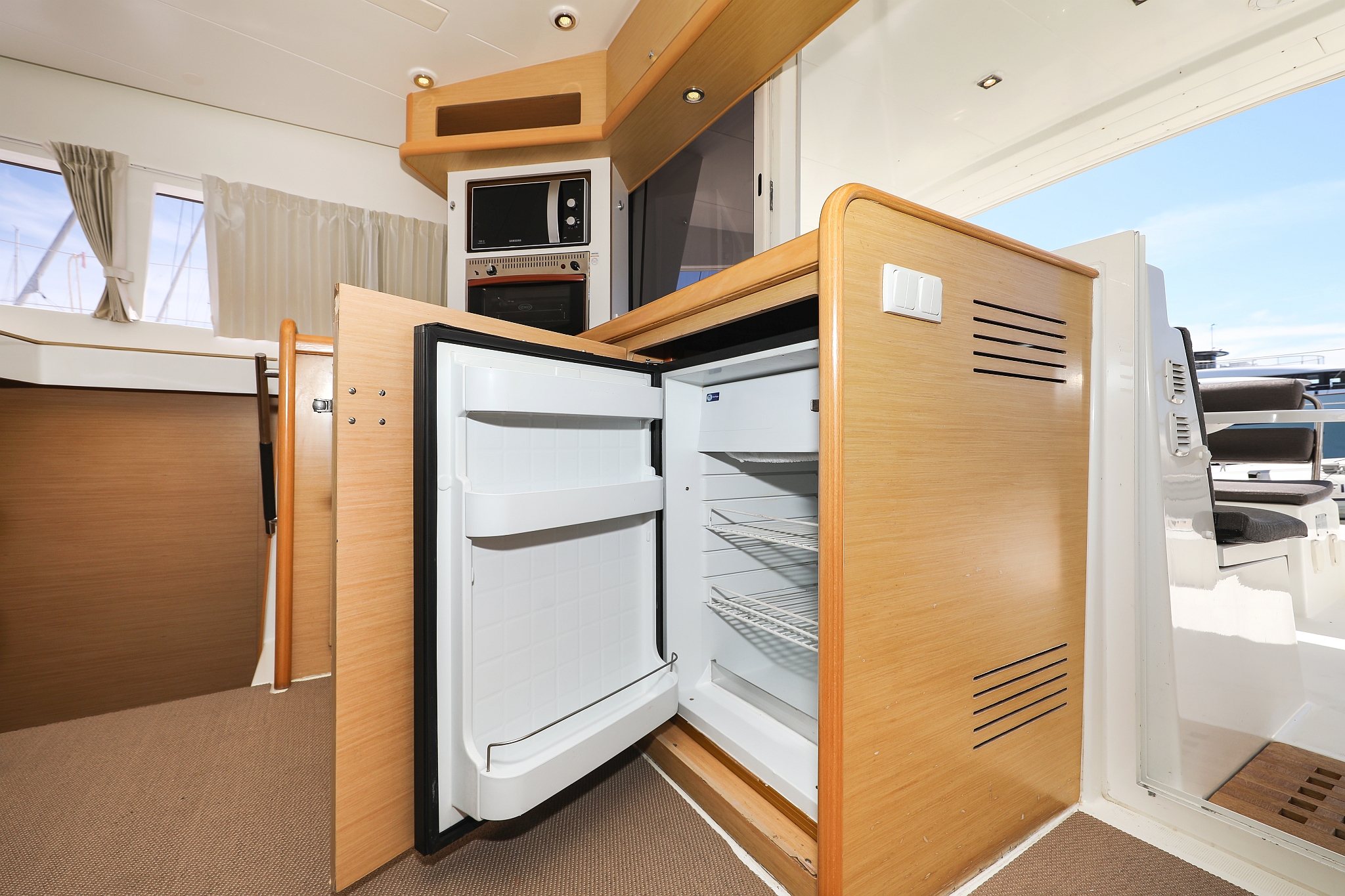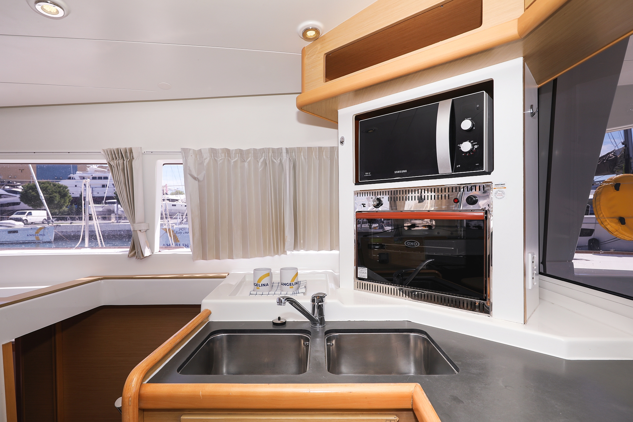 | Inside | 220V Steckdosen, Fäkalientank, Gasherd mit Backofen, Klimaanlage (Landstrom), Kühlschrank mit Gefrierfach, Ladegerät, Mikrowelle, Mokkakanne, Pantryausstattung, Radio mit CD/MP3/USB/AUX-In, Spülbecken, USB Steckdose, Ventilatoren in Kabinen, Warmwasser, Wasserkocher |