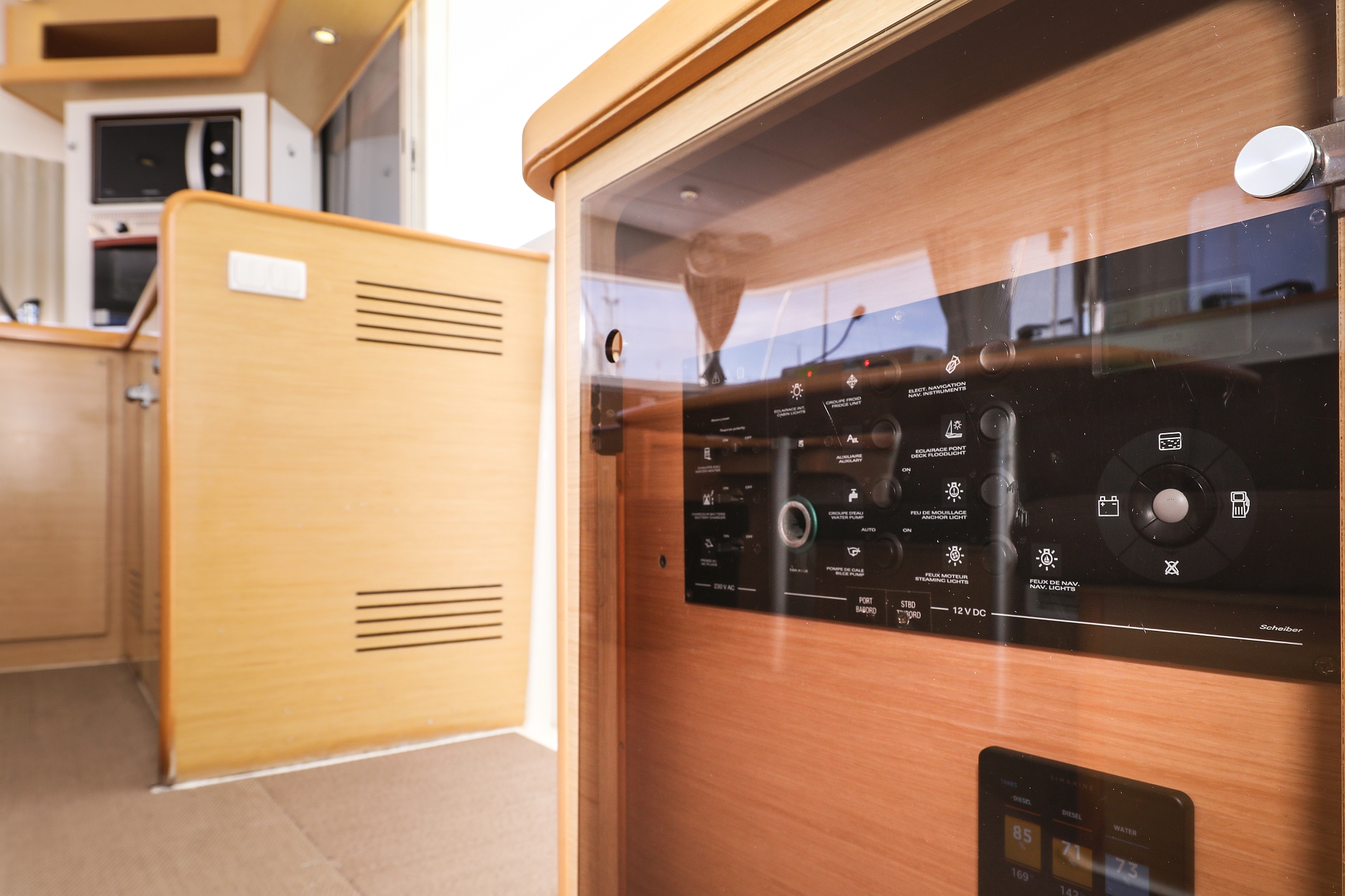 | Safety | Autopilot, Bordapotheke, Bordwerkzeug, Feststoffschwimmwesten, Feuerlöscher, Lifebelts, Nebelhorn, Notsignale, Radarreflektor, Rettungskragen, Taschenlampe, UKW-Funk, Zweitanker |