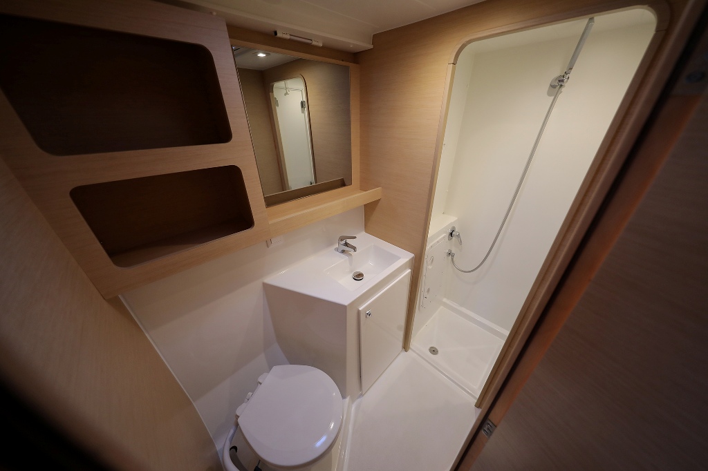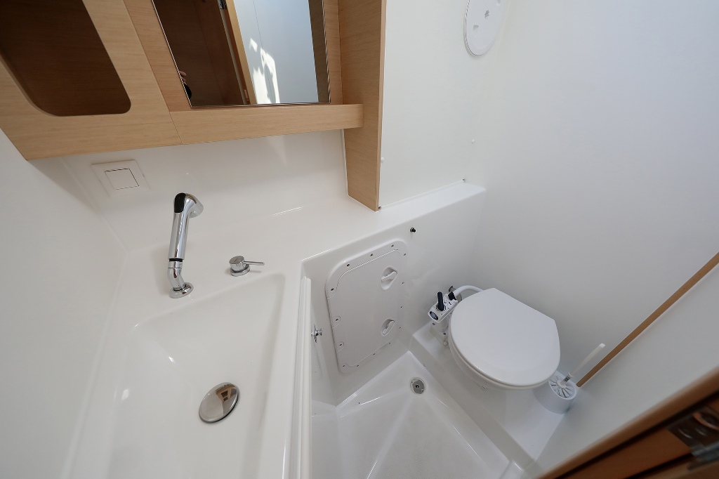 2. Kühlschrank, 220V Steckdosen, Backofen, Borduhr, CD-Player, Fäkalientank, FUSION Sound System, Gasherd, Gefrierschrank, Generator, Heizung, Inverter 12V/220V, Klimaanlage (ohne Landstrombedarf), Kühlschrank mit Gefrierfach, Ladegerät, Mokkakanne, Pantryausstattung, Radio, Spülbecken, Warmwasser, Wasserkocher |