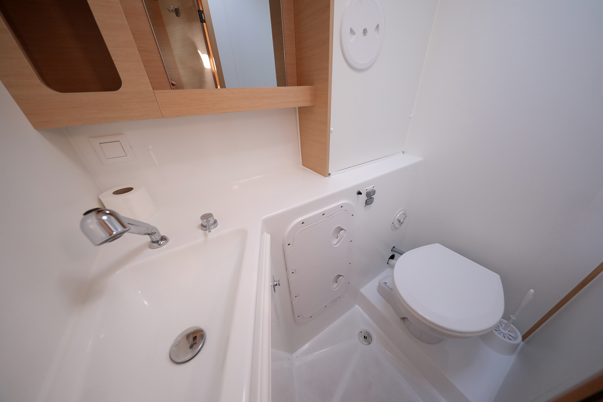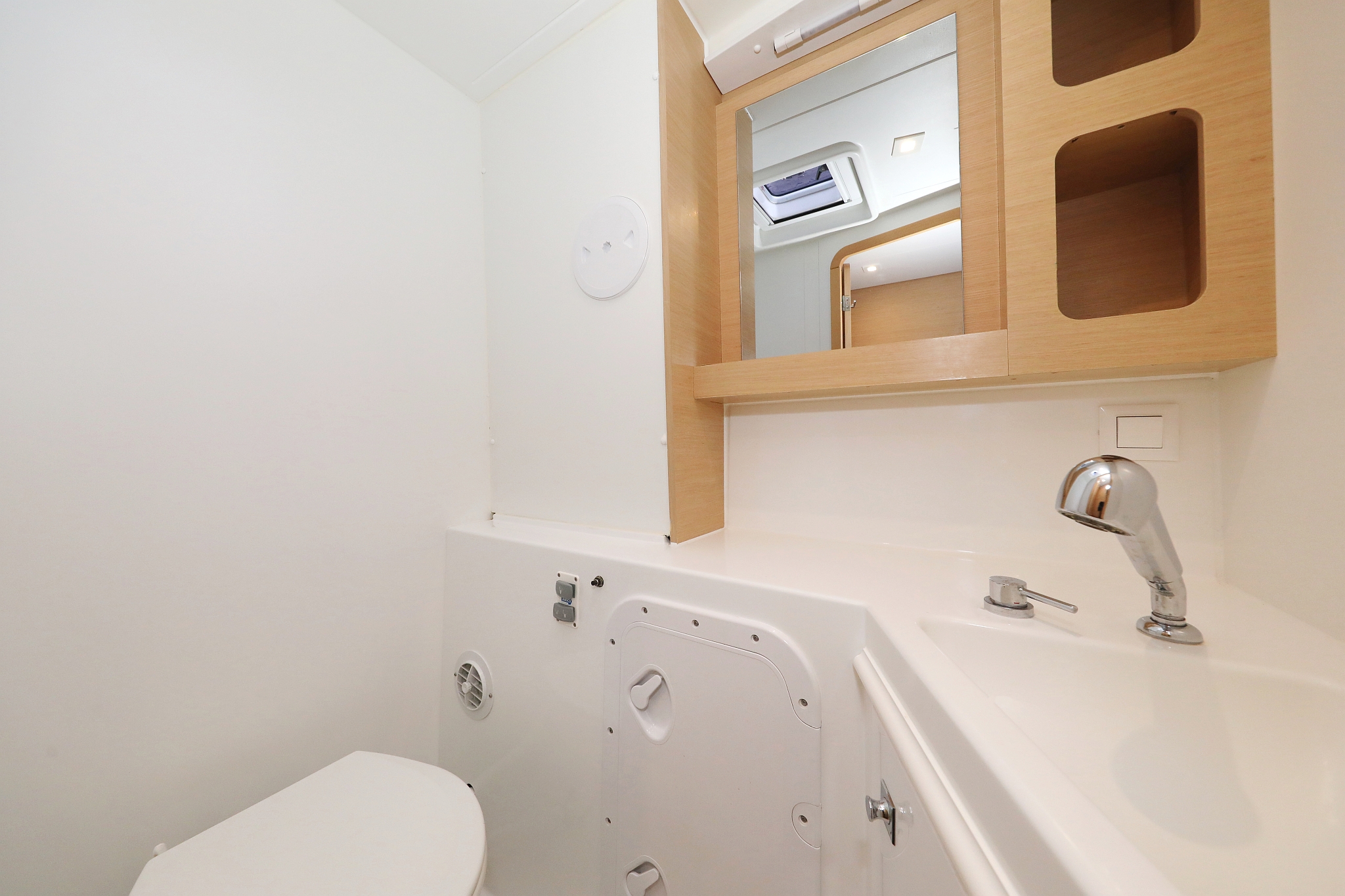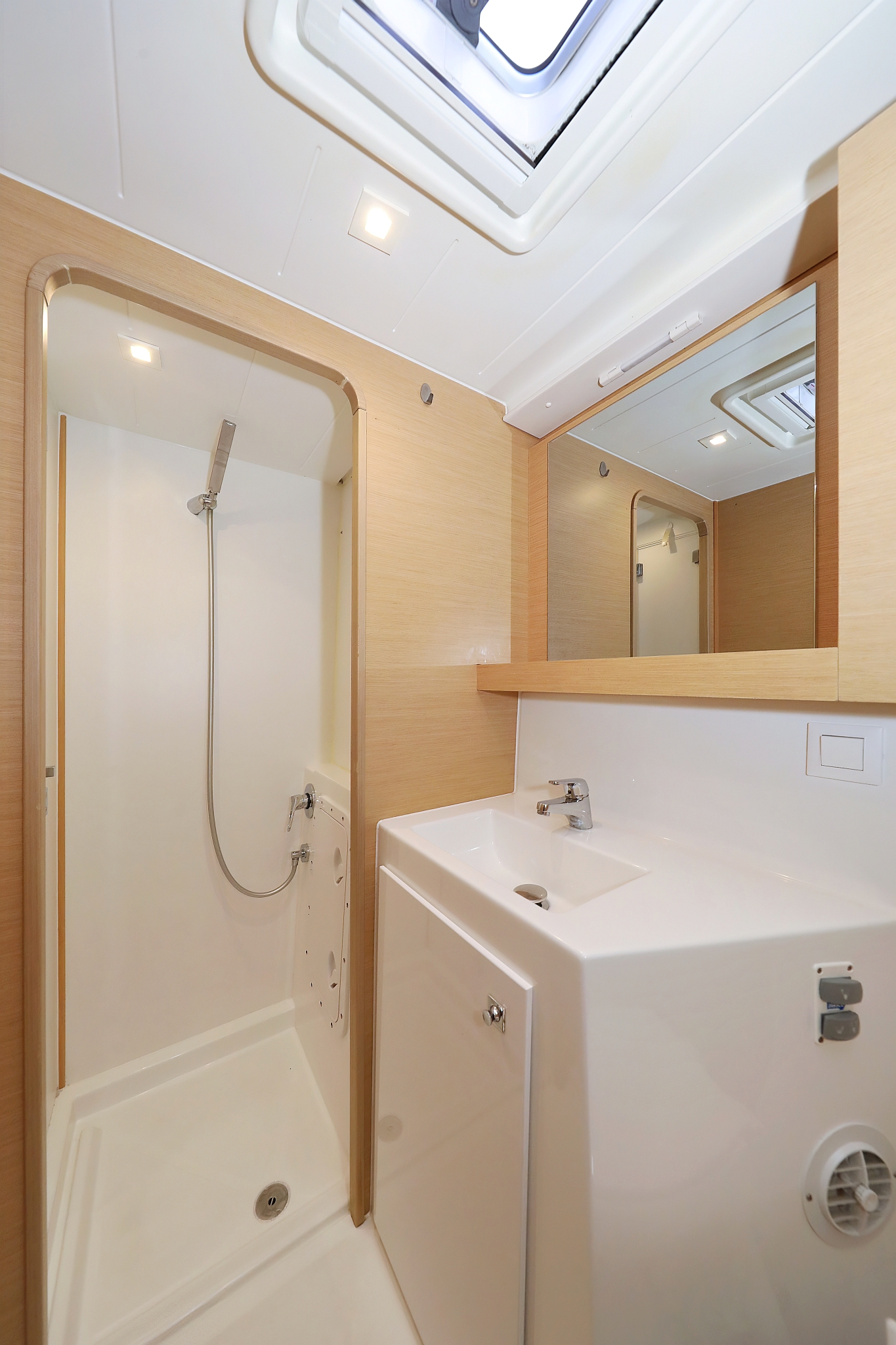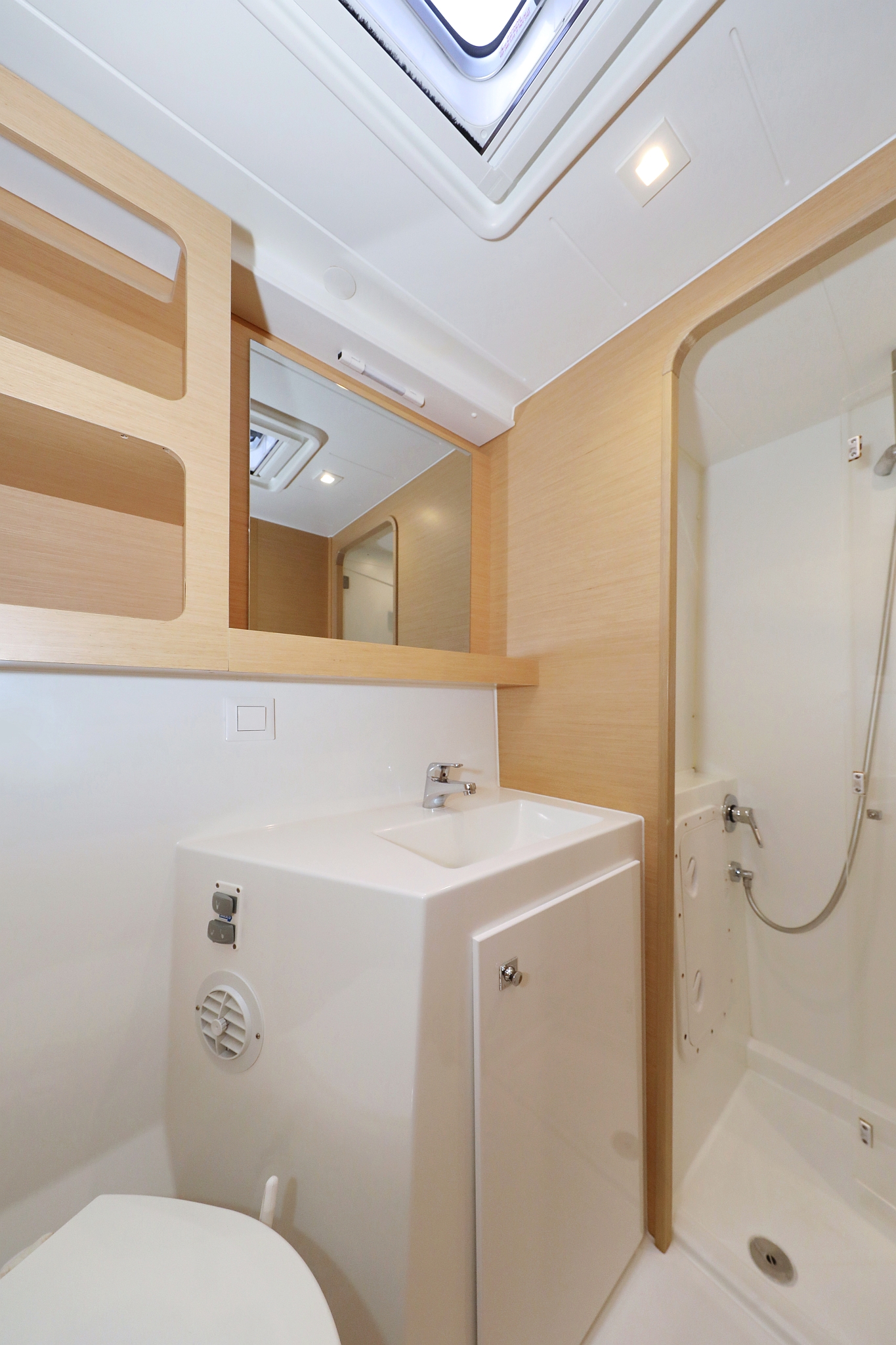 | Inside | 220V Steckdosen, Eisbox, Fäkalientank, FUSION Sound System, Gasherd mit Backofen, Generator, Heizung, Inverter 12V/220V, Klimaanlage (ohne Landstrombedarf), Kühlschrank mit Gefrierfach, Ladegerät, Landstromkabel, Mokkakanne, Pantryausstattung, Radio, Spülbecken, USB Steckdosen in den Kabinen, Warmwasser, Wasserkocher, WC (elektr.) |