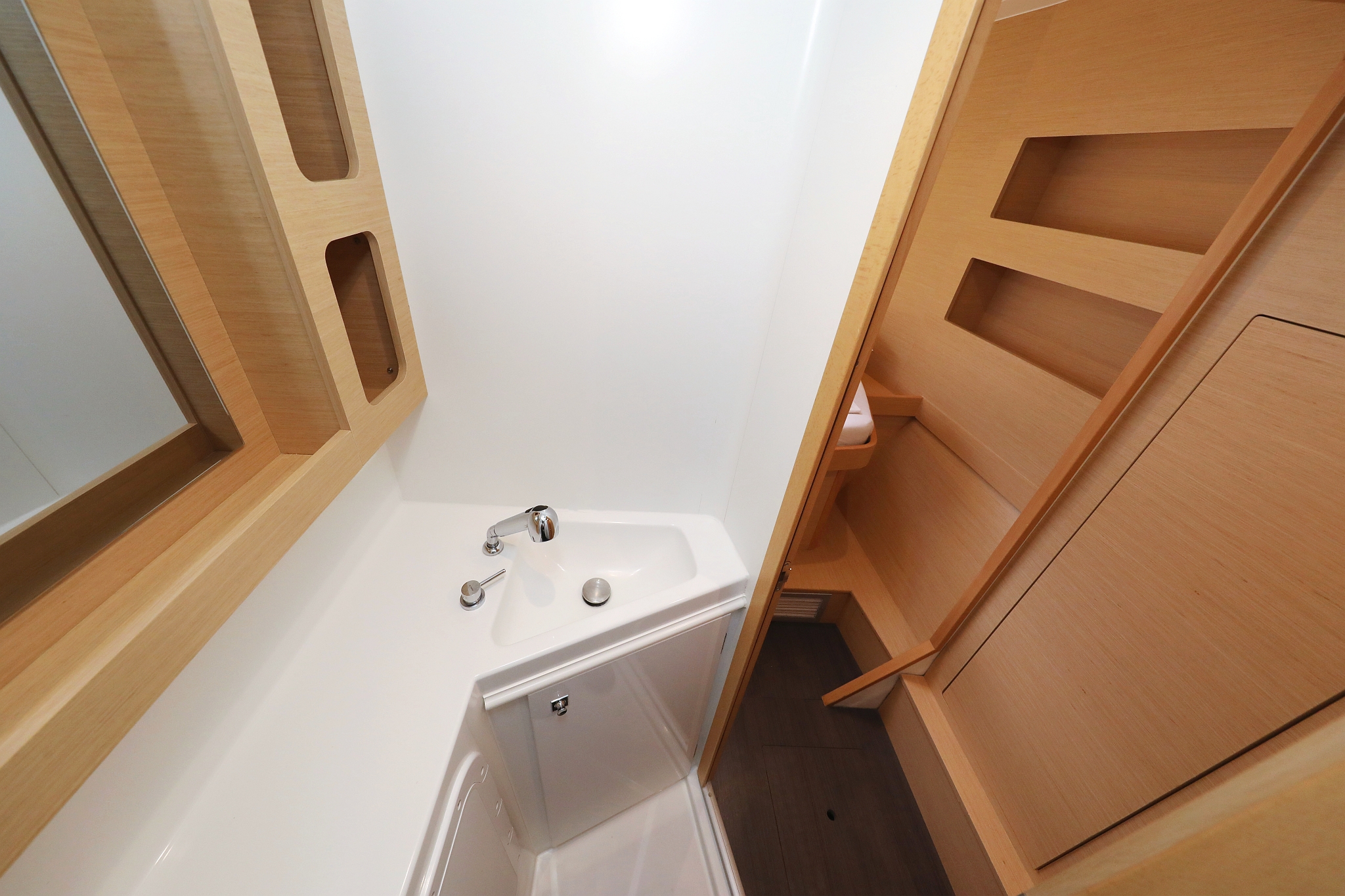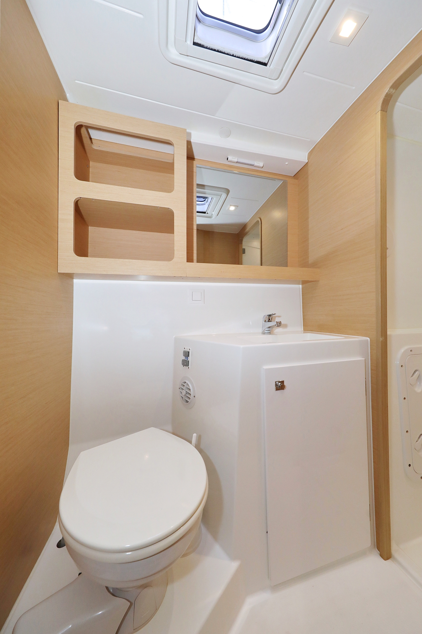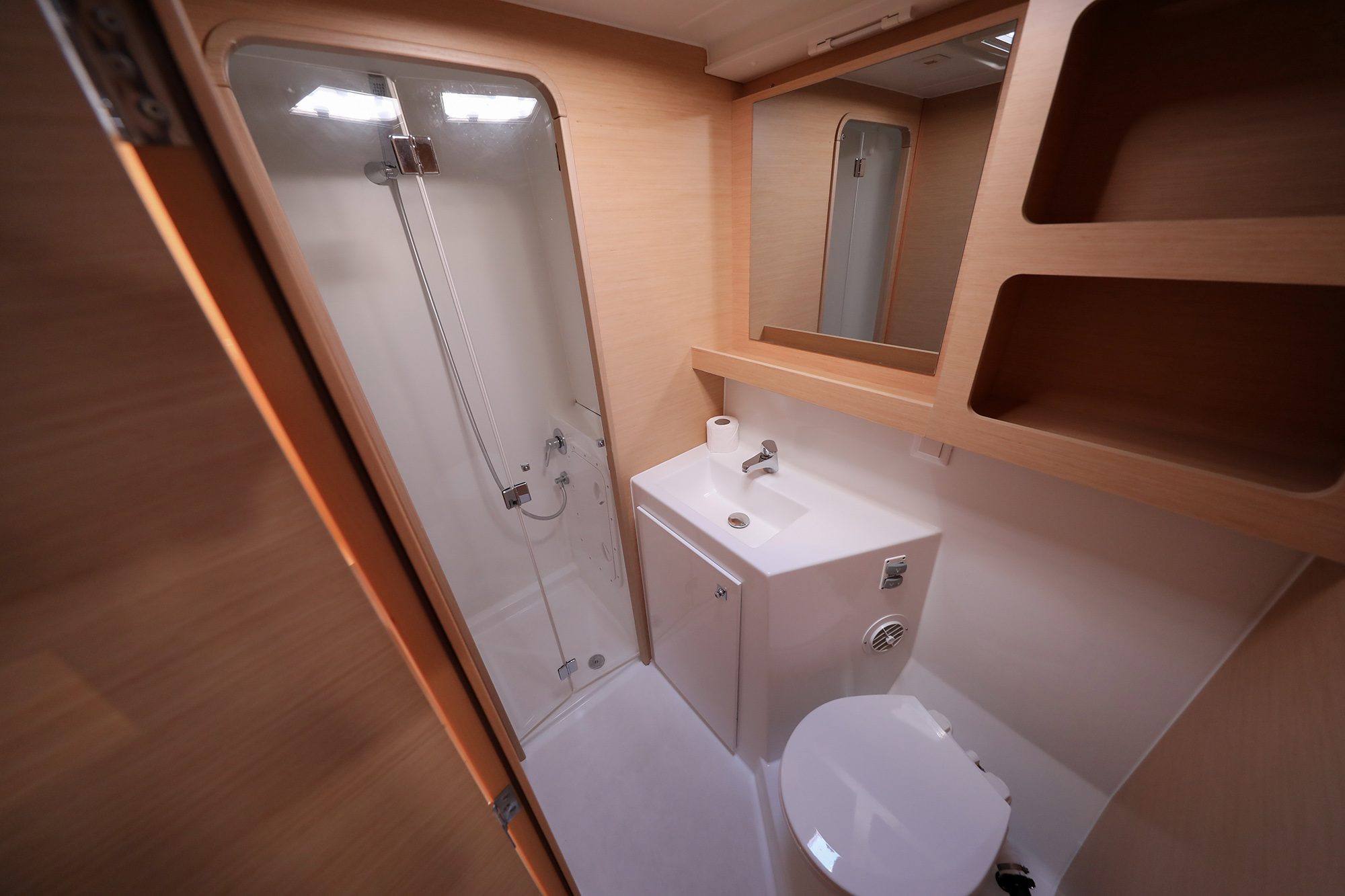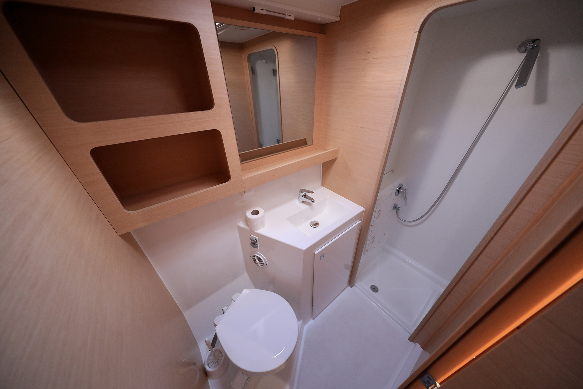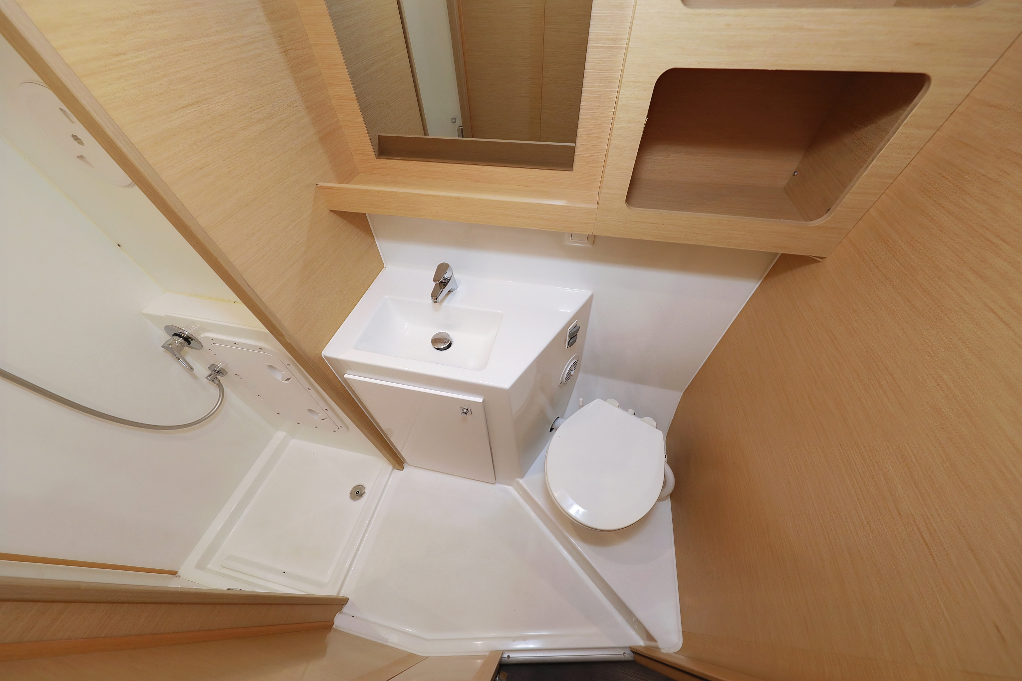| Inside | 220V Steckdosen, Eisbox, Fäkalientank, FUSION Sound System, Gasherd mit Backofen, Generator, Heizung, Inverter 12V/220V, Klimaanlage (ohne Landstrombedarf), Kühlschrank mit Gefrierfach, Ladegerät, Landstromkabel, Mokkakanne, Pantryausstattung, Radio, Spülbecken, USB Steckdosen in den Kabinen, Warmwasser, Wasserkocher, WC (elektr.) |