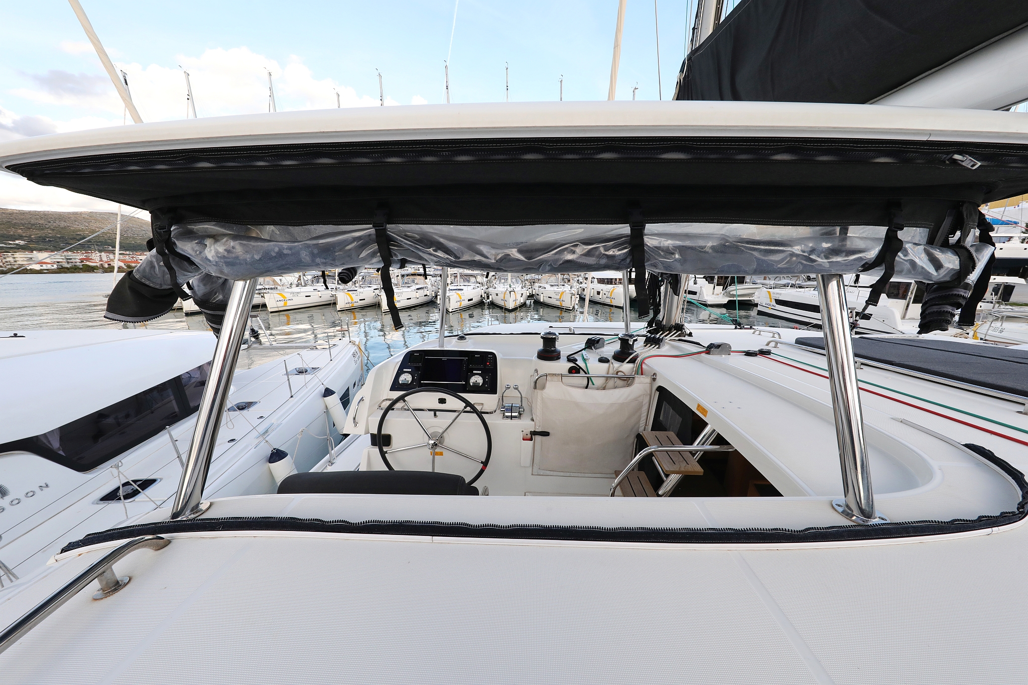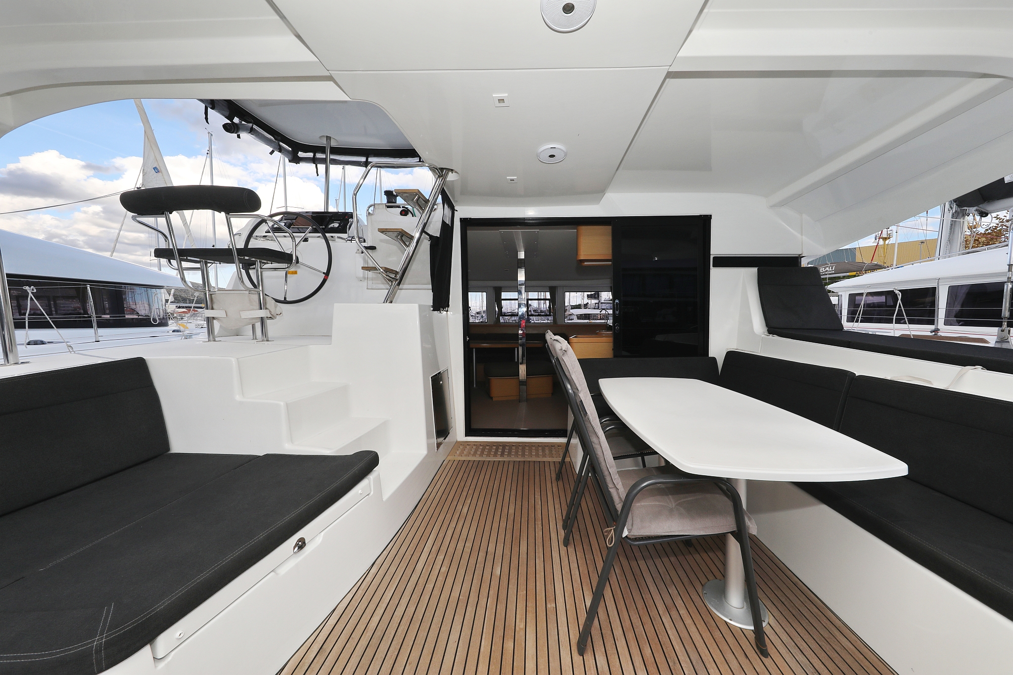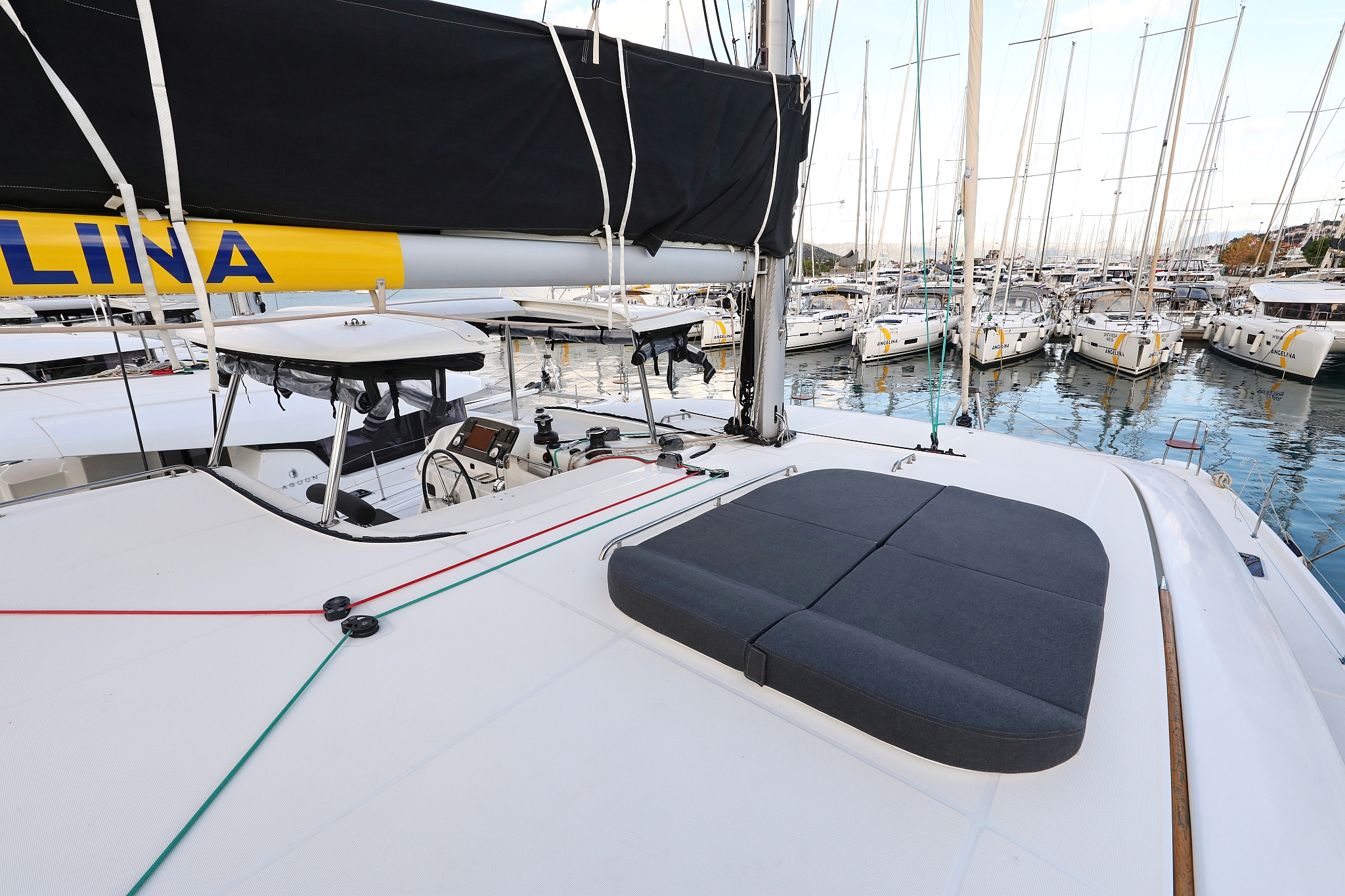 | Outside | Anker mit Kette, Biminitop, Bootshaken, Cockpitdusche, Cockpitkühlschrank, Cockpitlautsprecher, Cockpitpolster, Cockpittisch, Deckpolster, elektr. Ankerwinsch, elektr. Großwinsch, Fender, Festmacherleinen, Sonnendeck, Teak im Cockpit, Wasserschlauch, Winschen |