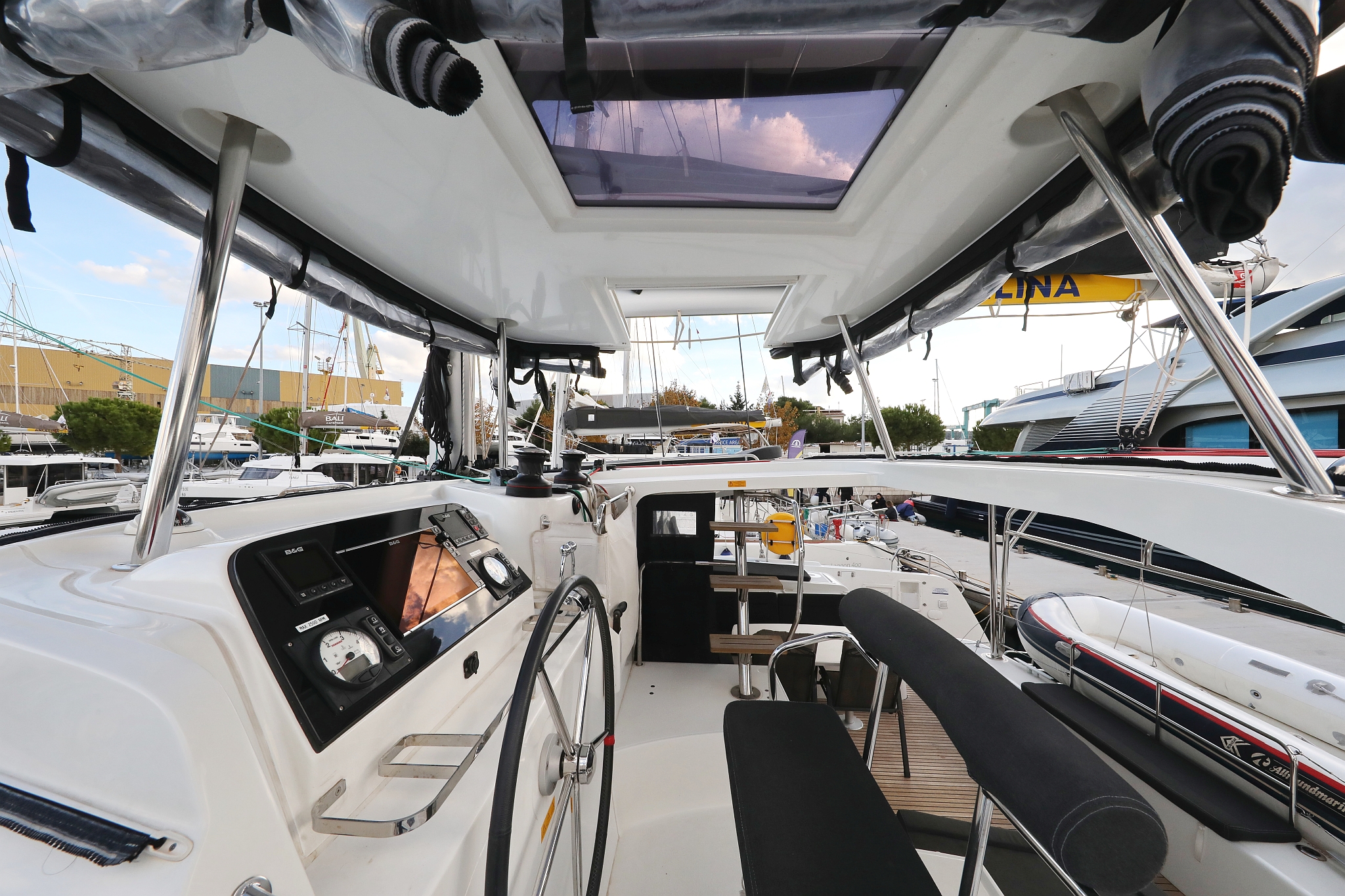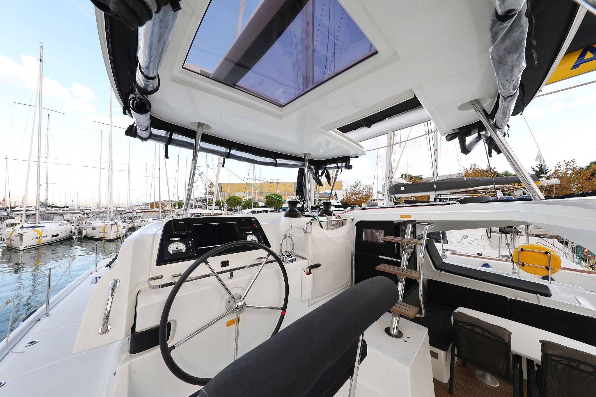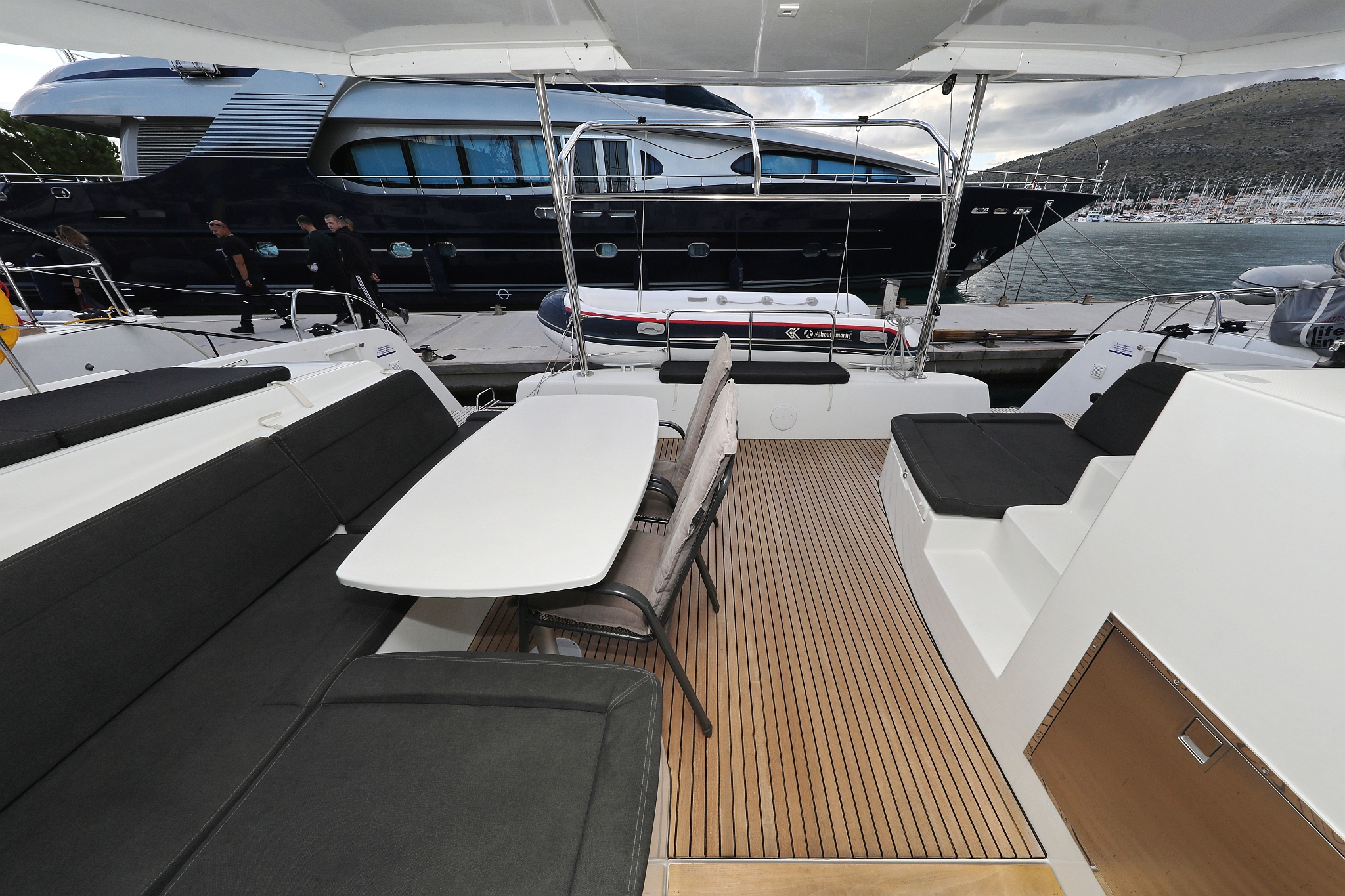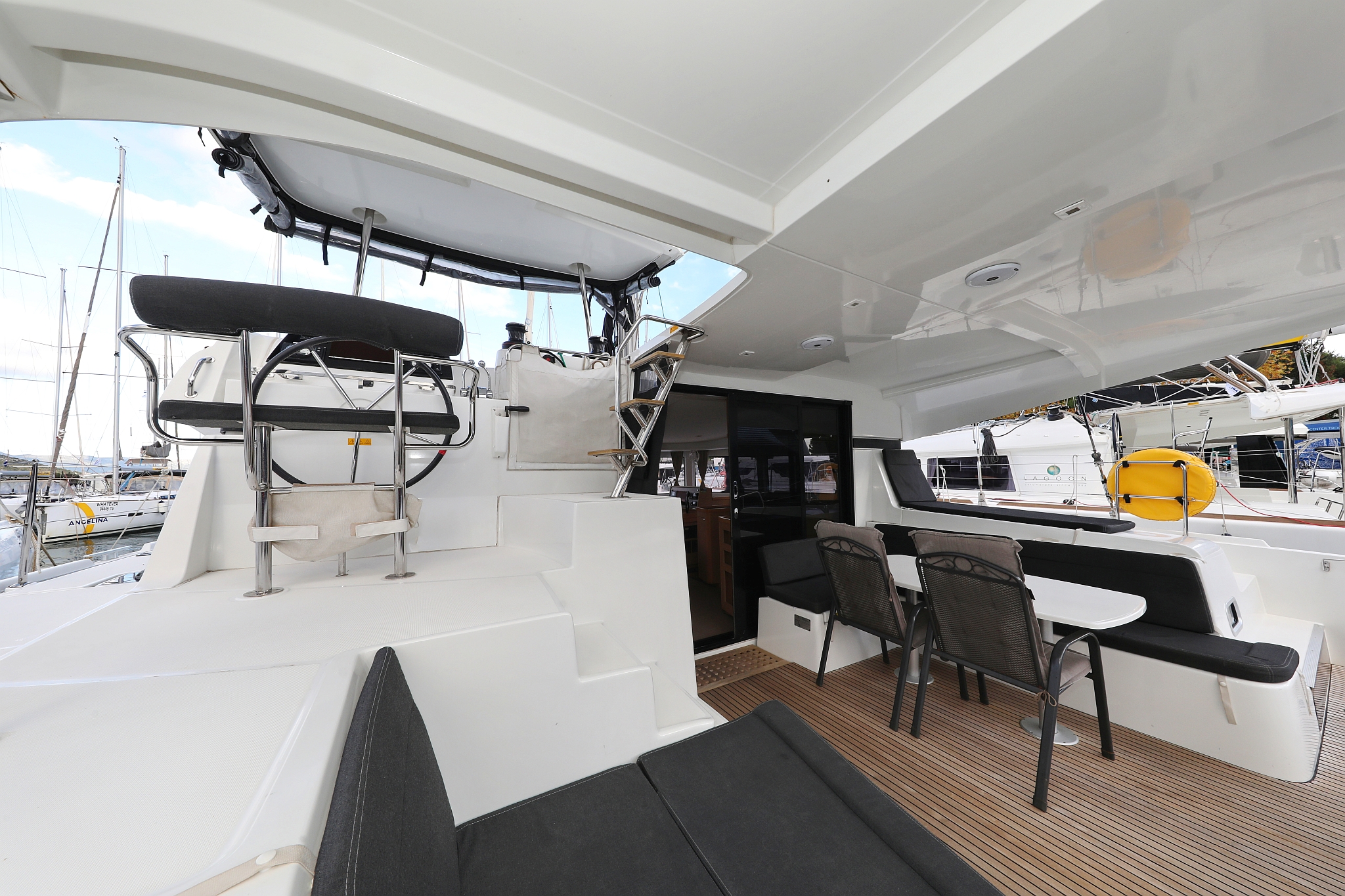 | Outside | Anker mit Kette, Biminitop, Bootshaken, Cockpitdusche, Cockpitkühlschrank, Cockpitlautsprecher, Cockpitpolster, Cockpittisch, Deckpolster, elektr. Ankerwinsch, elektr. Großwinsch, Fender, Festmacherleinen, Sonnendeck, Teak im Cockpit, Wasserschlauch, Winschen |