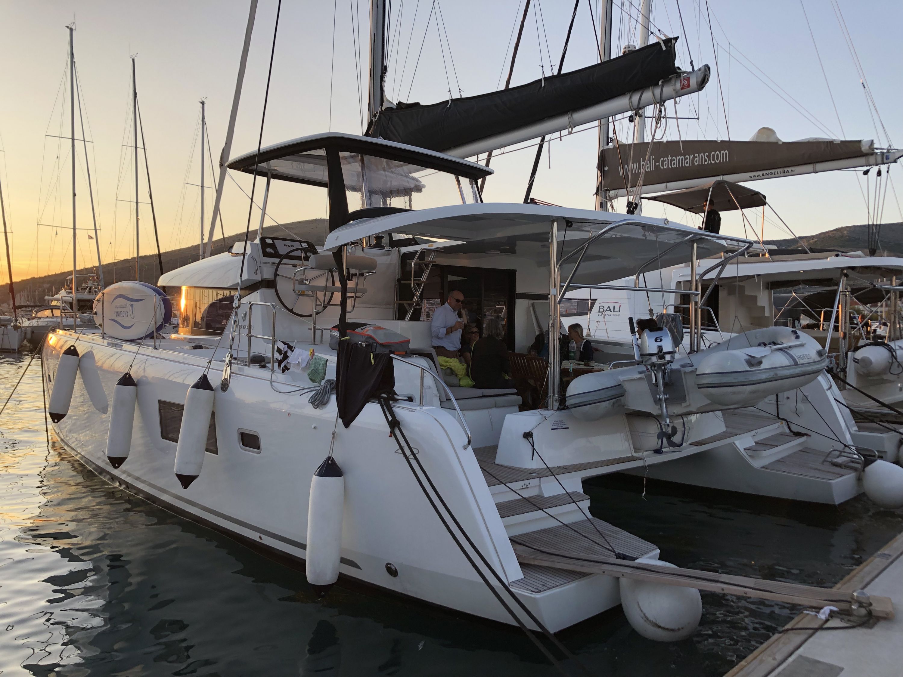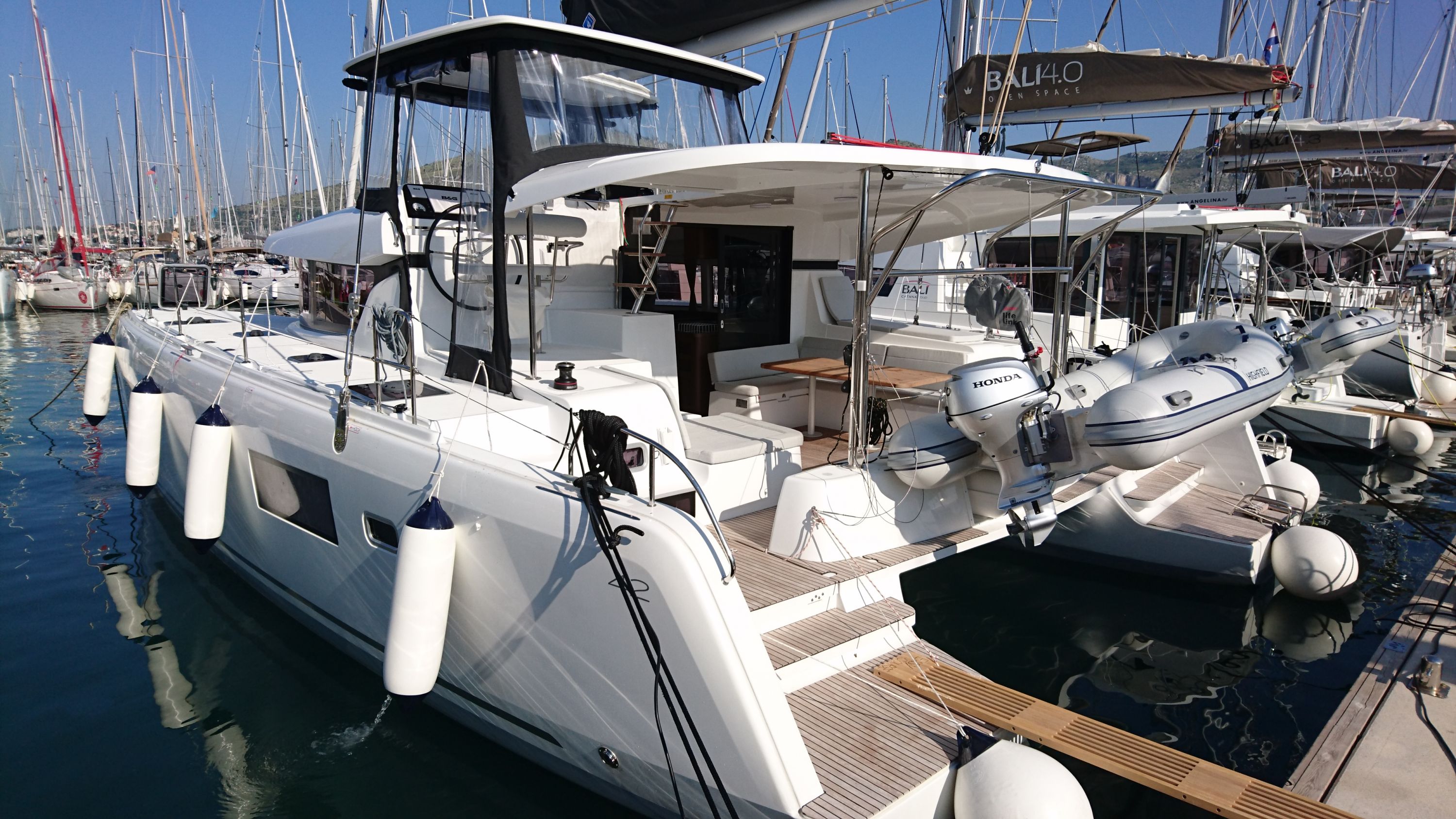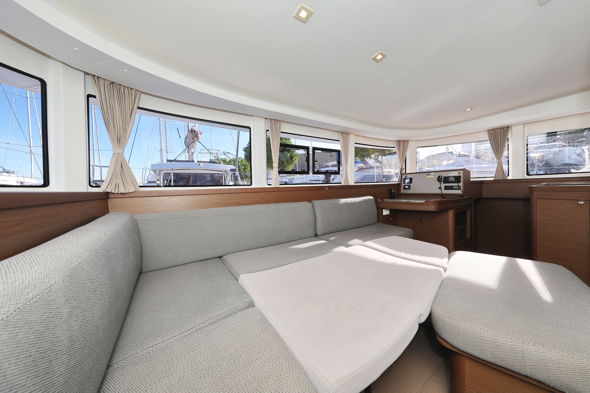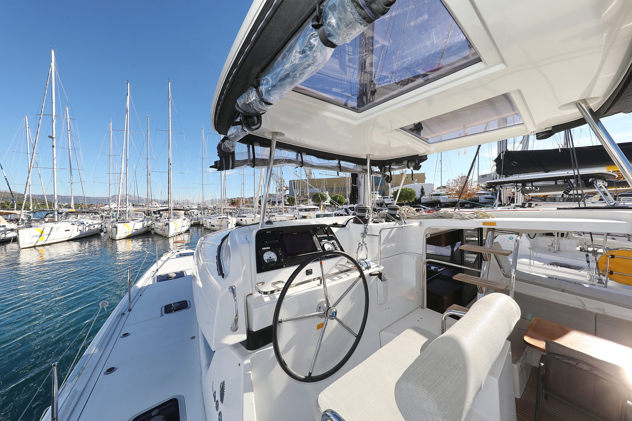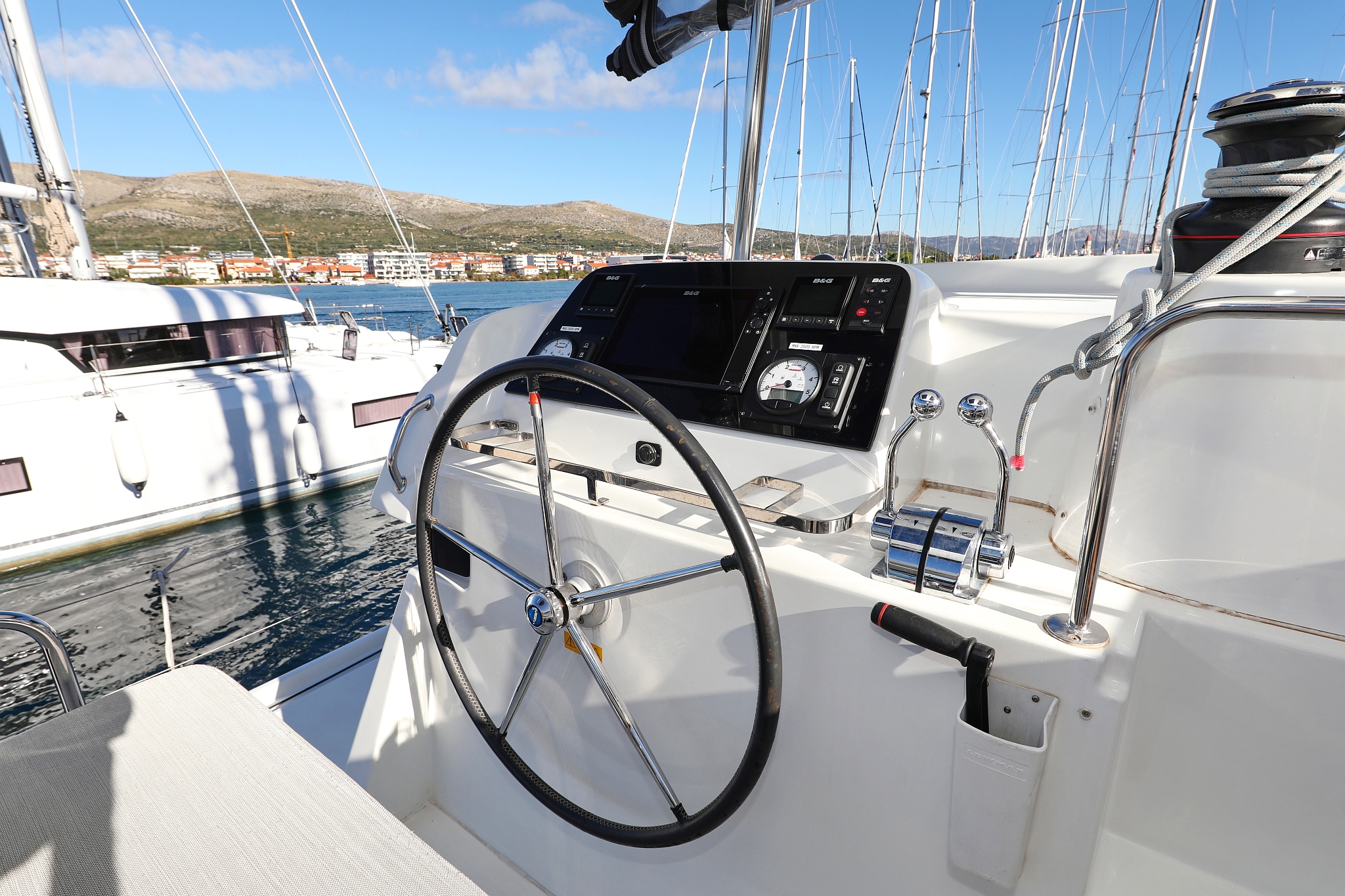 | Outside | 220 V-Landanschluss, Bootshaken, Cockpitdusche, Cockpitkühlschrank, Cockpitlautsprecher, Cockpitpolster, Cockpittisch, Cockpittisch mit Eisbox, Delta-Anker, elektr. Ankerwinsch, elektr. Winsch, Fender, Festmacherleinen, Gangway, Hardtop, Jambo Anker, Solaranlage, Sonnendeck, Wasserschlauch, Winschen |