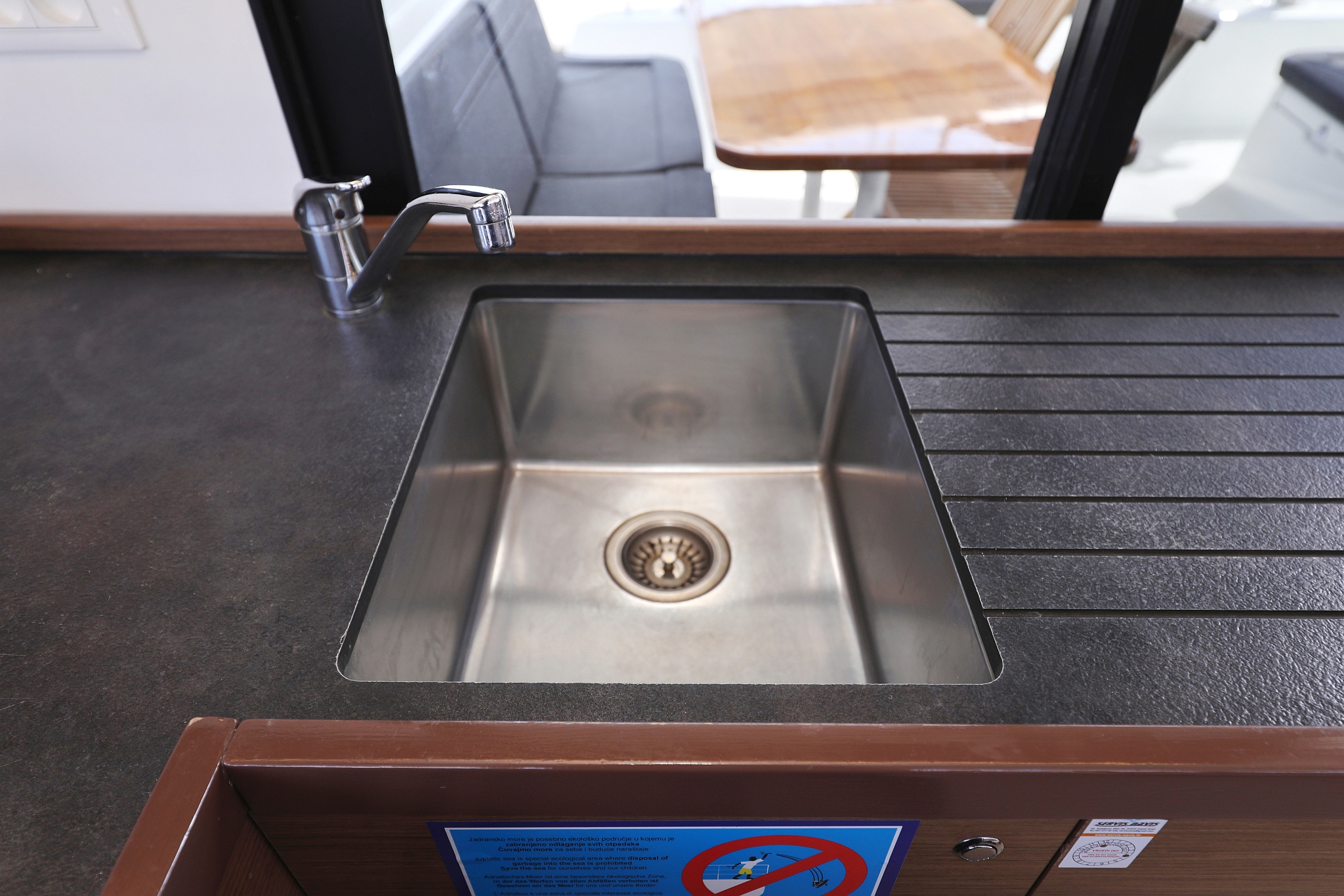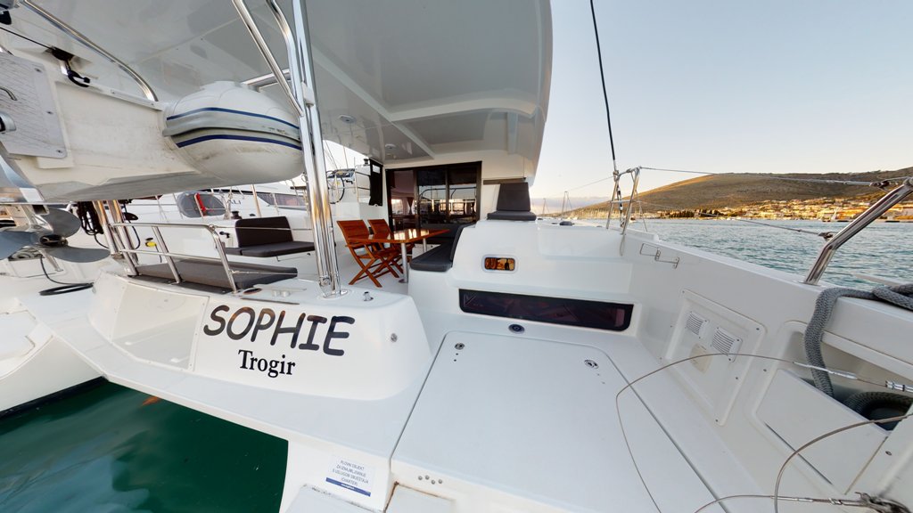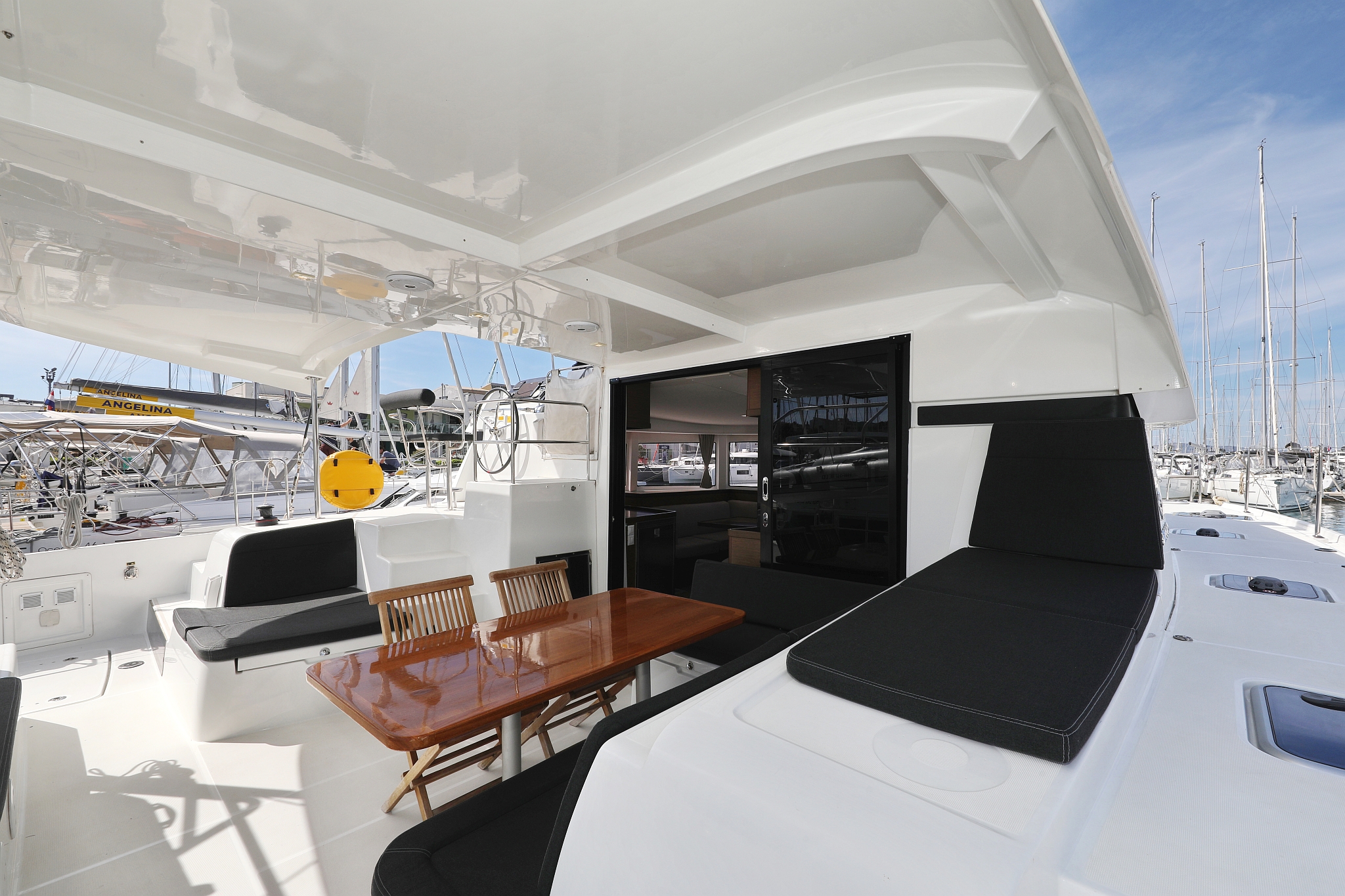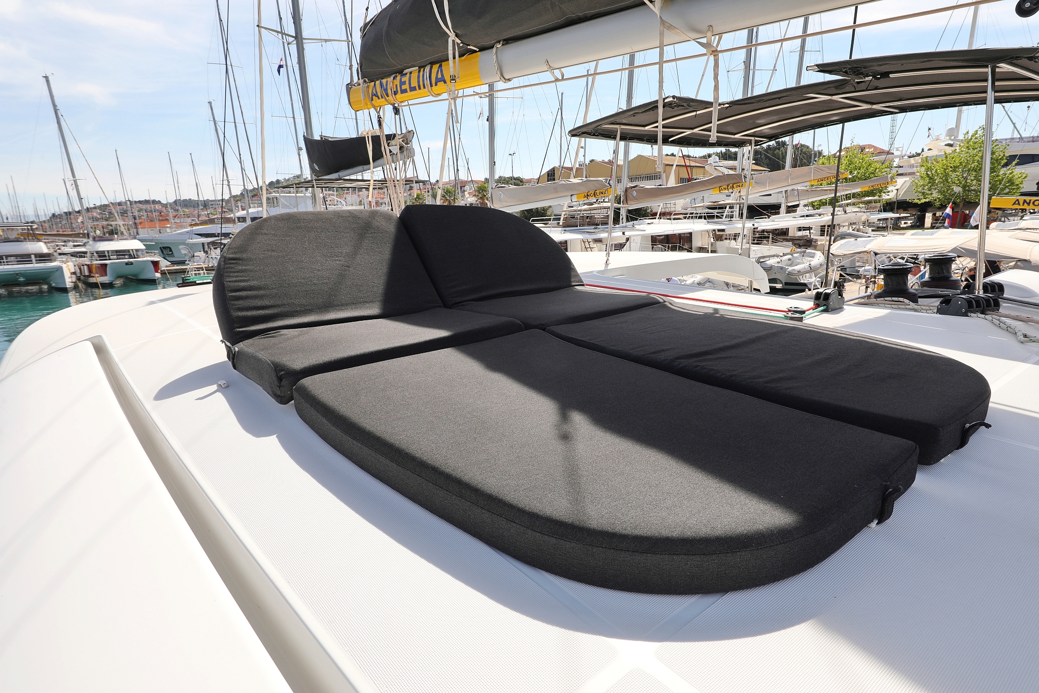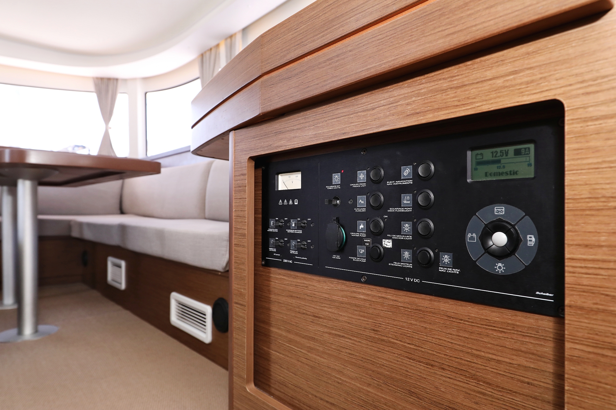 | Outside | 220 V-Landanschluss, Anker mit Kette, Badeleiter, Biminitop, Bootshaken, Cockpitdusche, Cockpitkühlschrank, Cockpitlautsprecher, Cockpitpolster, Cockpittisch, Deckpolster, Delta-Anker, elektr. Ankerwinsch, elektr. Winsch, Fender, Festmacherleinen, Gangway, Hardtop, Jambo Anker, Sonnendeck, Wasserschlauch, Winschen |