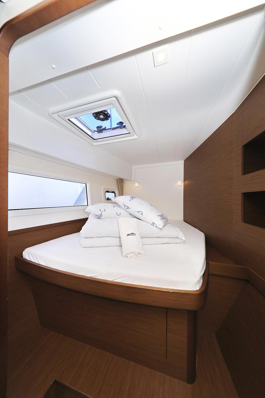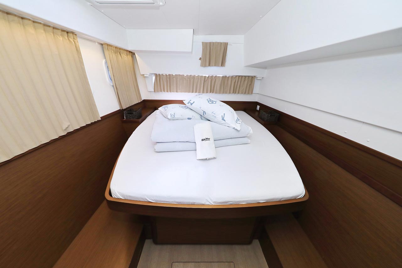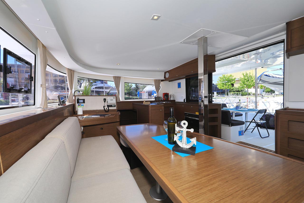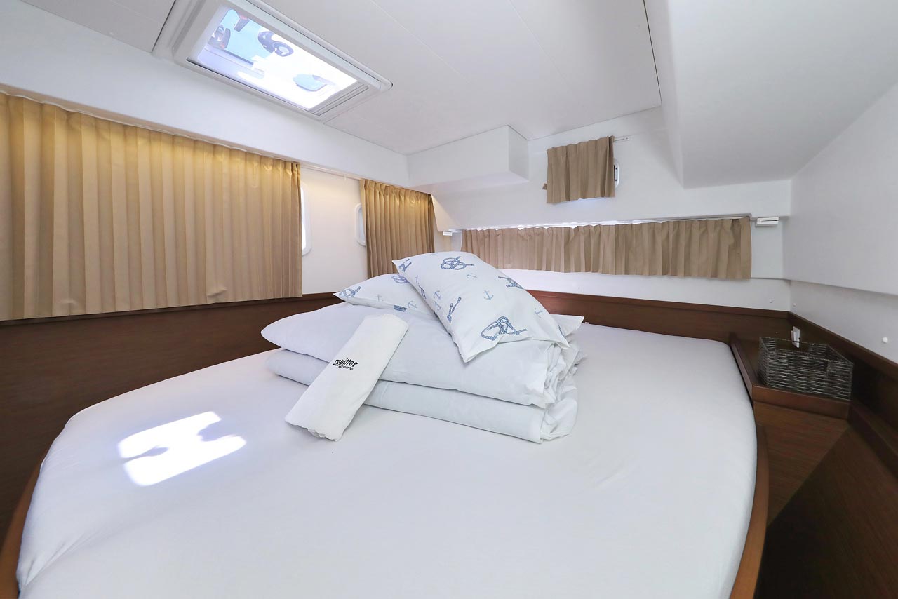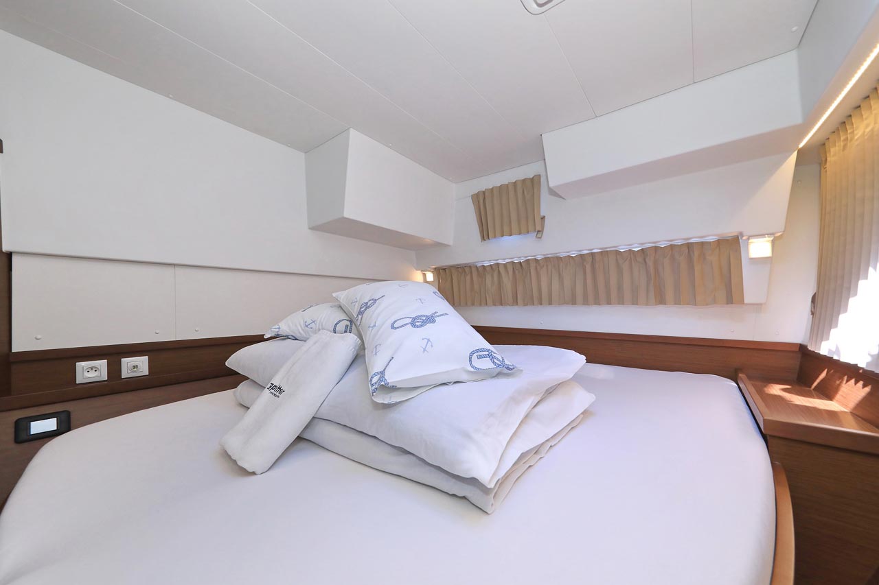 FUSION Sound System, Generator, Heizung, Klimaanlage (ohne Landstrombedarf), Kühlschrank, Ladegerät, Luftpumpe für Beiboot, Pantryausstattung, Radio mit Bluetooth und AUX-In, Salontisch absenkbar, USB Steckdose, Ventilatoren in Kabinen, Warmwasser, WC (elektr.) |