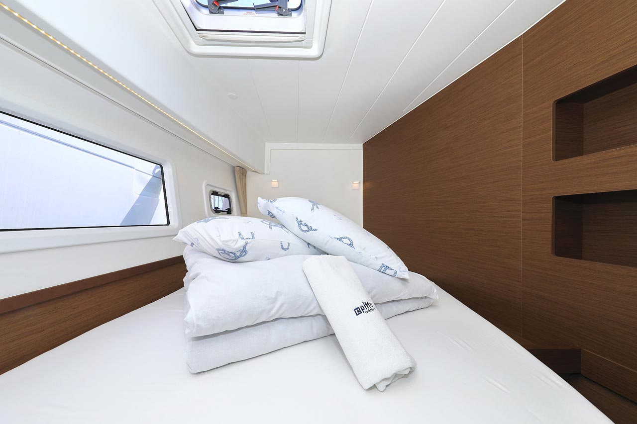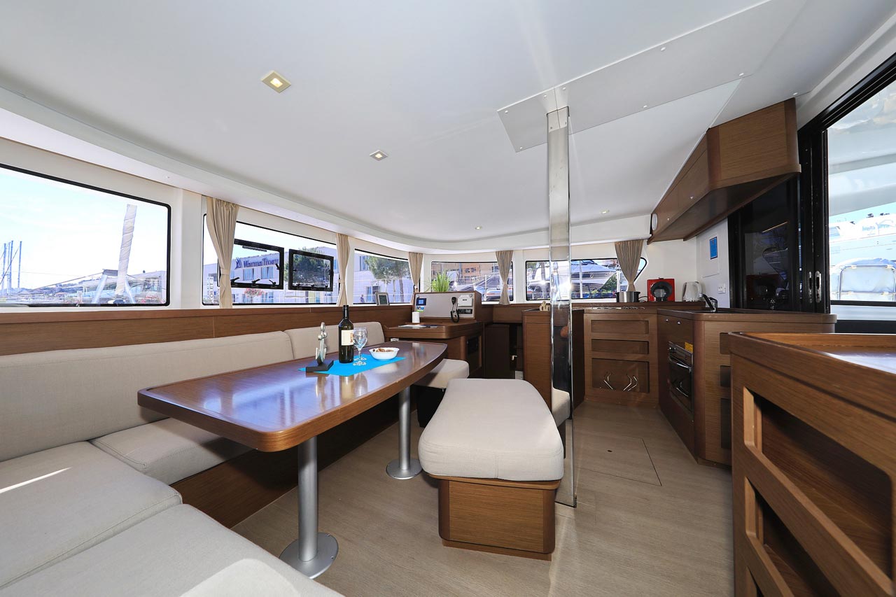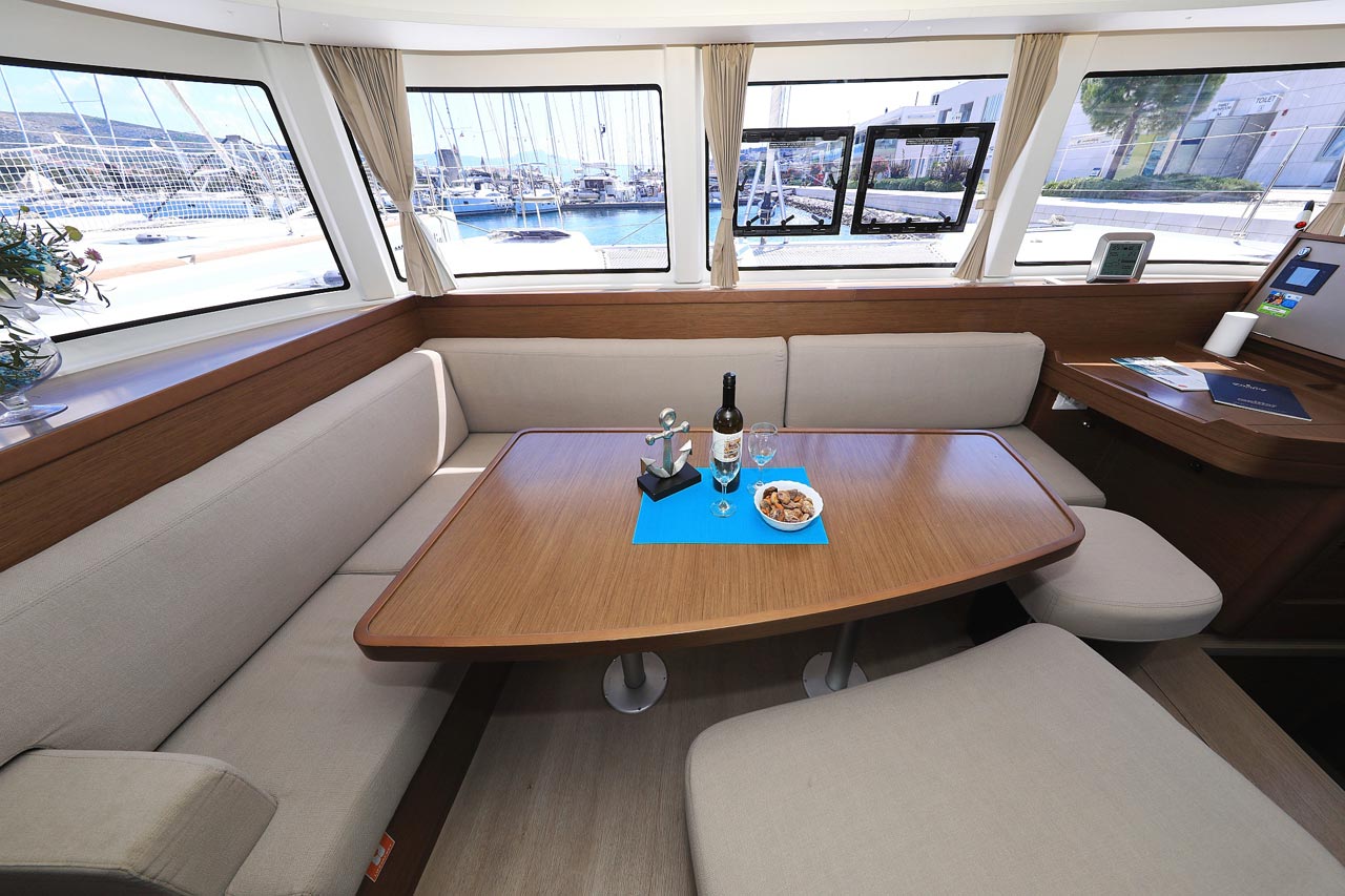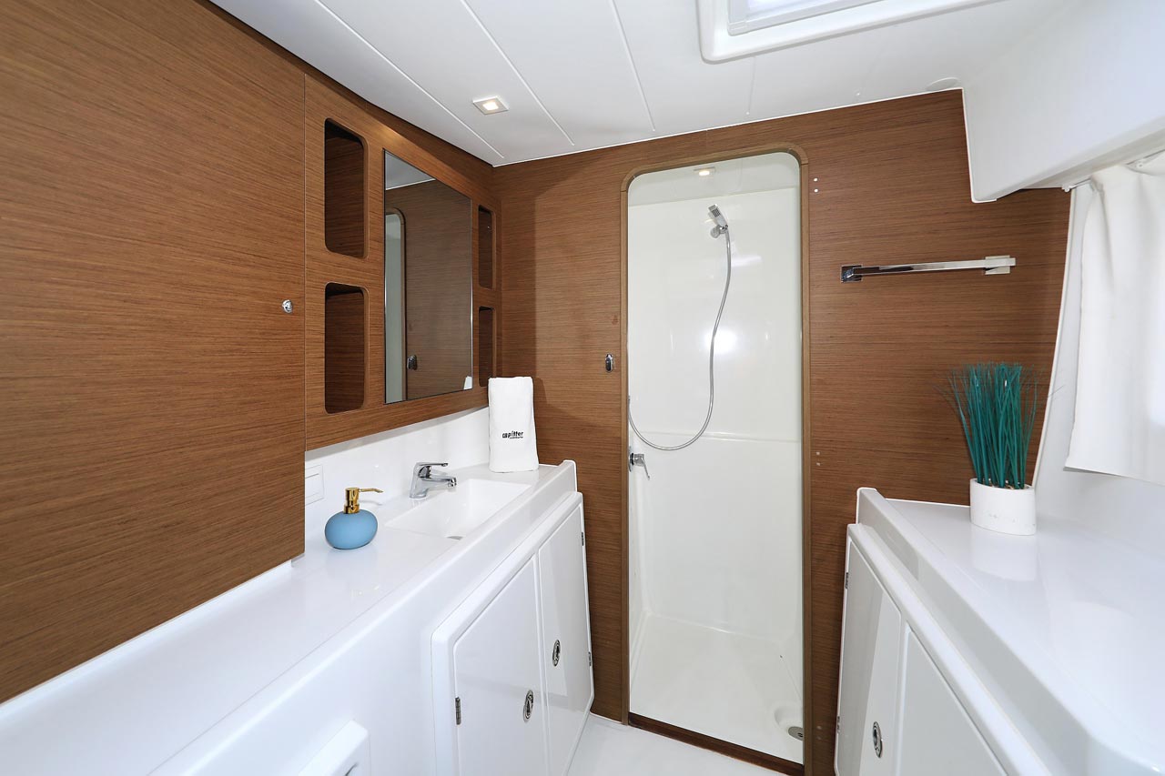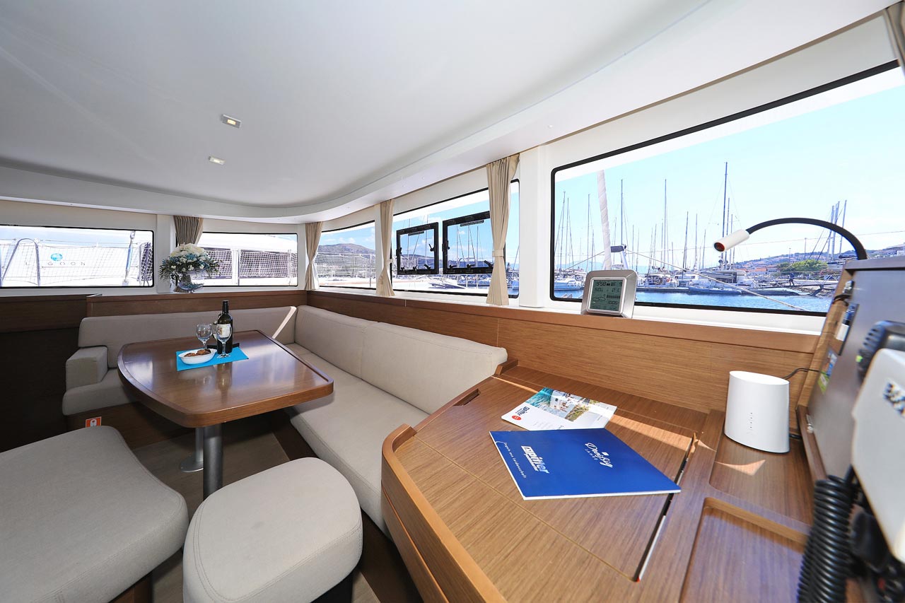 FUSION Sound System, Generator, Heizung, Klimaanlage (ohne Landstrombedarf), Kühlschrank, Ladegerät, Luftpumpe für Beiboot, Pantryausstattung, Radio mit Bluetooth und AUX-In, Salontisch absenkbar, USB Steckdose, Ventilatoren in Kabinen, Warmwasser, WC (elektr.) |