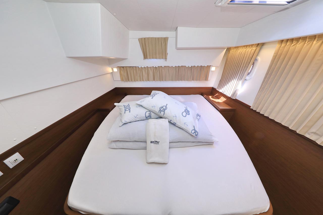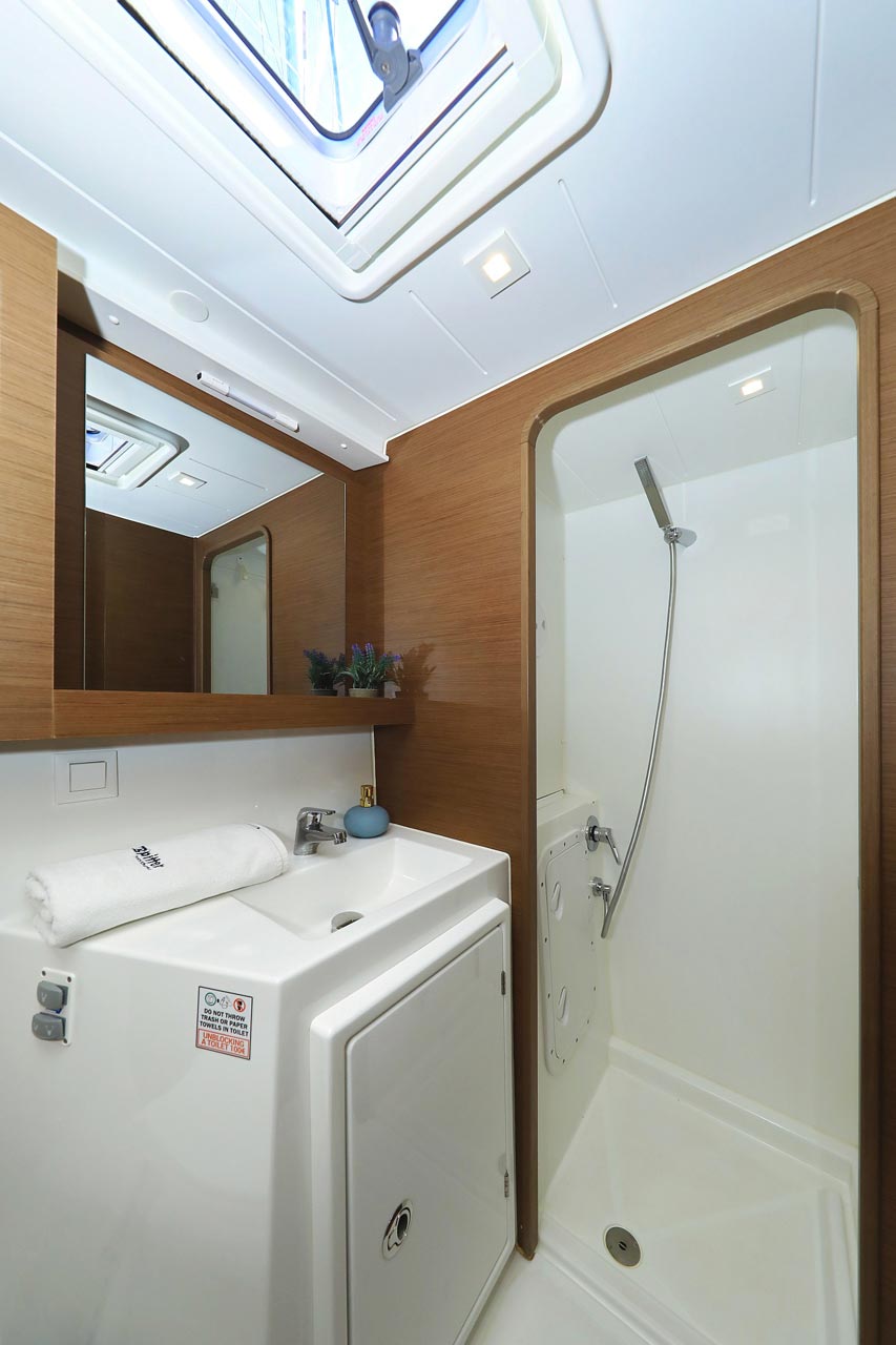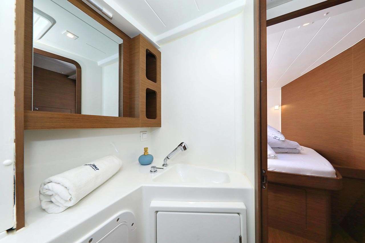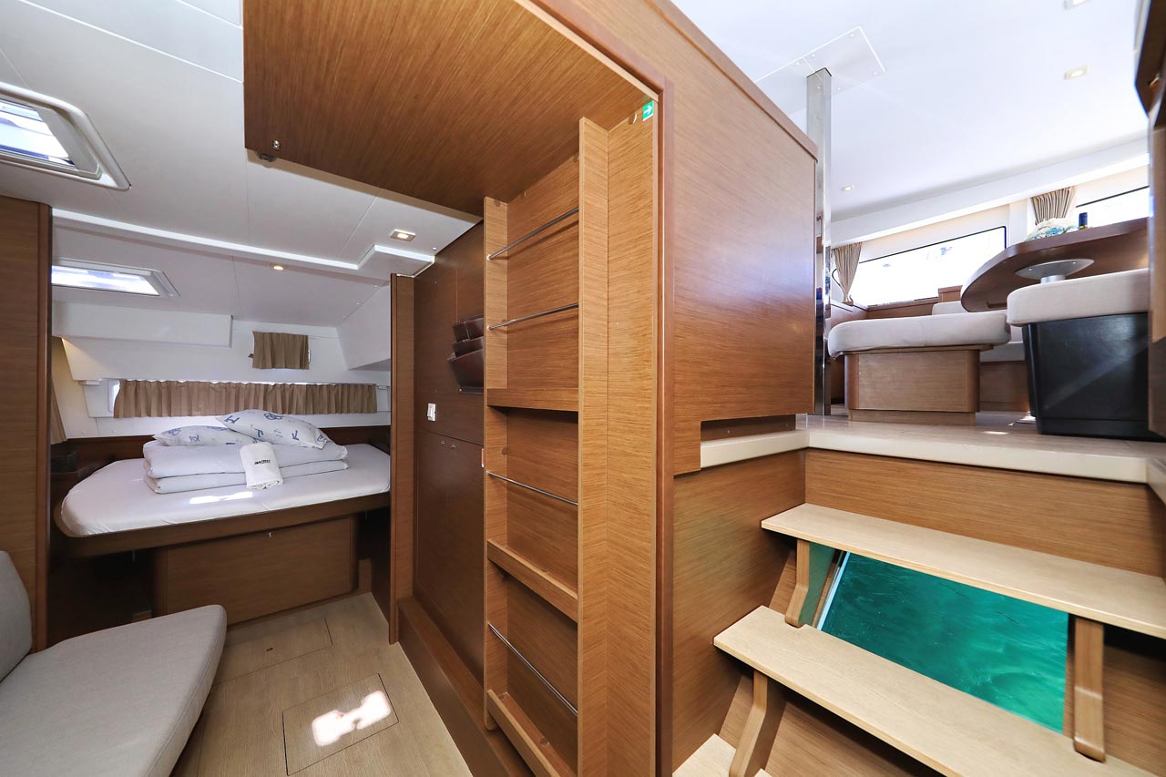 FUSION Sound System, Generator, Heizung, Klimaanlage (ohne Landstrombedarf), Kühlschrank, Ladegerät, Luftpumpe für Beiboot, Pantryausstattung, Radio mit Bluetooth und AUX-In, Salontisch absenkbar, USB Steckdose, Ventilatoren in Kabinen, Warmwasser, WC (elektr.) |