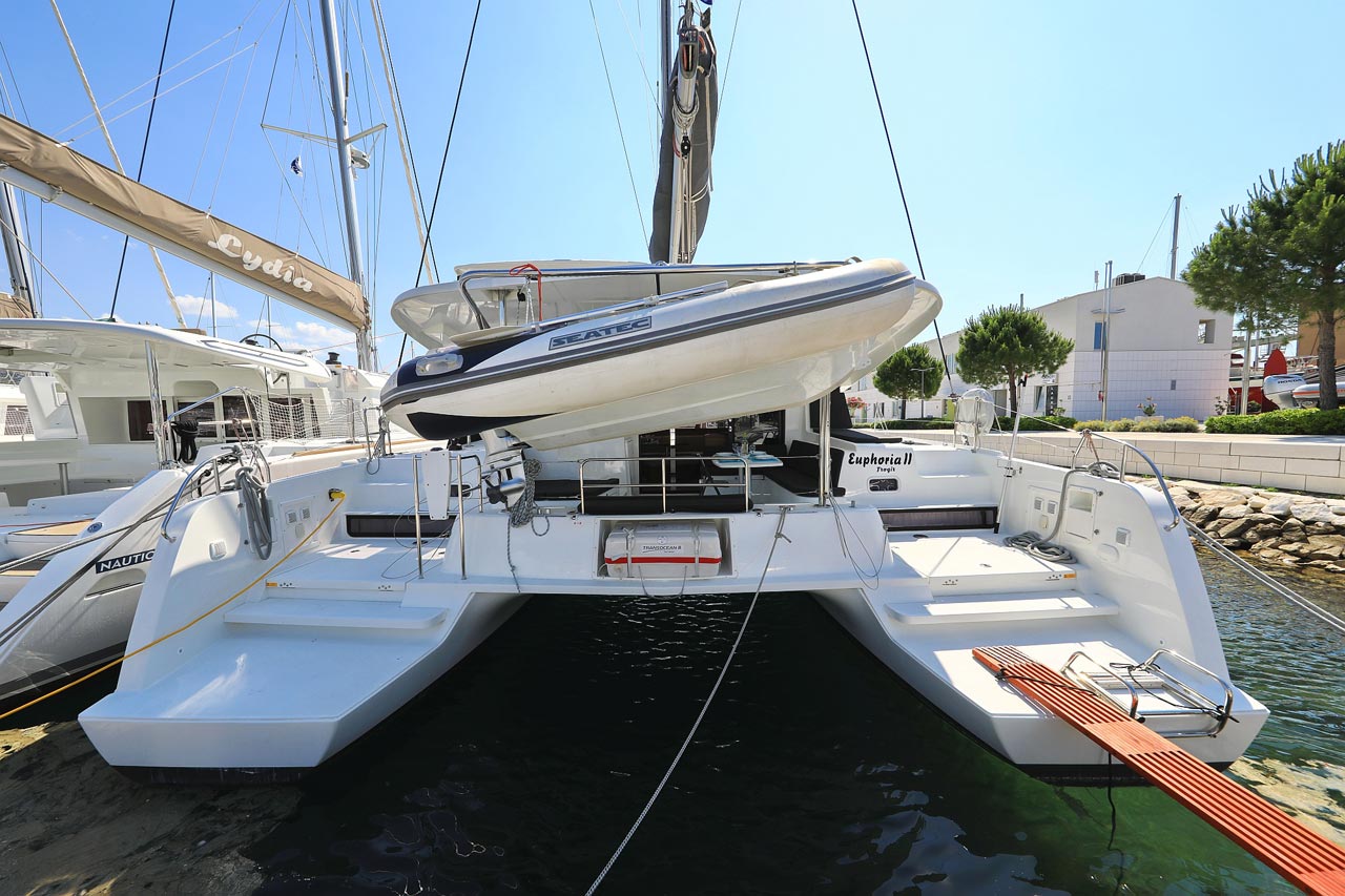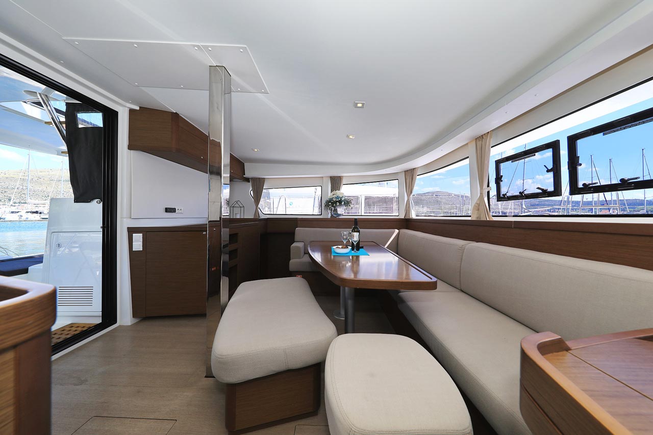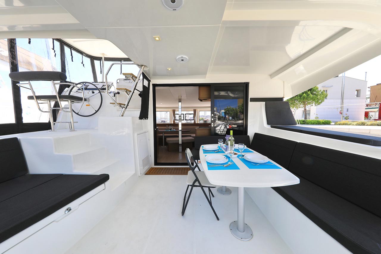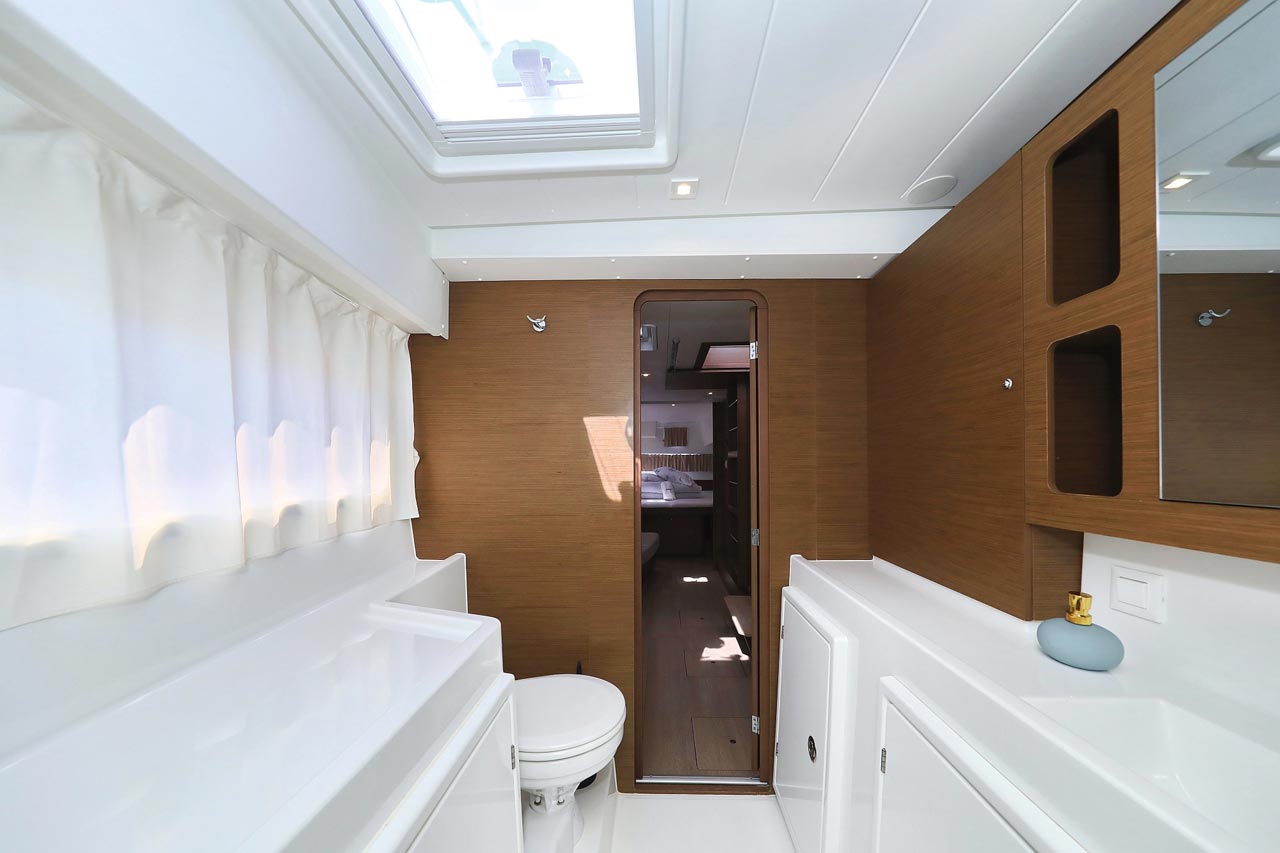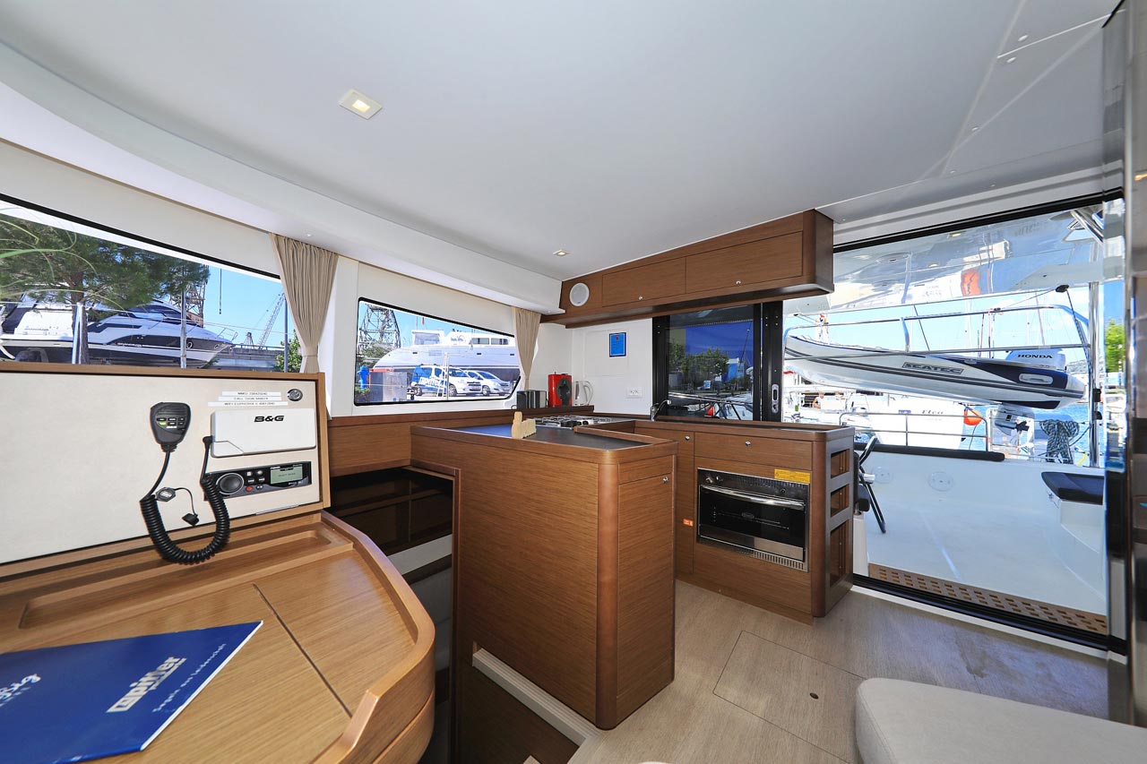 FUSION Sound System, Generator, Heizung, Klimaanlage (ohne Landstrombedarf), Kühlschrank, Ladegerät, Luftpumpe für Beiboot, Pantryausstattung, Radio mit Bluetooth und AUX-In, Salontisch absenkbar, USB Steckdose, Ventilatoren in Kabinen, Warmwasser, WC (elektr.) |