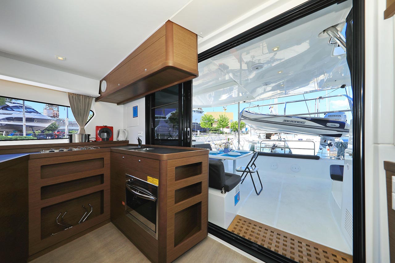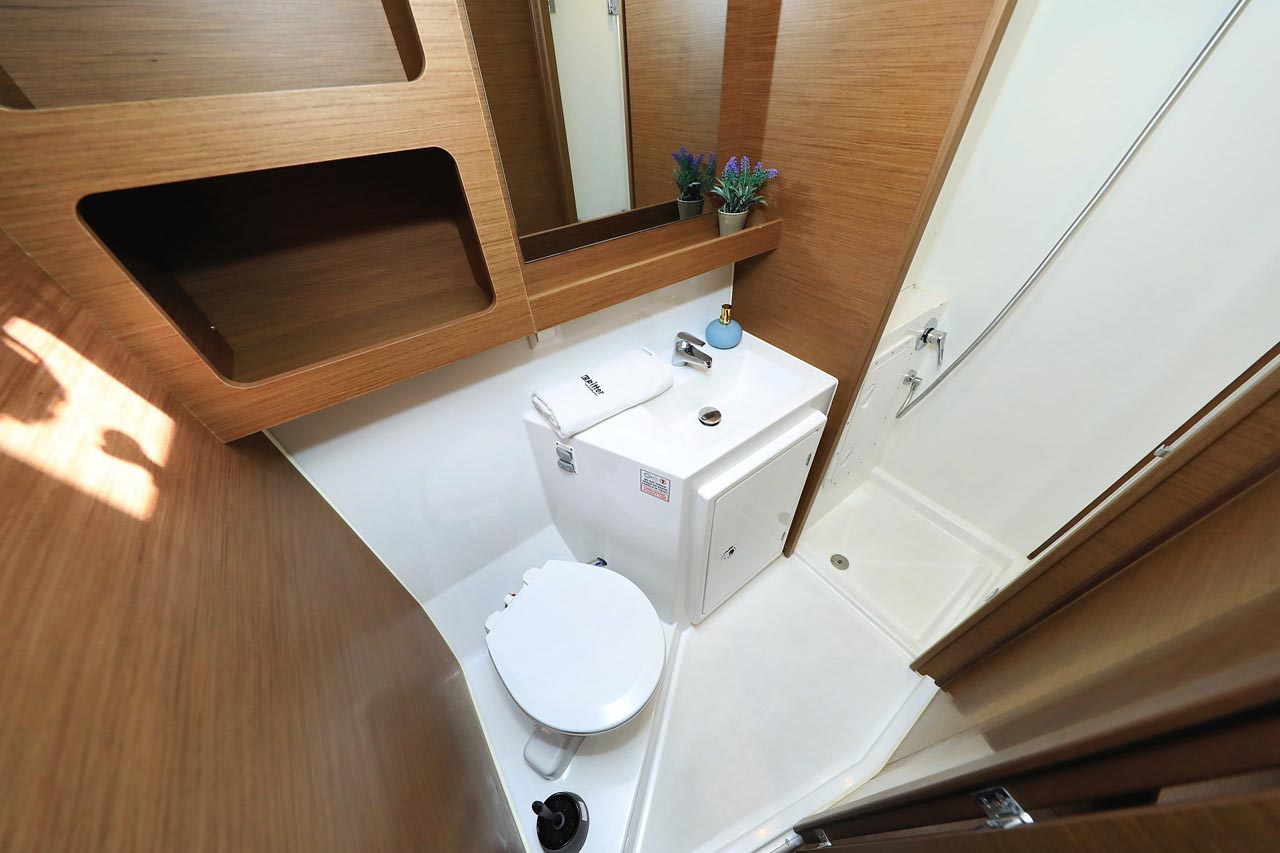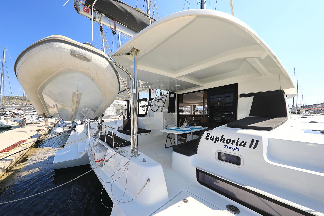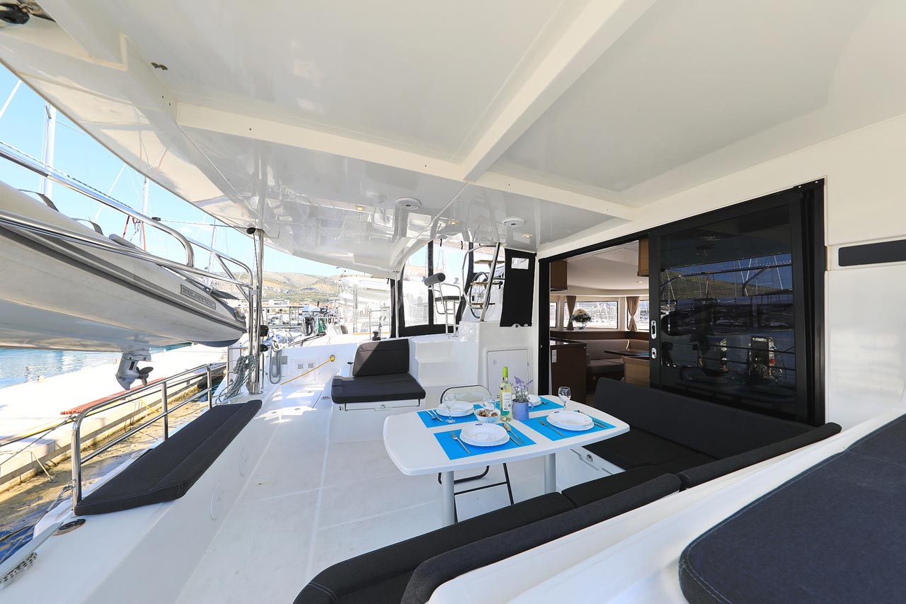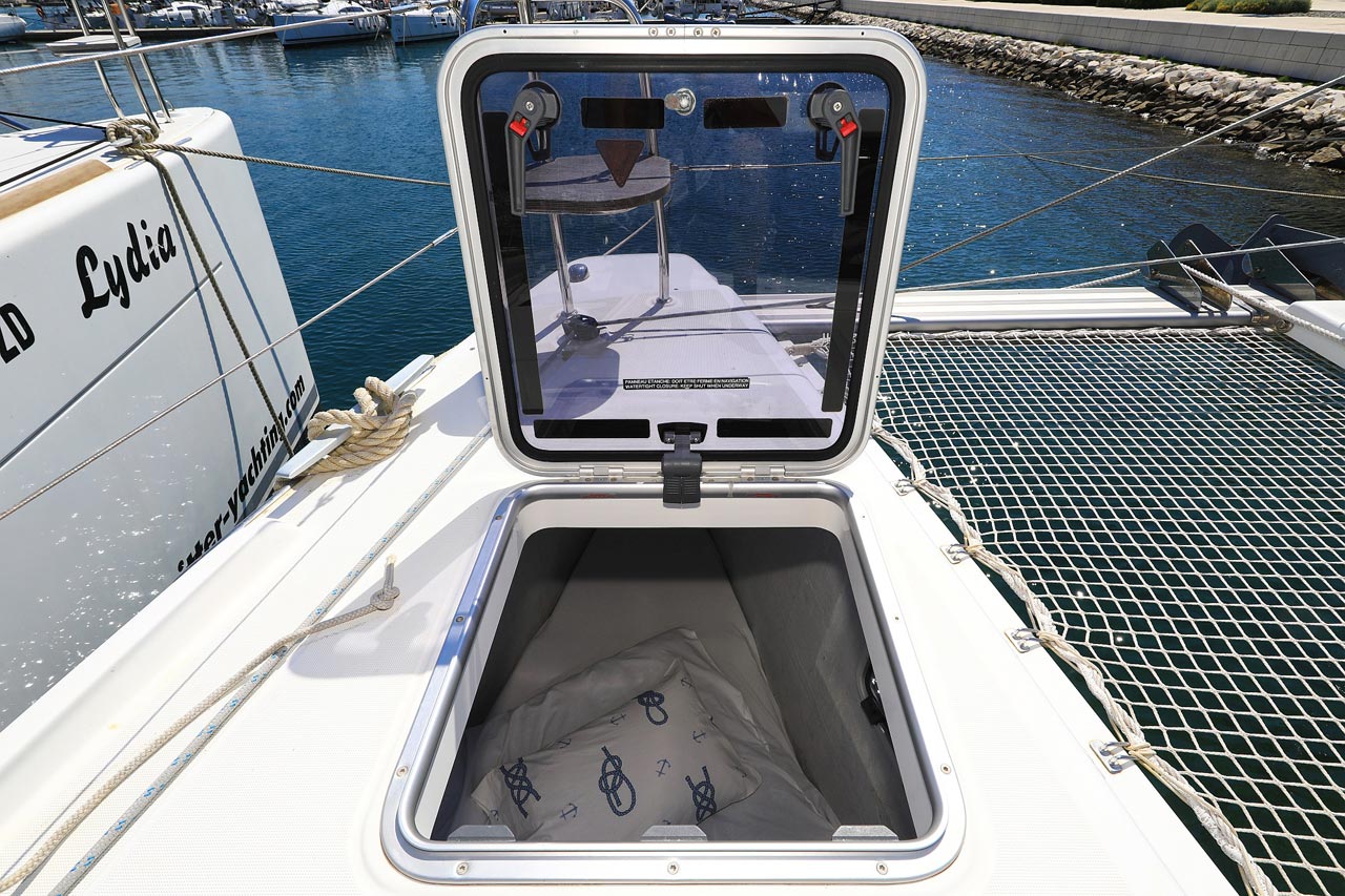 FUSION Sound System, Generator, Heizung, Klimaanlage (ohne Landstrombedarf), Kühlschrank, Ladegerät, Luftpumpe für Beiboot, Pantryausstattung, Radio mit Bluetooth und AUX-In, Salontisch absenkbar, USB Steckdose, Ventilatoren in Kabinen, Warmwasser, WC (elektr.) |