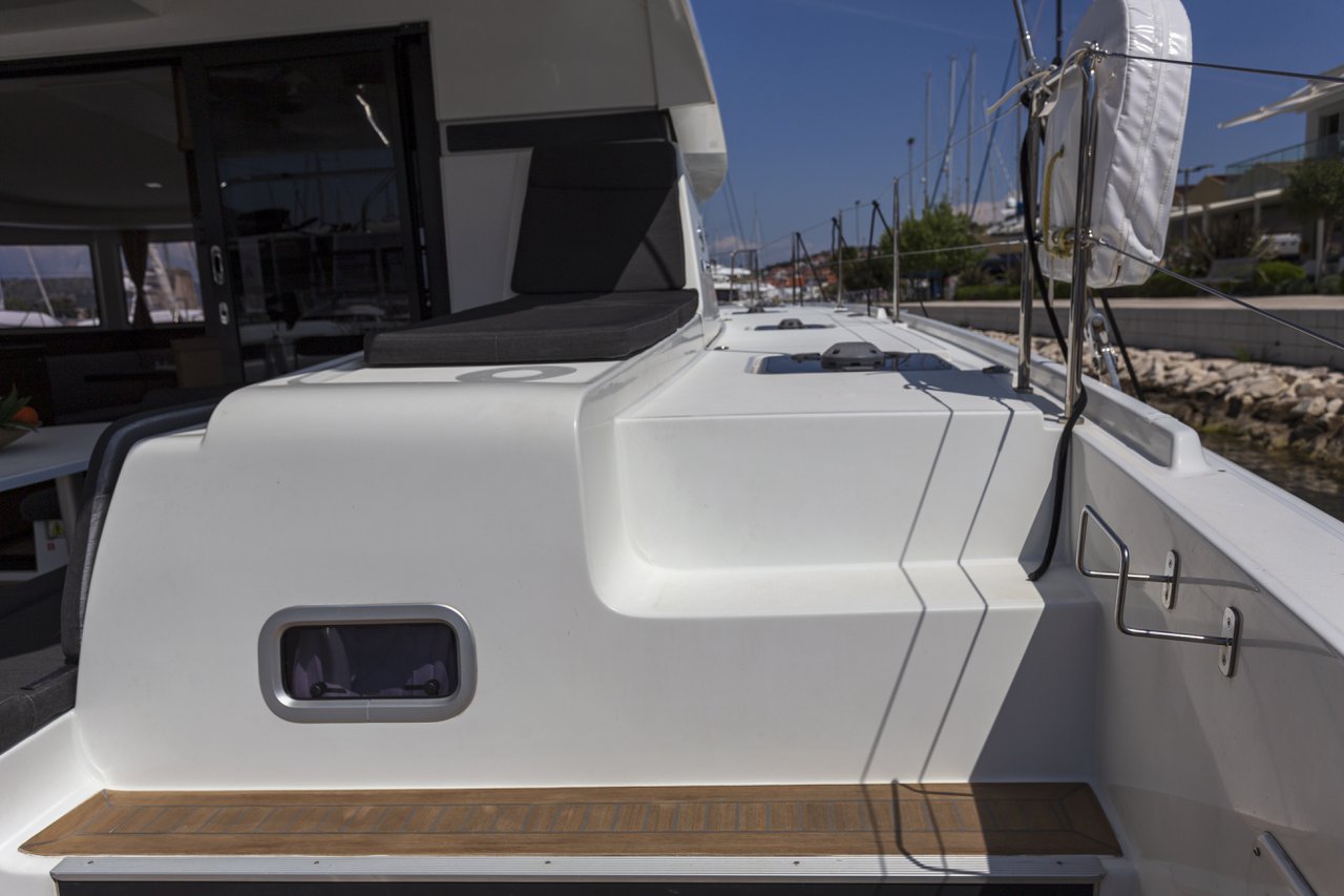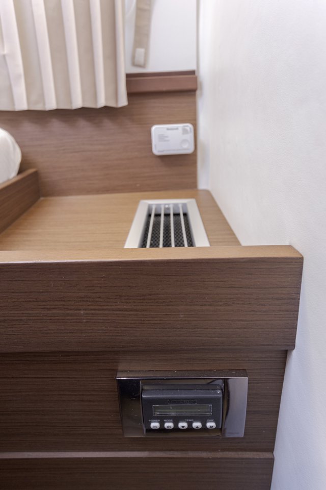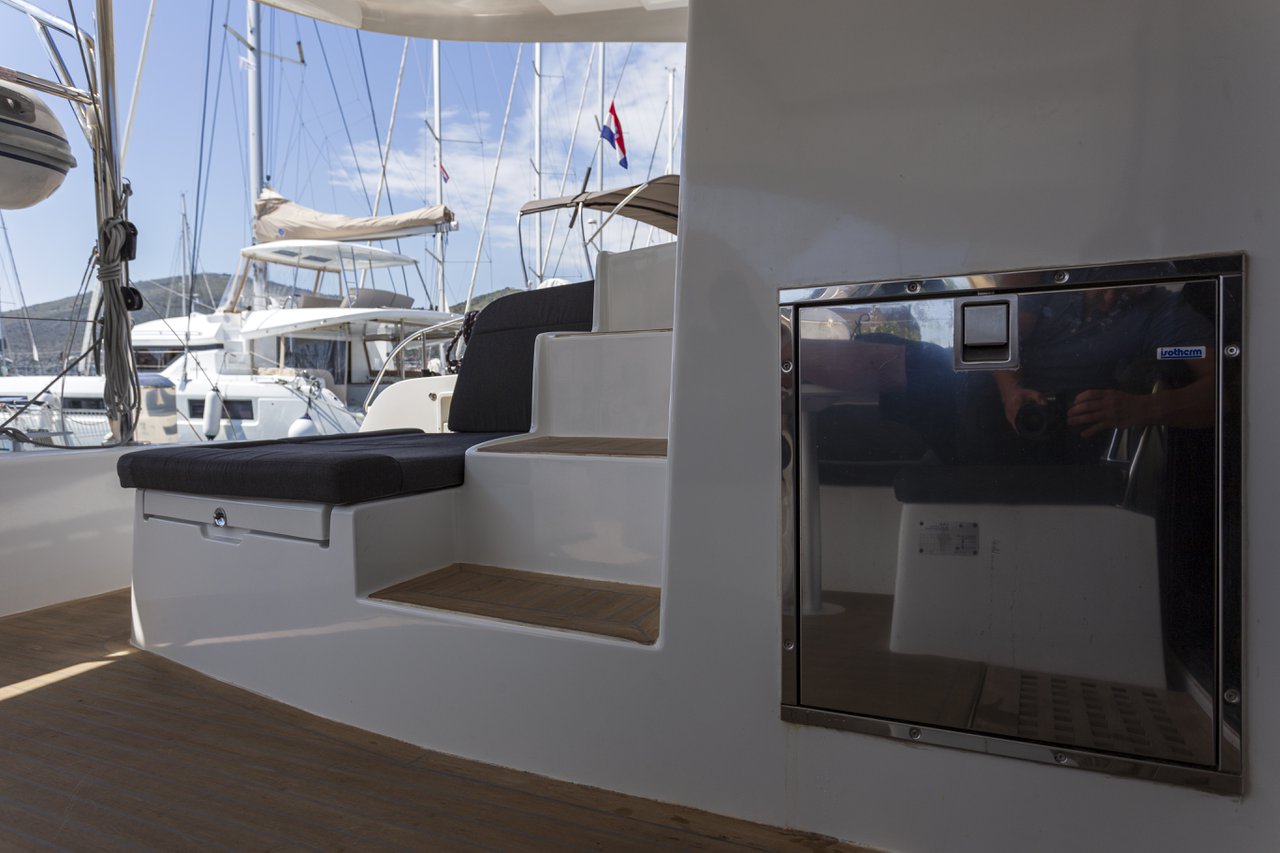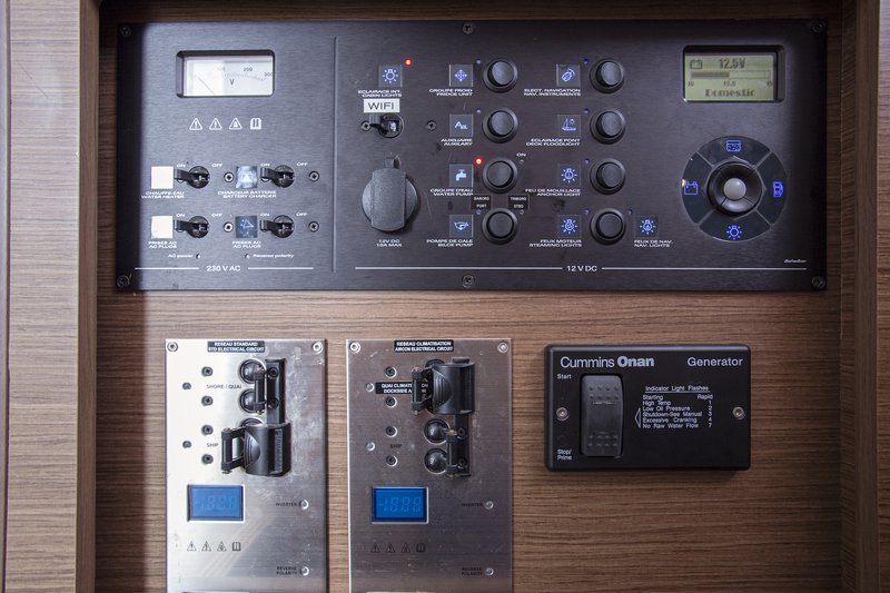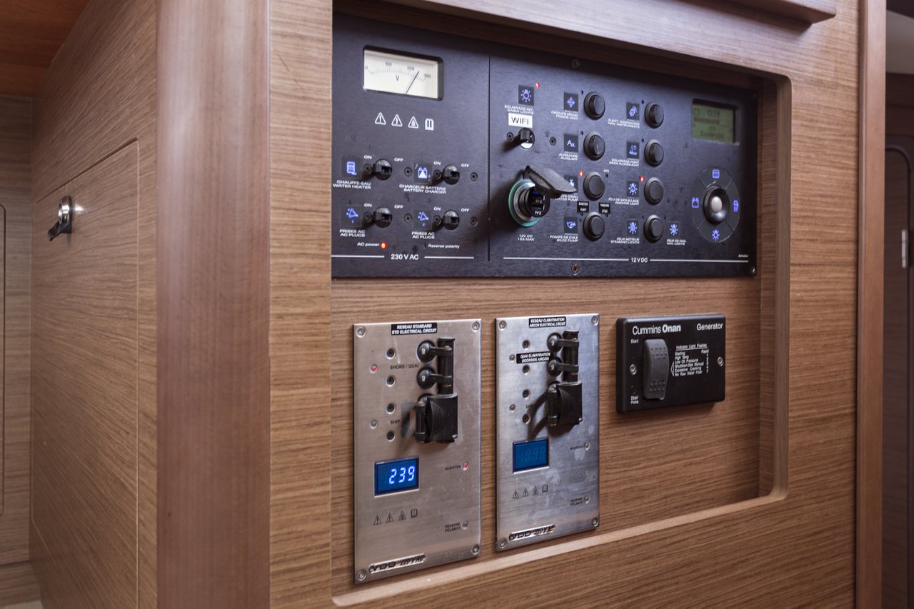 | Inside | 2. Kühlschrank, 220V Steckdosen, Fäkalientank, FUSION Sound System, Gefrierschrank, Generator, Heizung, Kaffeemaschine, Klimaanlage (ohne Landstrombedarf), Kühlschrank, Ladegerät, Landstromkabel, Moskitonetze, Pantryausstattung, Radio, Salontisch absenkbar, Ventilatoren in Salon und Kabinen, Warmwasser, WC (elektr.) |