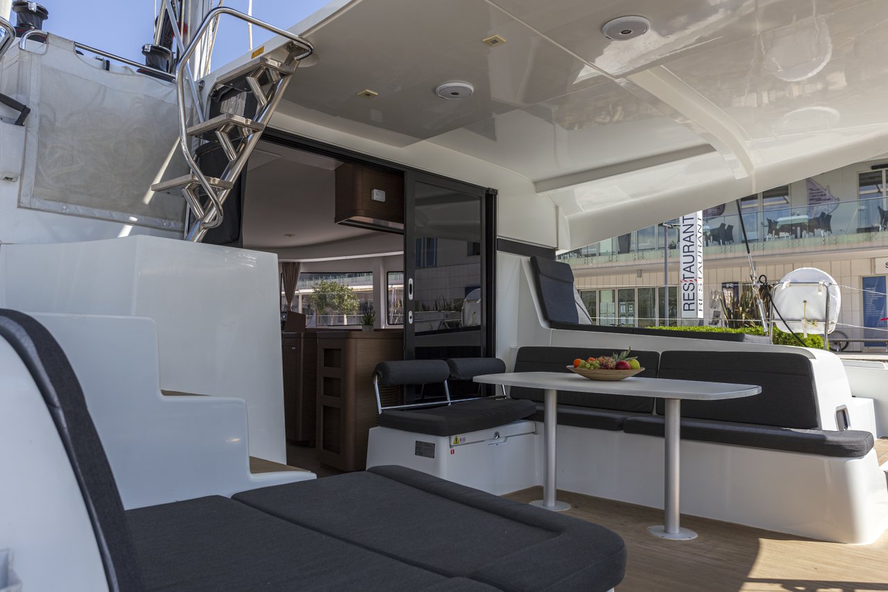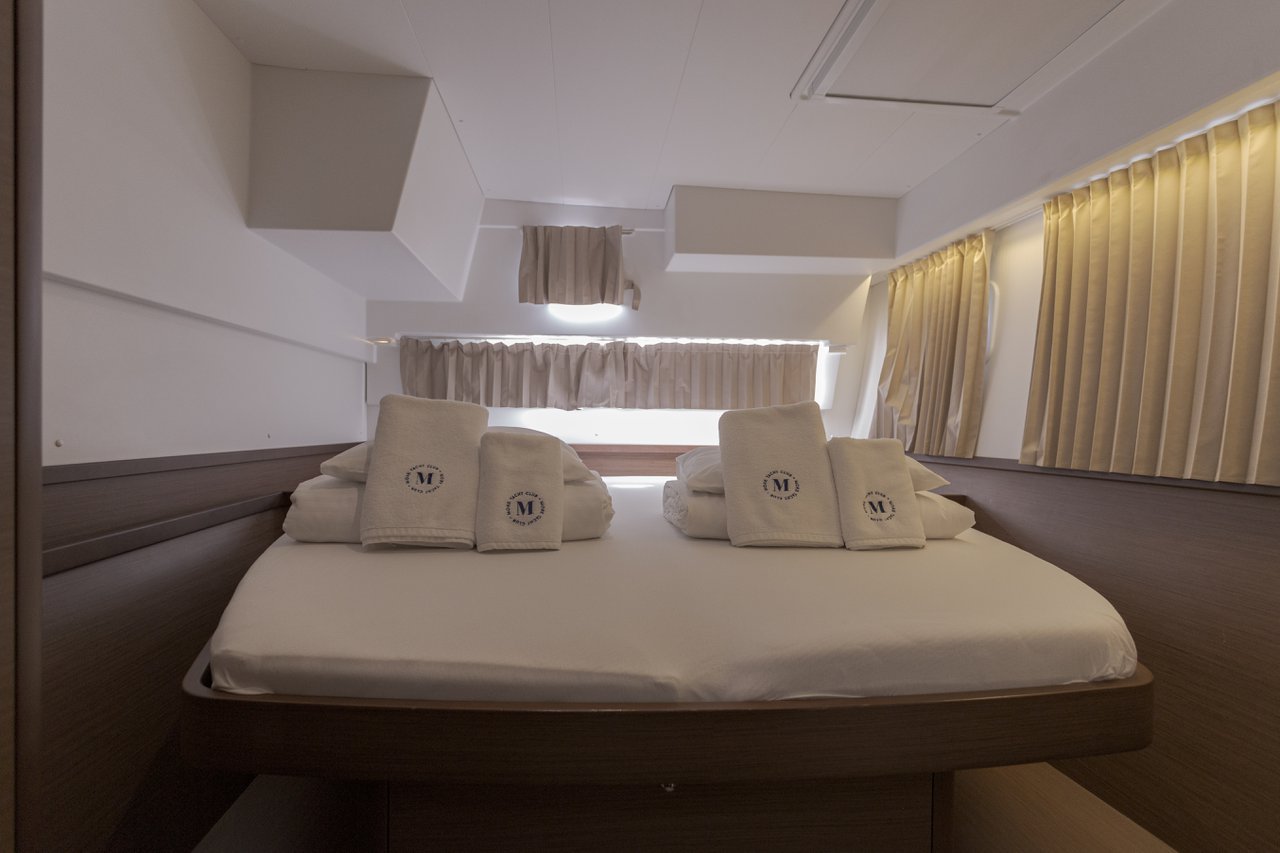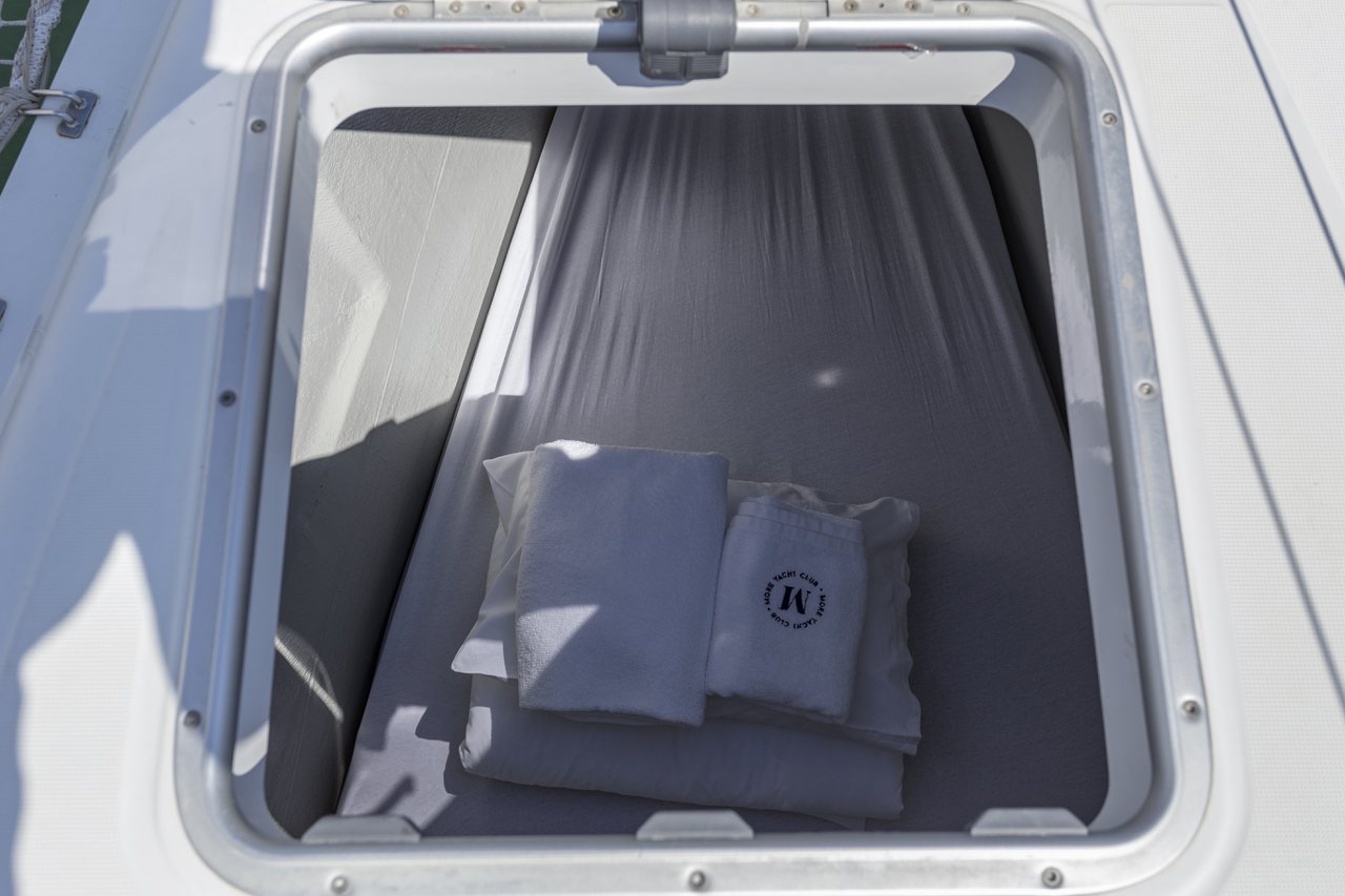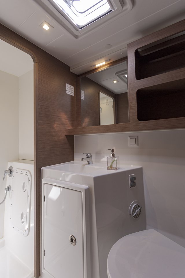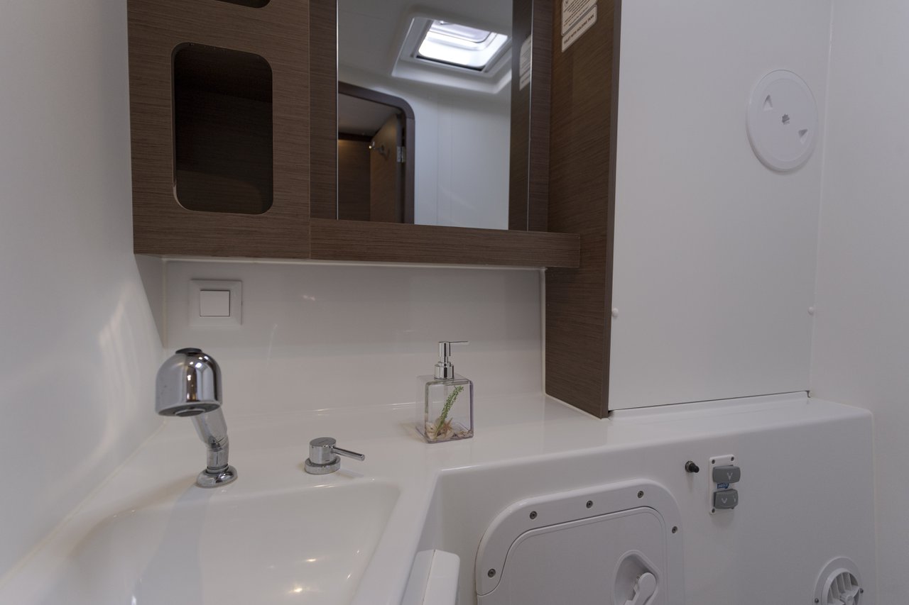 | Inside | 2. Kühlschrank, 220V Steckdosen, Fäkalientank, FUSION Sound System, Gefrierschrank, Generator, Heizung, Kaffeemaschine, Klimaanlage (ohne Landstrombedarf), Kühlschrank, Ladegerät, Landstromkabel, Moskitonetze, Pantryausstattung, Radio, Salontisch absenkbar, Ventilatoren in Salon und Kabinen, Warmwasser, WC (elektr.) |
