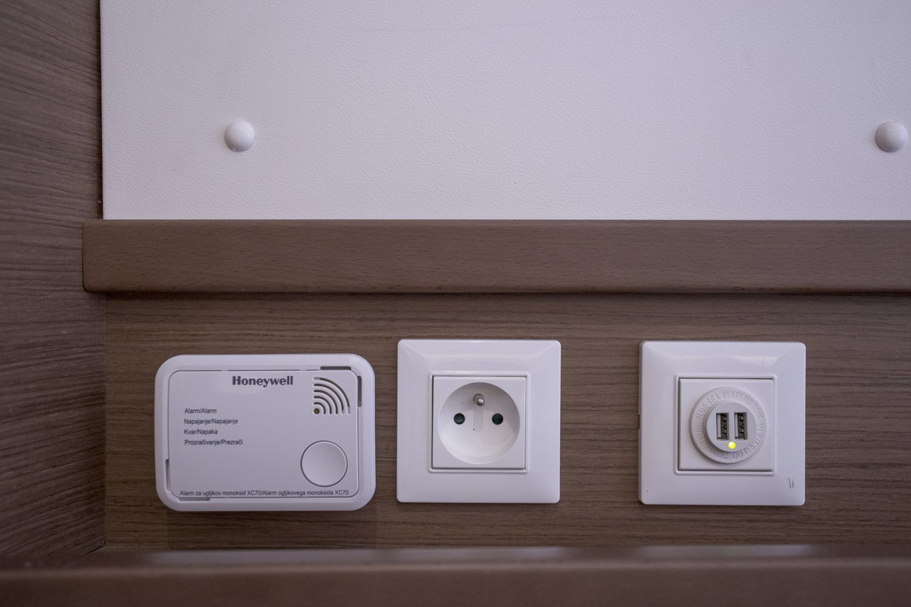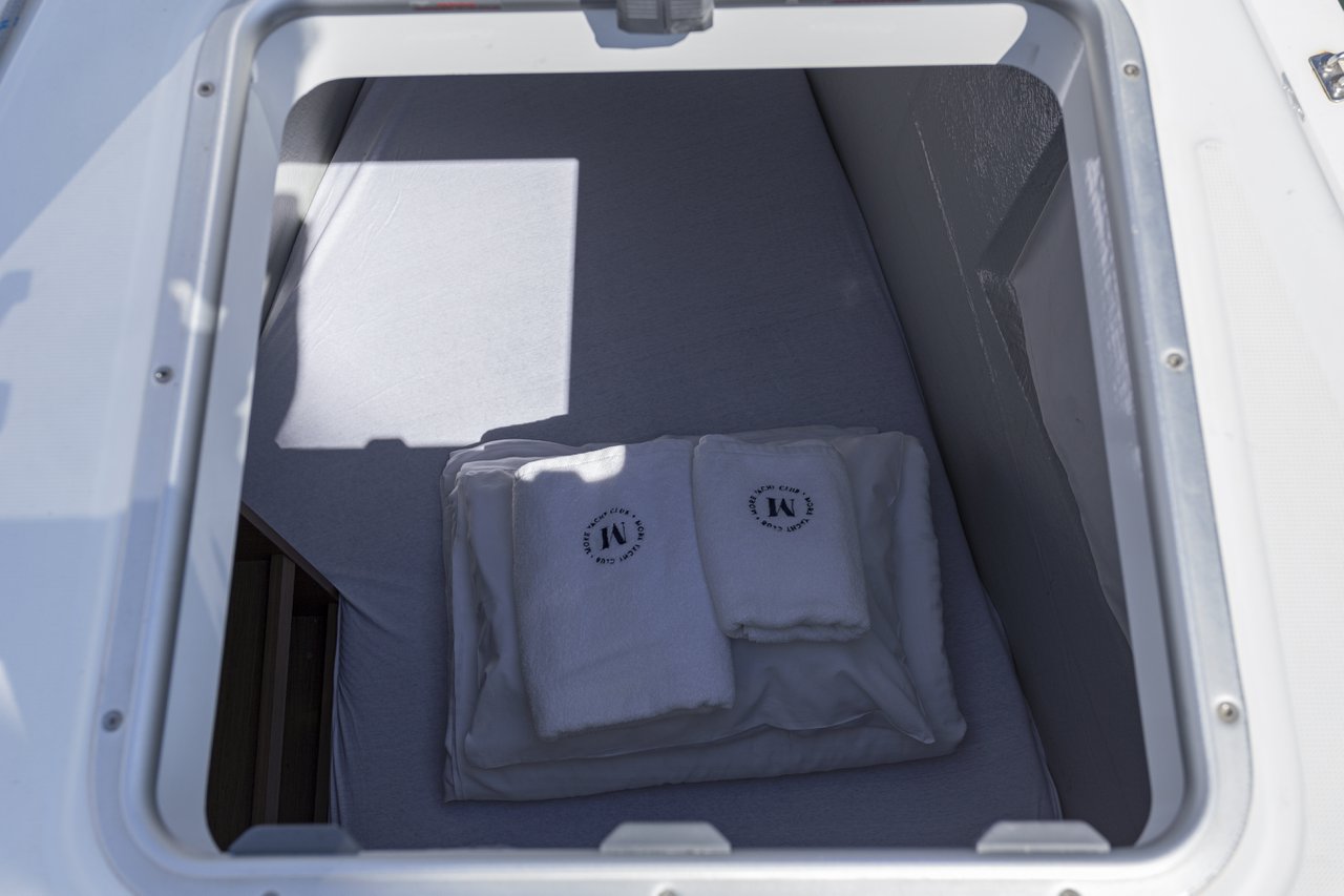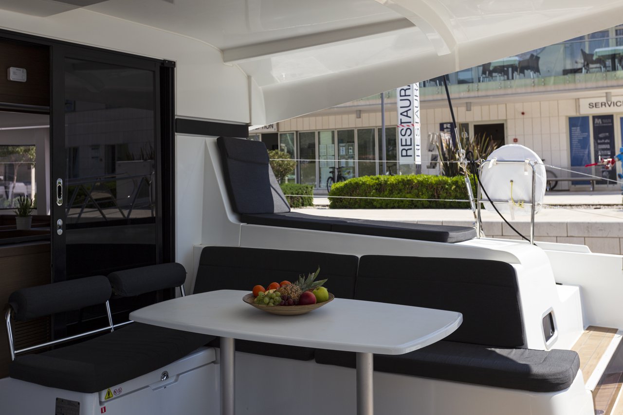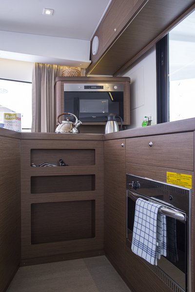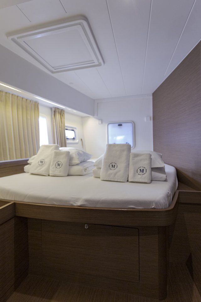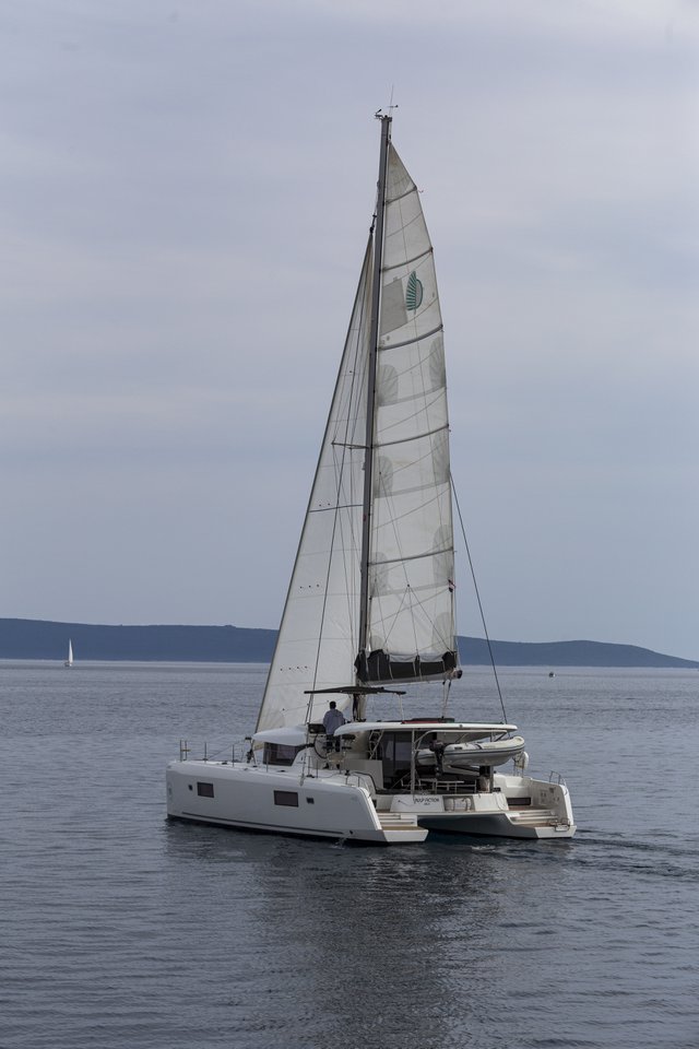 | Inside | 2. Kühlschrank, 220V Steckdosen, Fäkalientank, FUSION Sound System, Gefrierschrank, Generator, Heizung, Kaffeemaschine, Klimaanlage (ohne Landstrombedarf), Kühlschrank, Ladegerät, Landstromkabel, Moskitonetze, Pantryausstattung, Radio, Salontisch absenkbar, Ventilatoren in Salon und Kabinen, Warmwasser, WC (elektr.) |