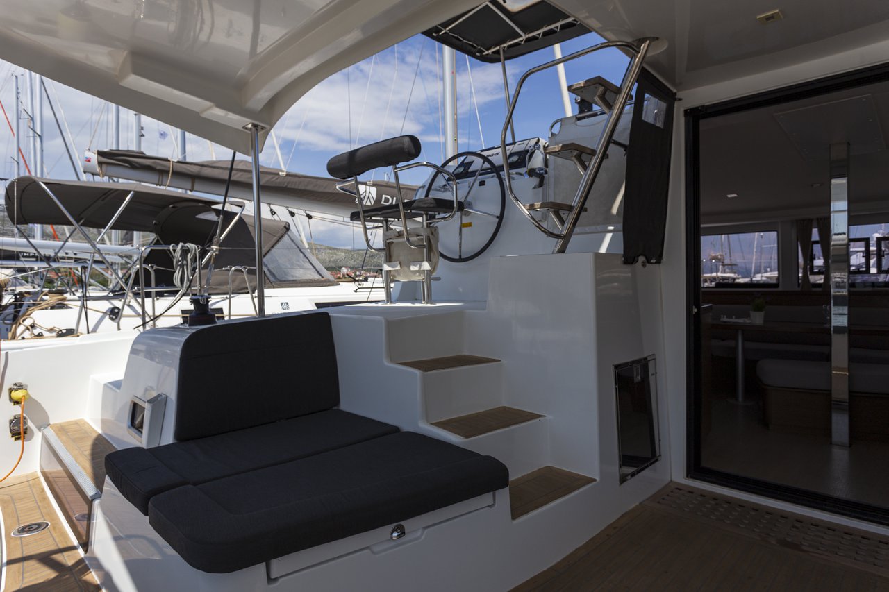 | Outside | 220 V-Landanschluss, Anker mit Kette, Badeleiter, Biminitop, Bootshaken, Cockpitdusche, Cockpitkühlschrank, Cockpitlautsprecher, Cockpitleuchte, Cockpitpolster, Cockpittisch, Davits, Deckpolster, Dieselkanister , elektr. Ankerwinsch, elektr. Winsch, Fender, Teak im Cockpit |