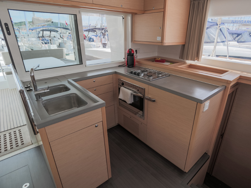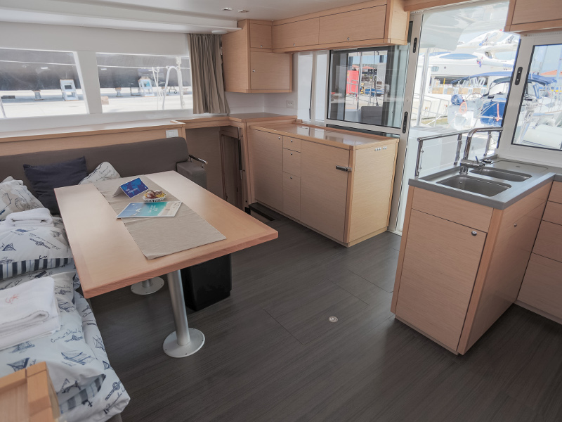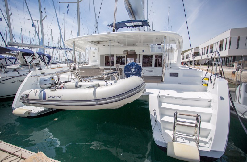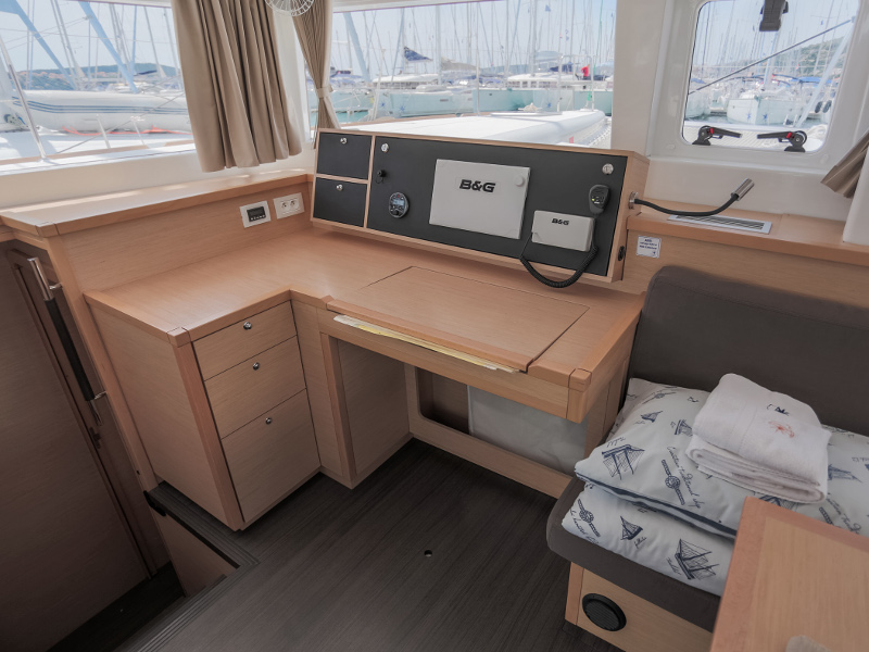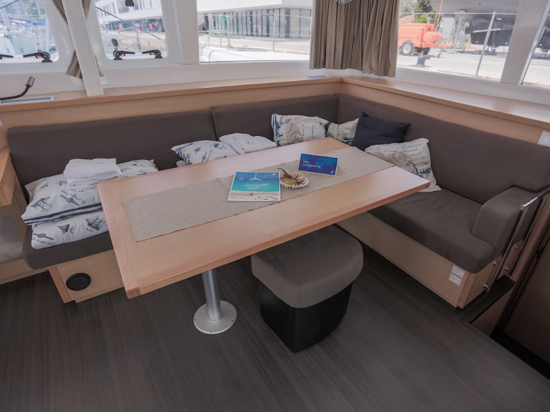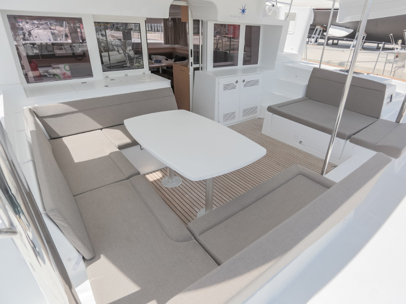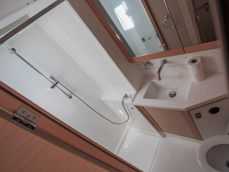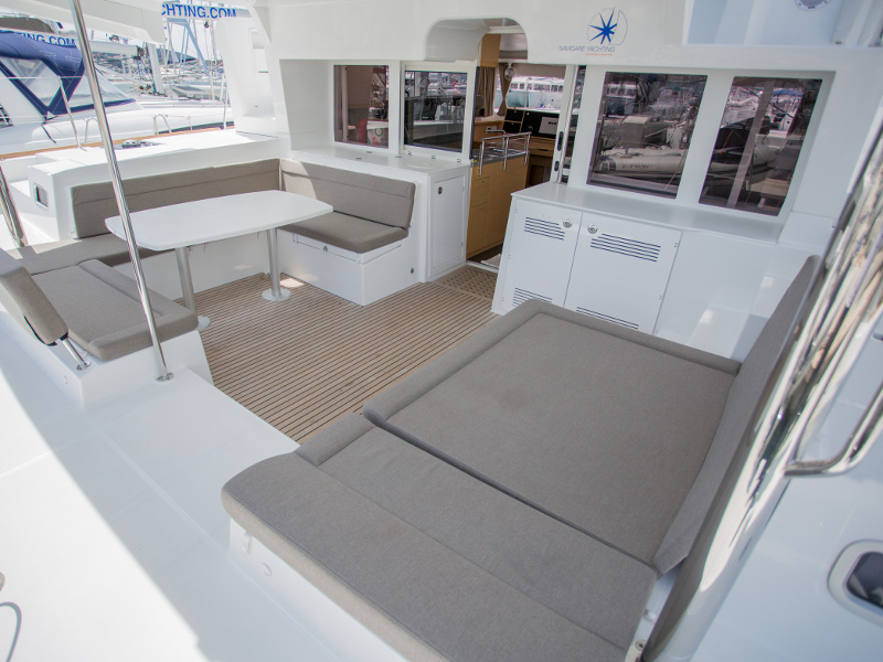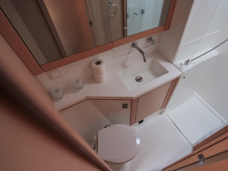 | Outside | 220 V-Landanschluss, Anker mit Kette, Badeleiter, Badeplattform, Biminitop, Cockpitdusche, Cockpitlautsprecher, Cockpitpolster, Cockpittisch, elektr. Ankerwinsch, Teak im Cockpit, Winschen |