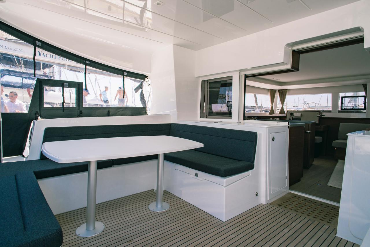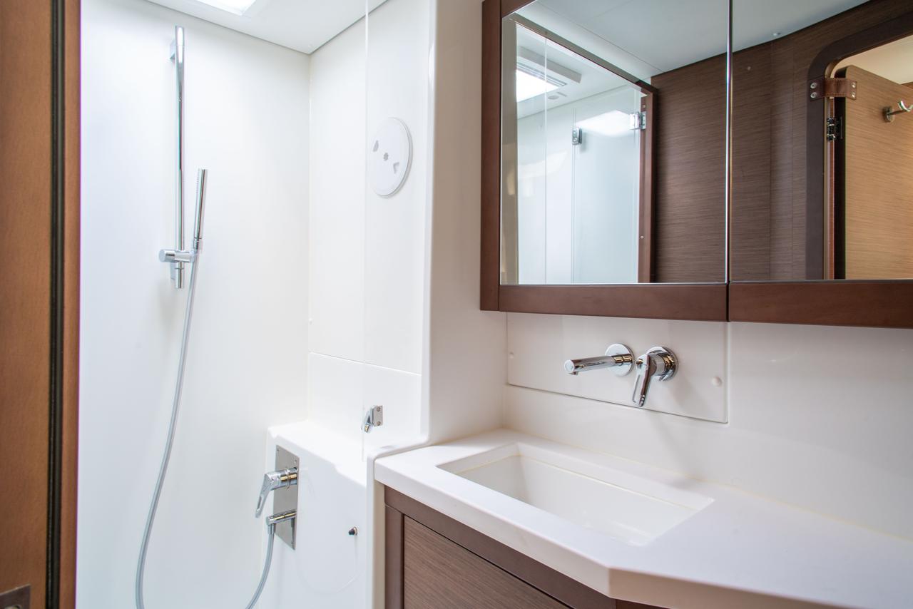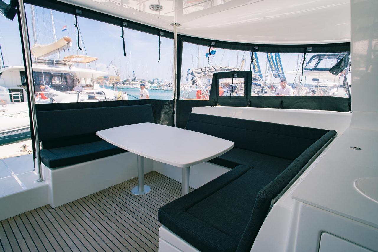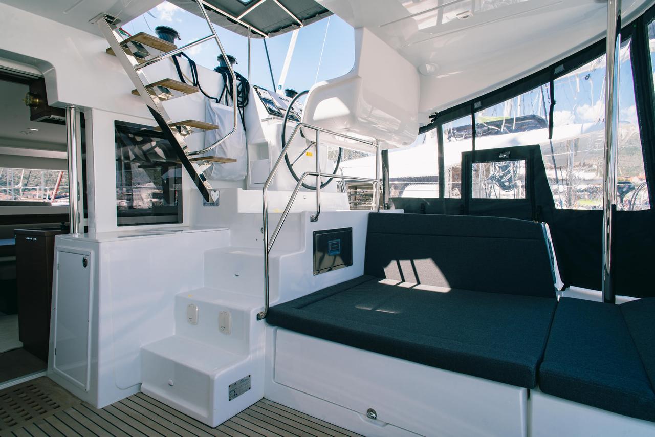 | Outside | Biminitop, Cockpitdusche, Cockpitkühlschrank, Cockpitlautsprecher, Cockpittisch, Fernsteuerung für elektr. Ankerwinsch, Sprayhood, Teak im Cockpit |