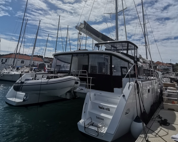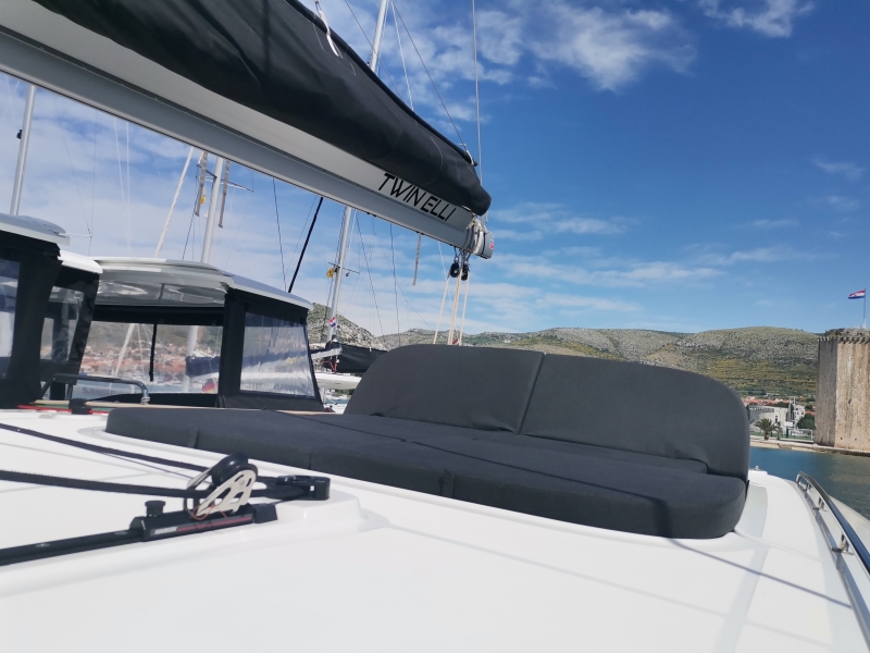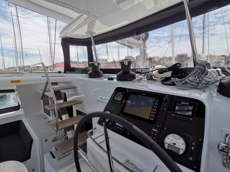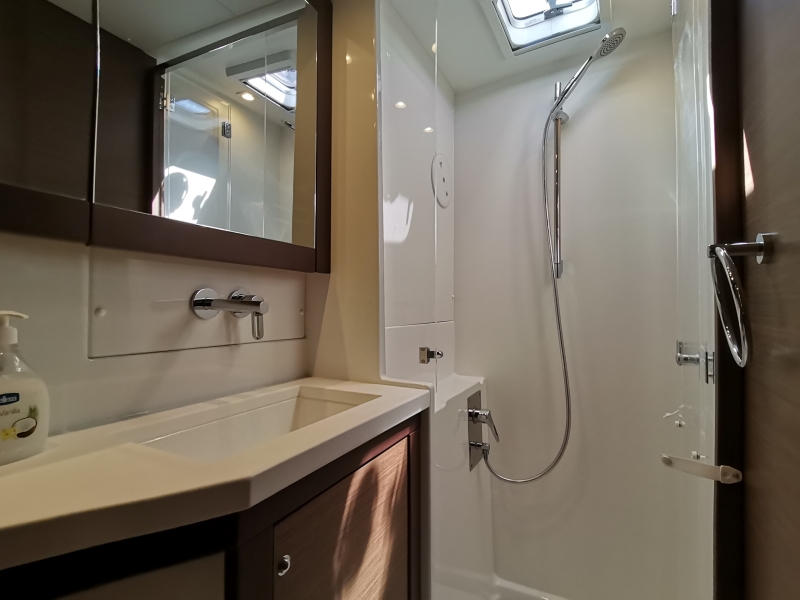 | Outside | 12 V-Anschluss, Anker mit Kette, Badeleiter, Badeplattform, Biminitop, Cockpitdusche, Cockpittisch, elektr. Ankerwinsch, elektr. Winsch, Fender, Festmacherleinen, Gangway, Solaranlage, Sprayhood, Teak im Cockpit, Unterwasserbeleuchtung, Wasserschlauch, Windex |