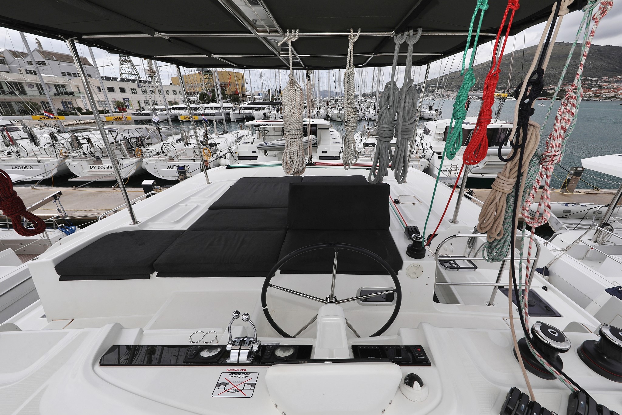 | Outside | 220 V-Landanschluss, Anker mit Kette, Badeleiter, Biminitop, Bootshaken, Cockpitdusche, Cockpitkühlschrank, Cockpitlautsprecher, Cockpitpolster, Cockpittisch, Deckpolster, Delta-Anker, elektr. Ankerwinsch, elektr. Winsch, Fender, Festmacherleinen, Gangway, Hardtop, Jambo Anker, Solaranlage, Sonnendeck, Teak im Cockpit, Unterwasserbeleuchtung, Wasserschlauch, Winschen |