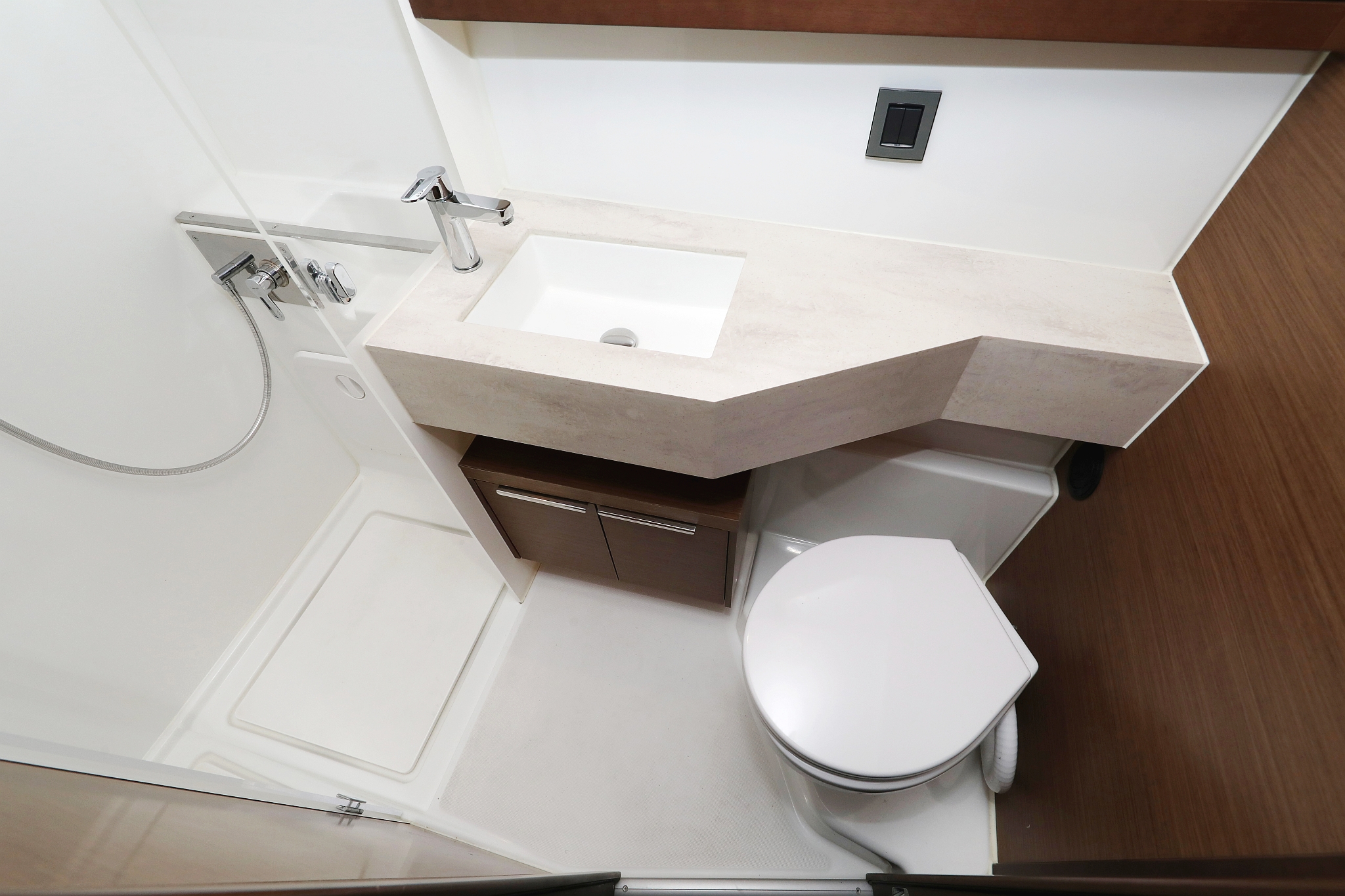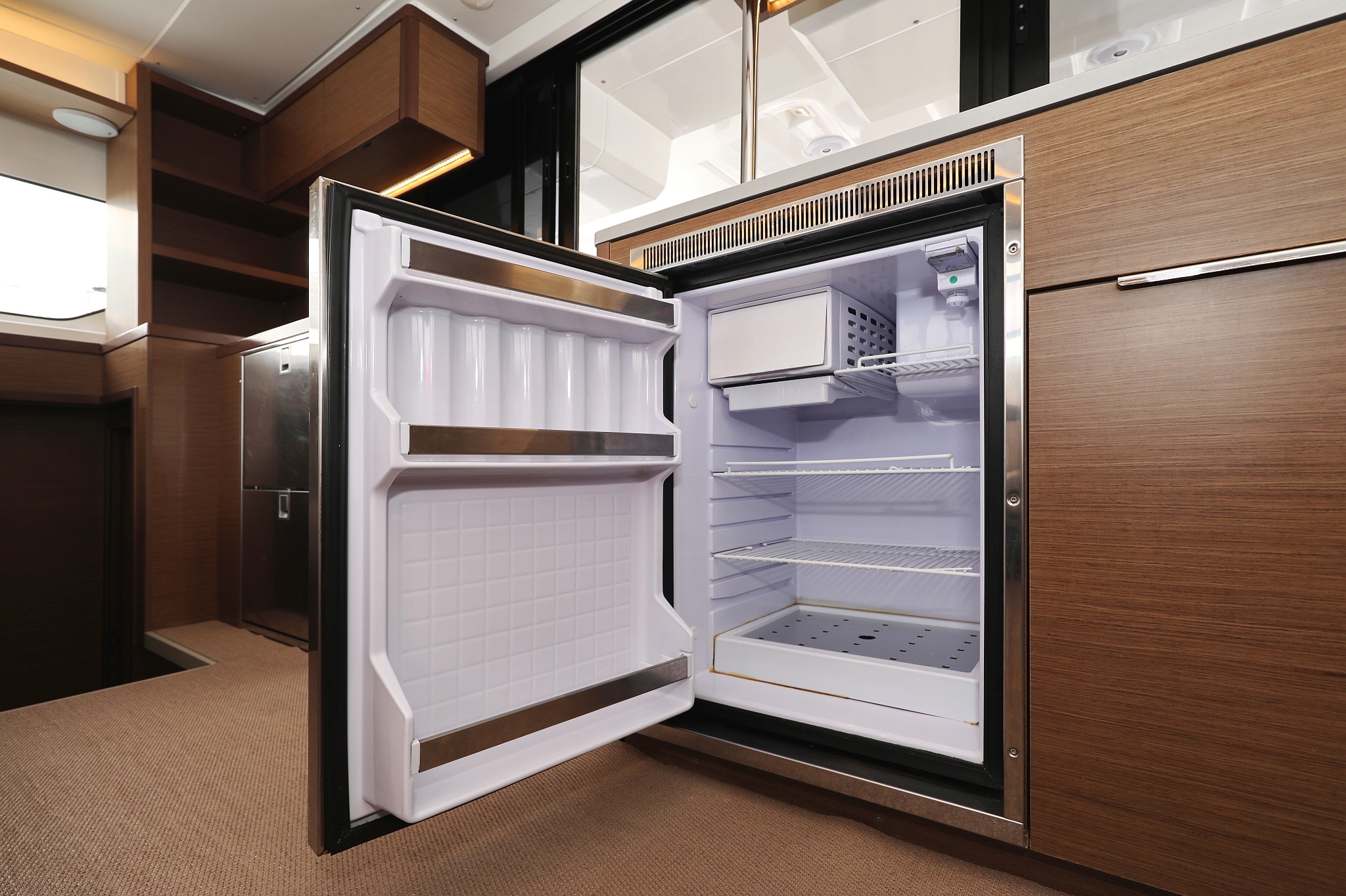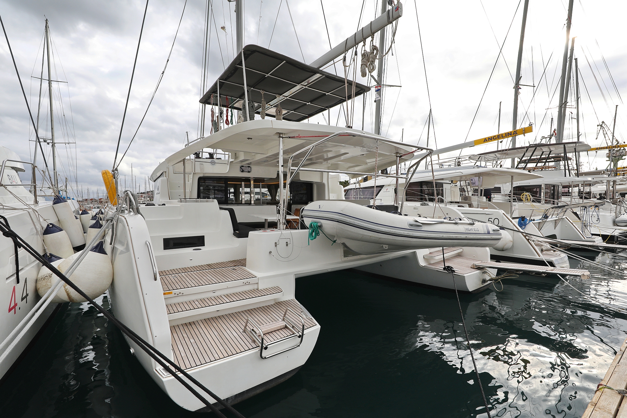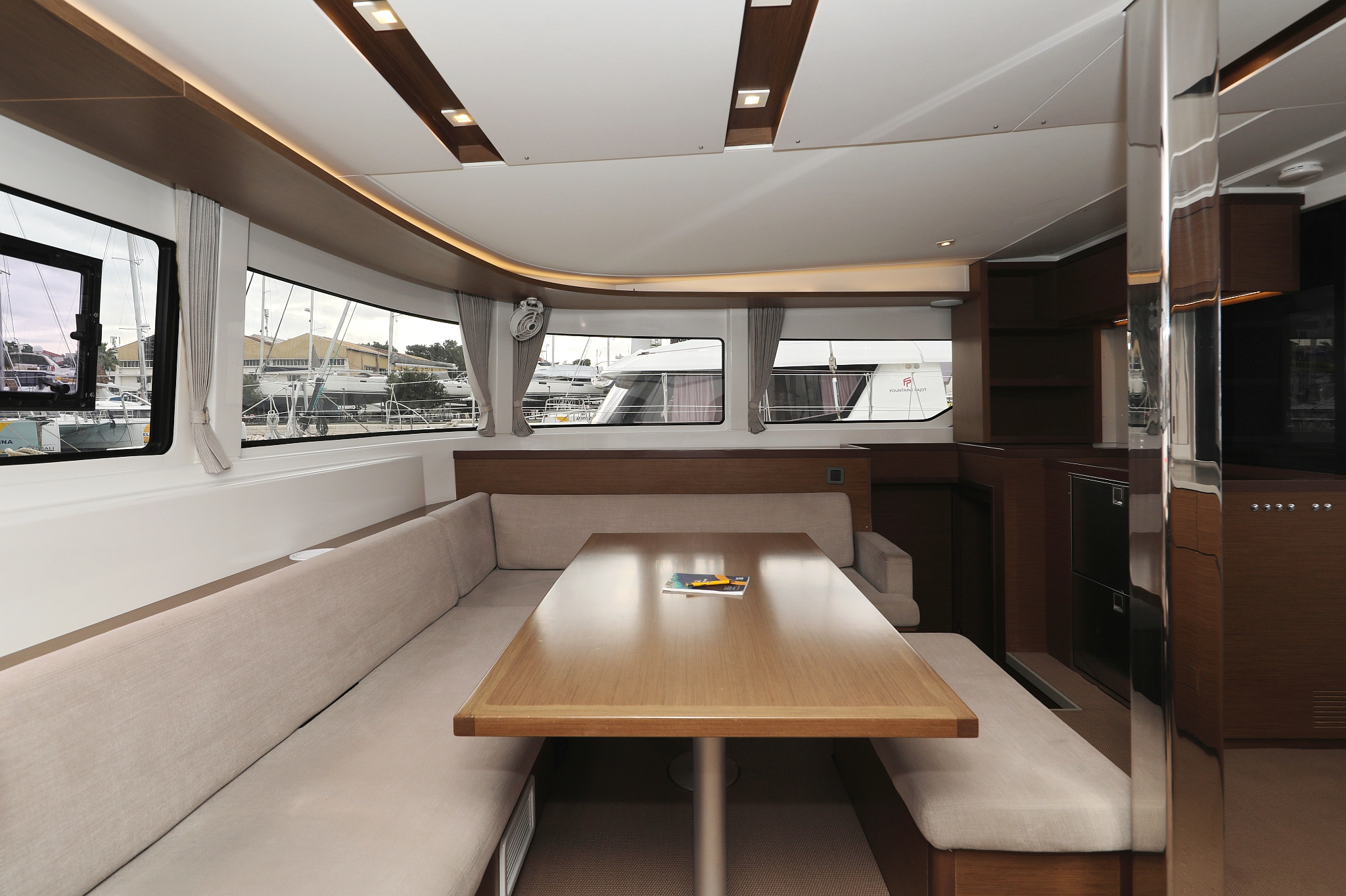 | Inside | 220V Steckdosen, Borduhr, Fäkalientank, Gasherd mit Backofen, Geschirrspüler, Heizung, Klimaanlage (Landstrom), Kühlschrank, Ladegerät, Landstromkabel, Lautsprecher im Salon, Mikrowelle, Mokkakanne, Pantryausstattung, Radio, Spülbecken, USB Steckdose, Ventilatoren in Salon und Kabinen, Warmwasser, Wasserkocher, WC (elektr.) |