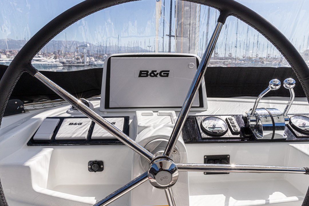 | Outside | Anker mit Kette, Biminitop, Cockpitdusche, Cockpitkühlschrank, elektr. Ankerwinsch, elektr. Winsch, Gangway |