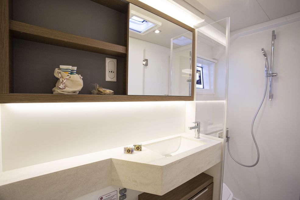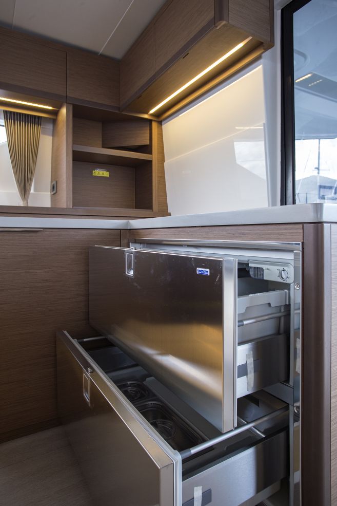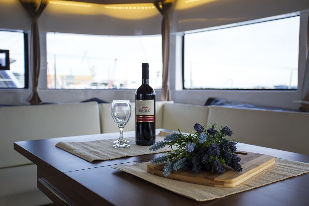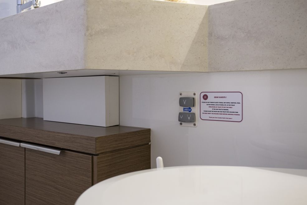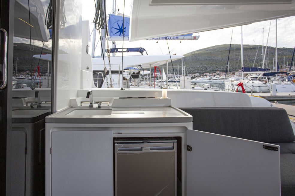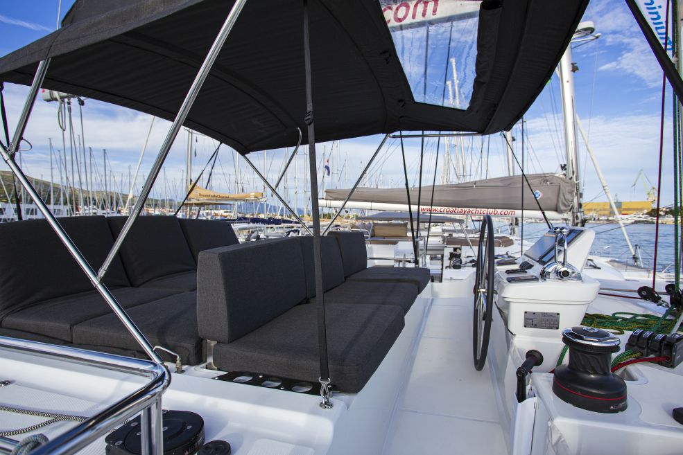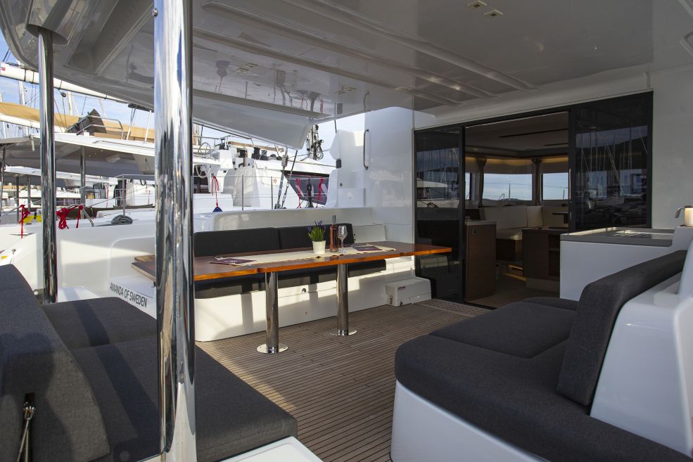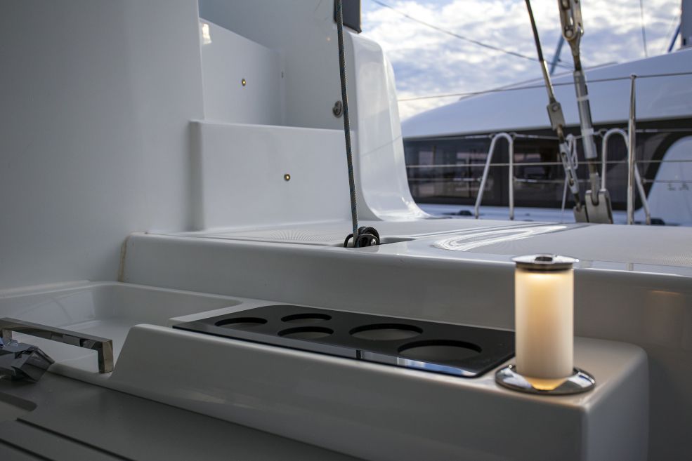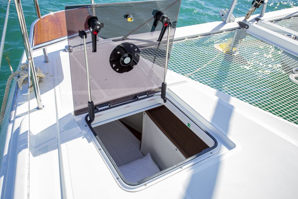 | Outside | Badeleiter, Cockpitdusche, Cockpitlautsprecher, Cockpitpolster, Cockpittisch, Davits, elektr. Ankerwinsch, elektr. Winsch |