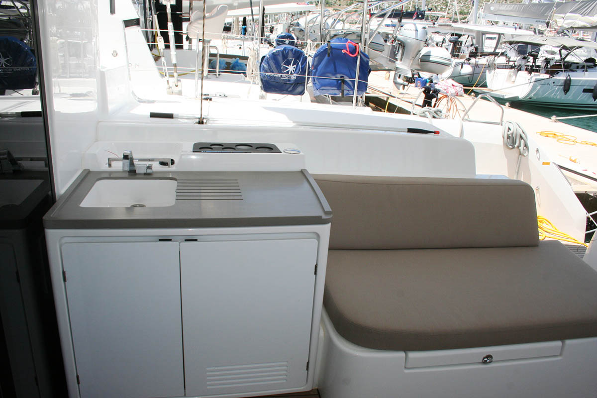 220 V-Landanschluss, Anker mit Kette, Badeleiter, Biminitop, Cockpitdusche, Cockpitlautsprecher, Cockpitpolster, Cockpittisch, Deckpolster, elektr. Ankerwinsch, elektr. Winsch, Teak im Cockpit, Unterwasserbeleuchtung, Winschen |