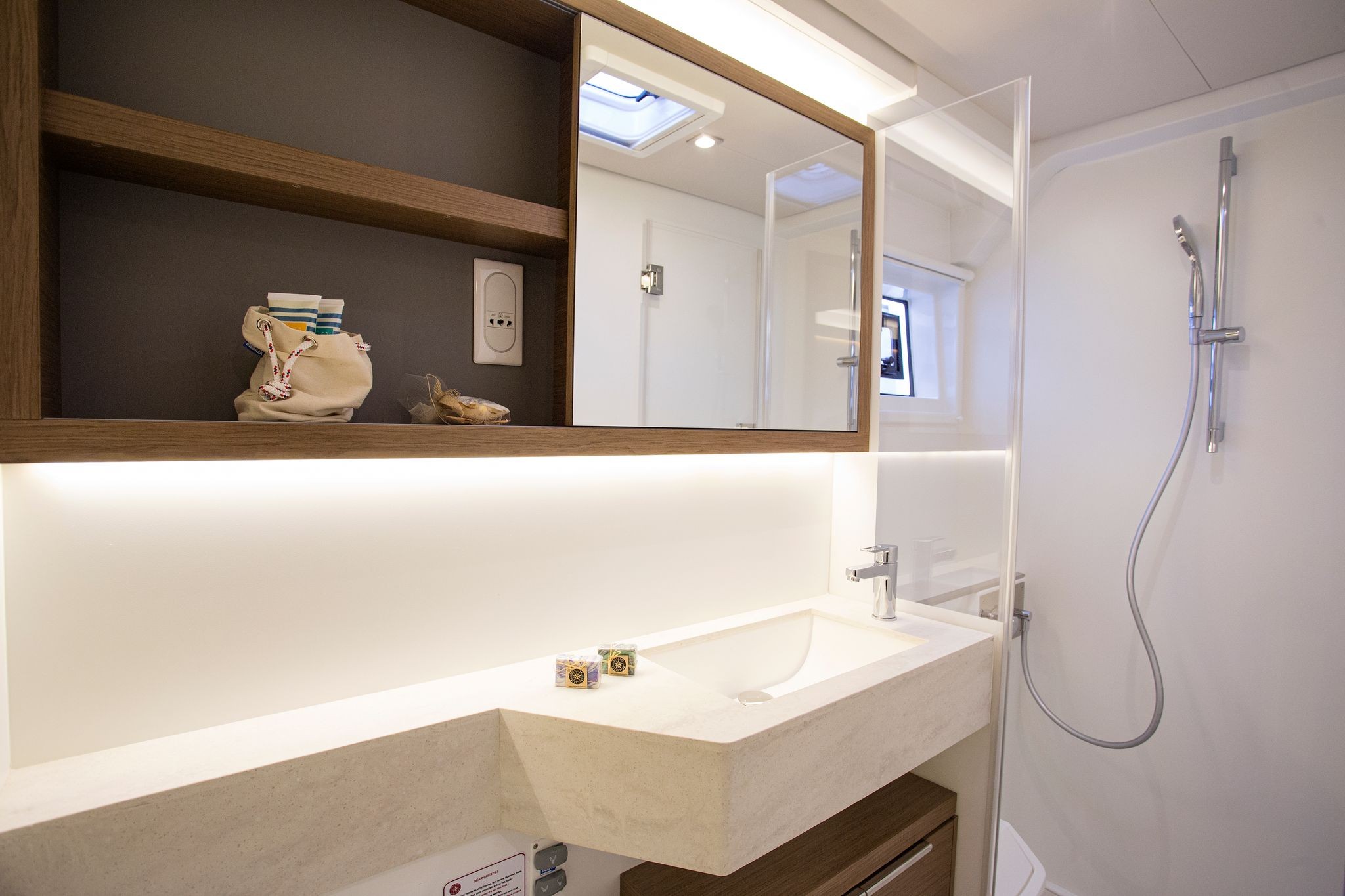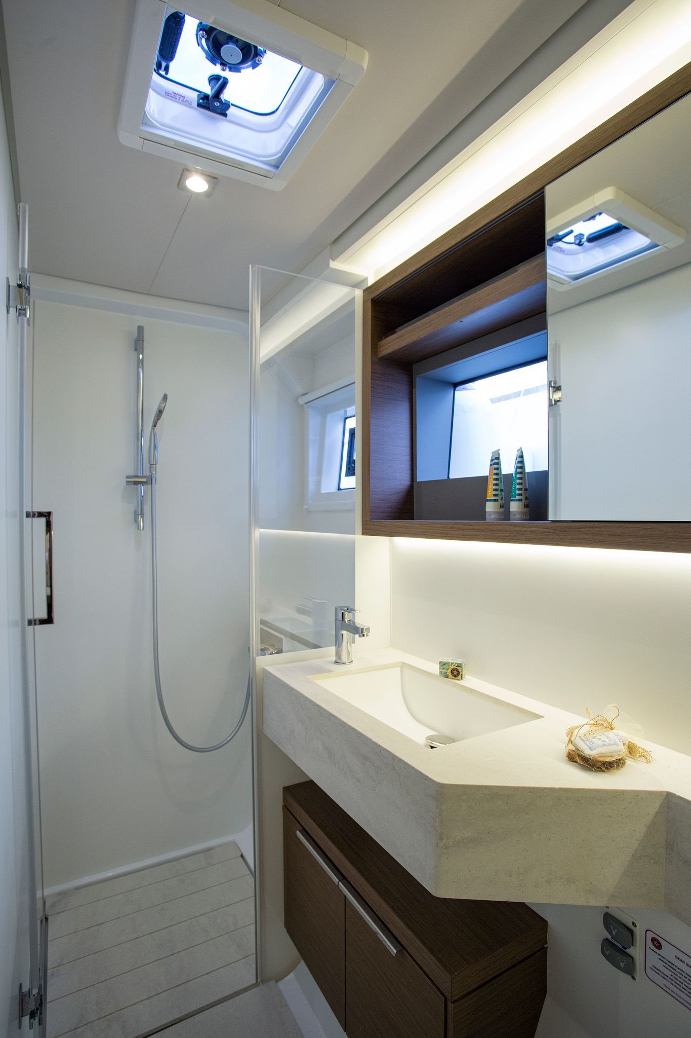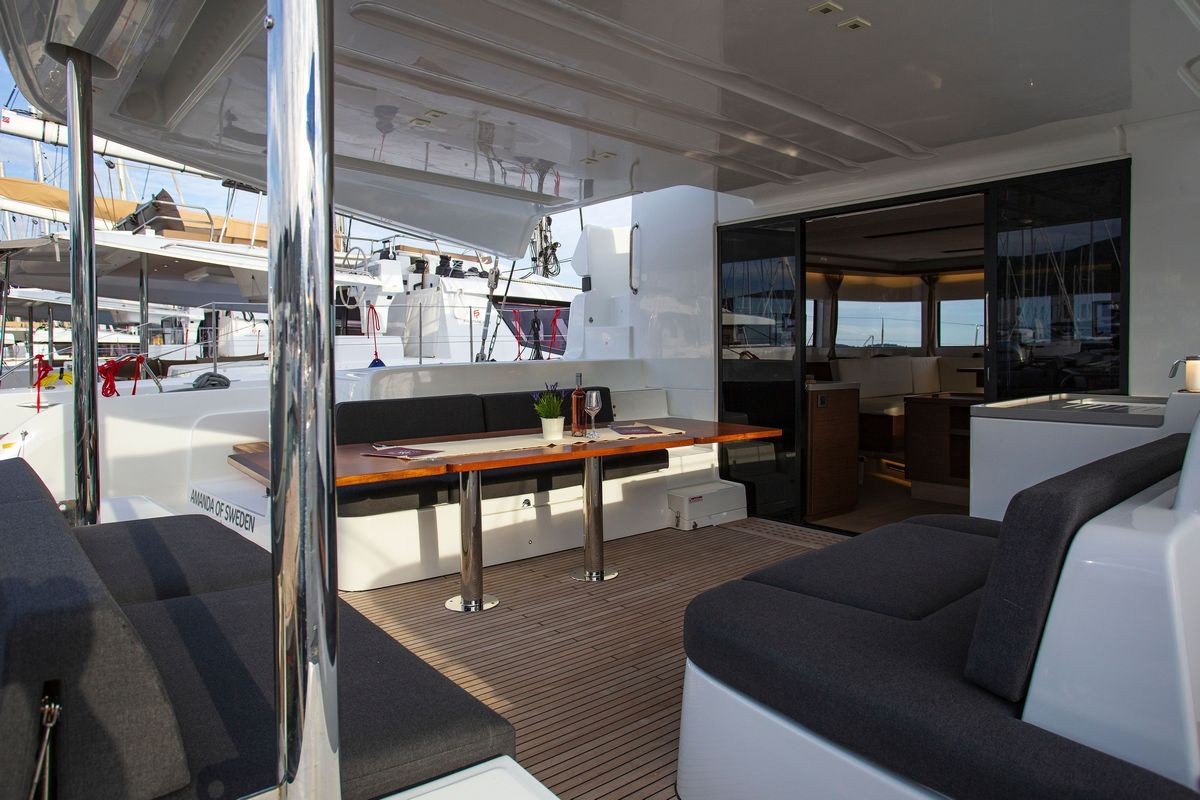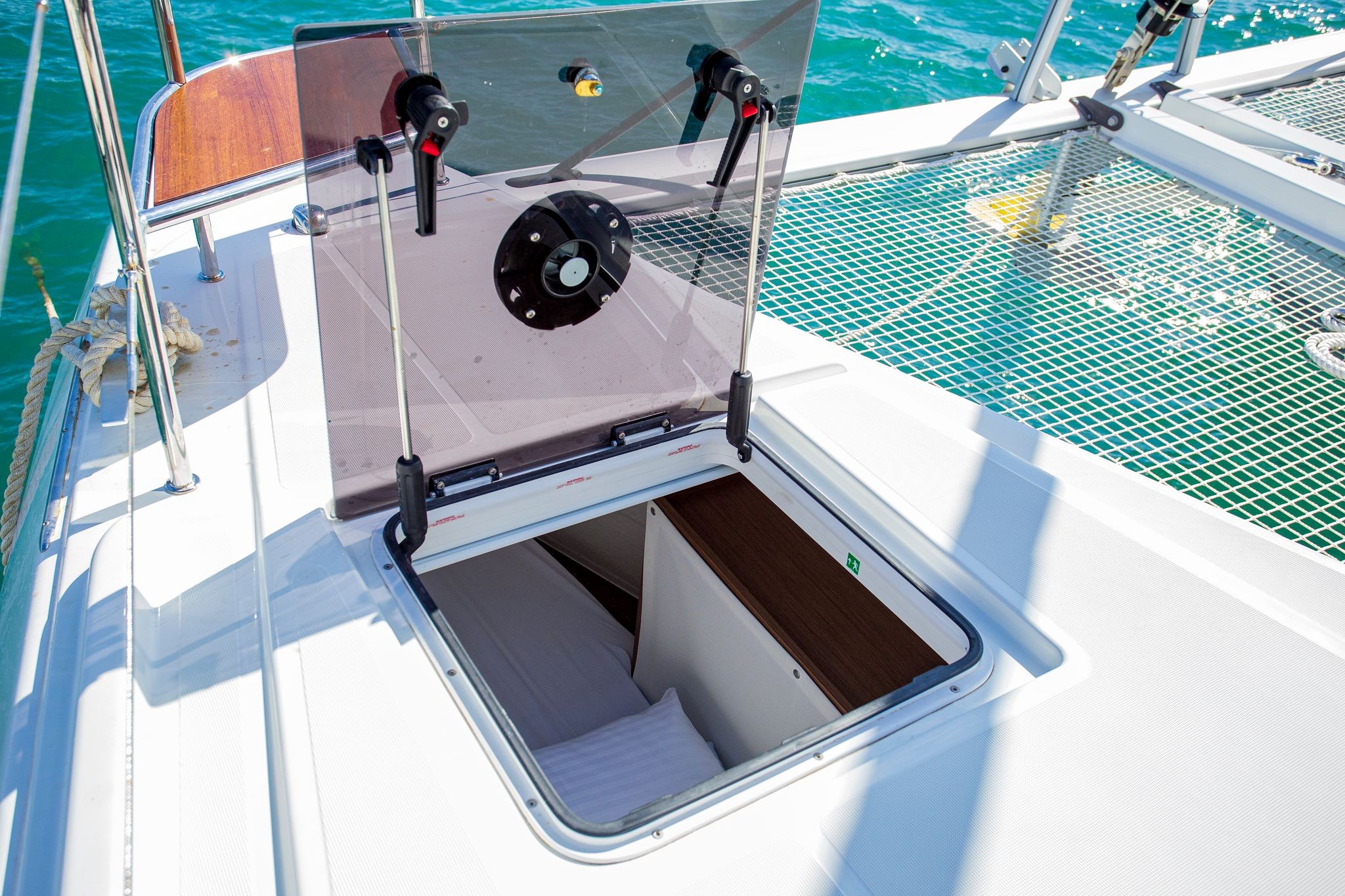 | Outside | Badeleiter, Cockpitdusche, Cockpitlautsprecher, Cockpitpolster, Cockpittisch, Davits, elektr. Ankerwinsch, elektr. Winsch, Solaranlage |