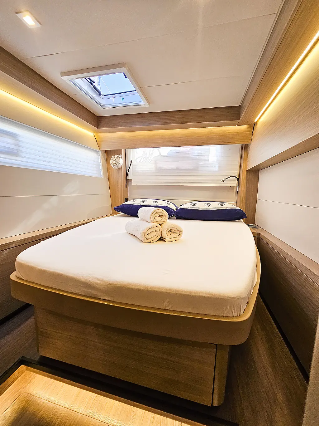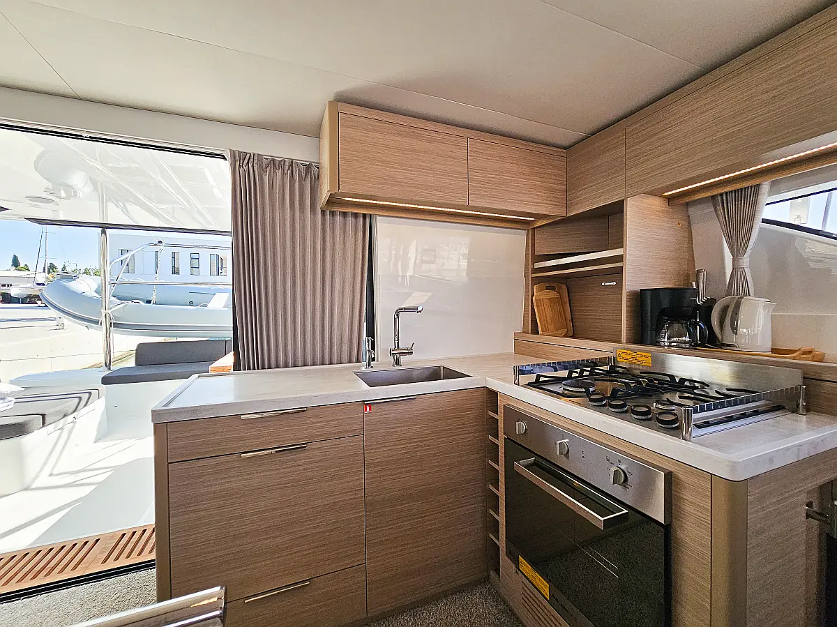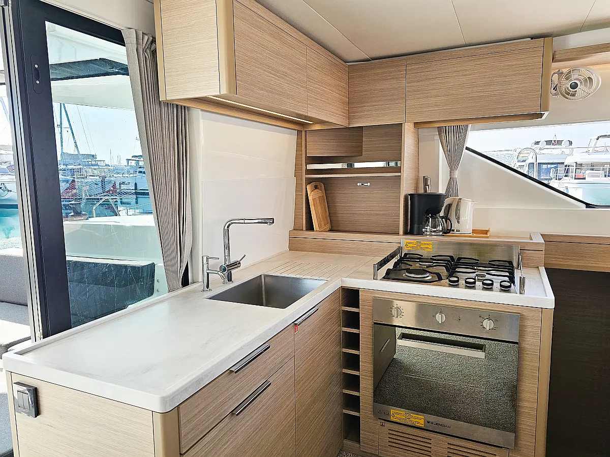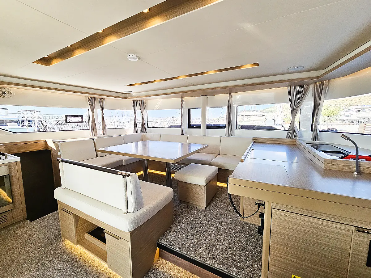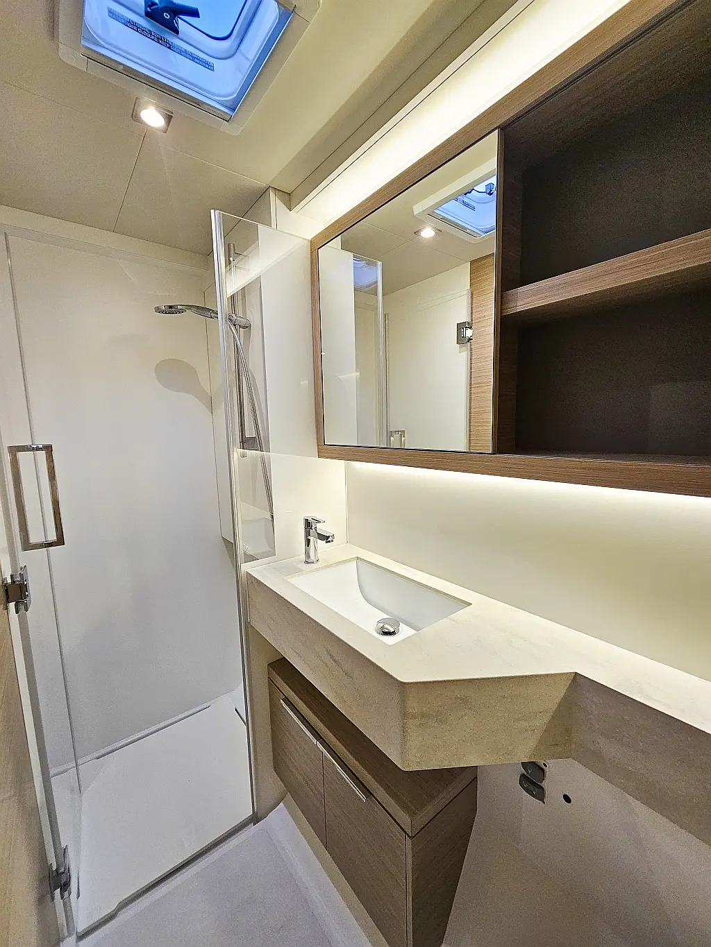 | Inside | Eiswürfelmaschine, Gasherd, Generator, Inverter 12V/220V, Klimaanlage (ohne Landstrombedarf), Kühlschrank, Landstromkabel, Warmwasser, Watermaker, WC (elektr.) |