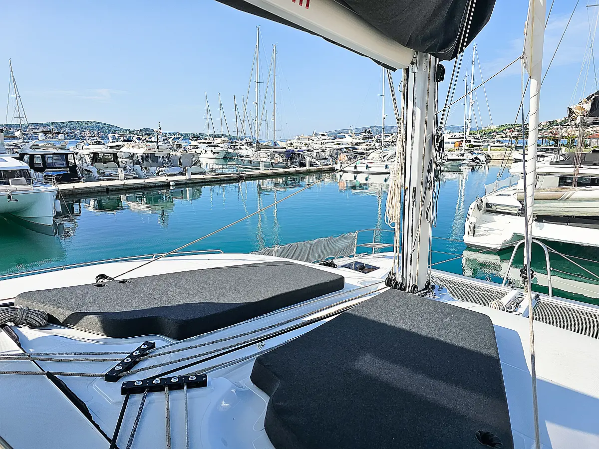 | Outside | Anker mit Kette, Biminitop, Cockpitdusche, Cockpitkühlschrank, elektr. Ankerwinsch, elektr. Winsch, Gangway |