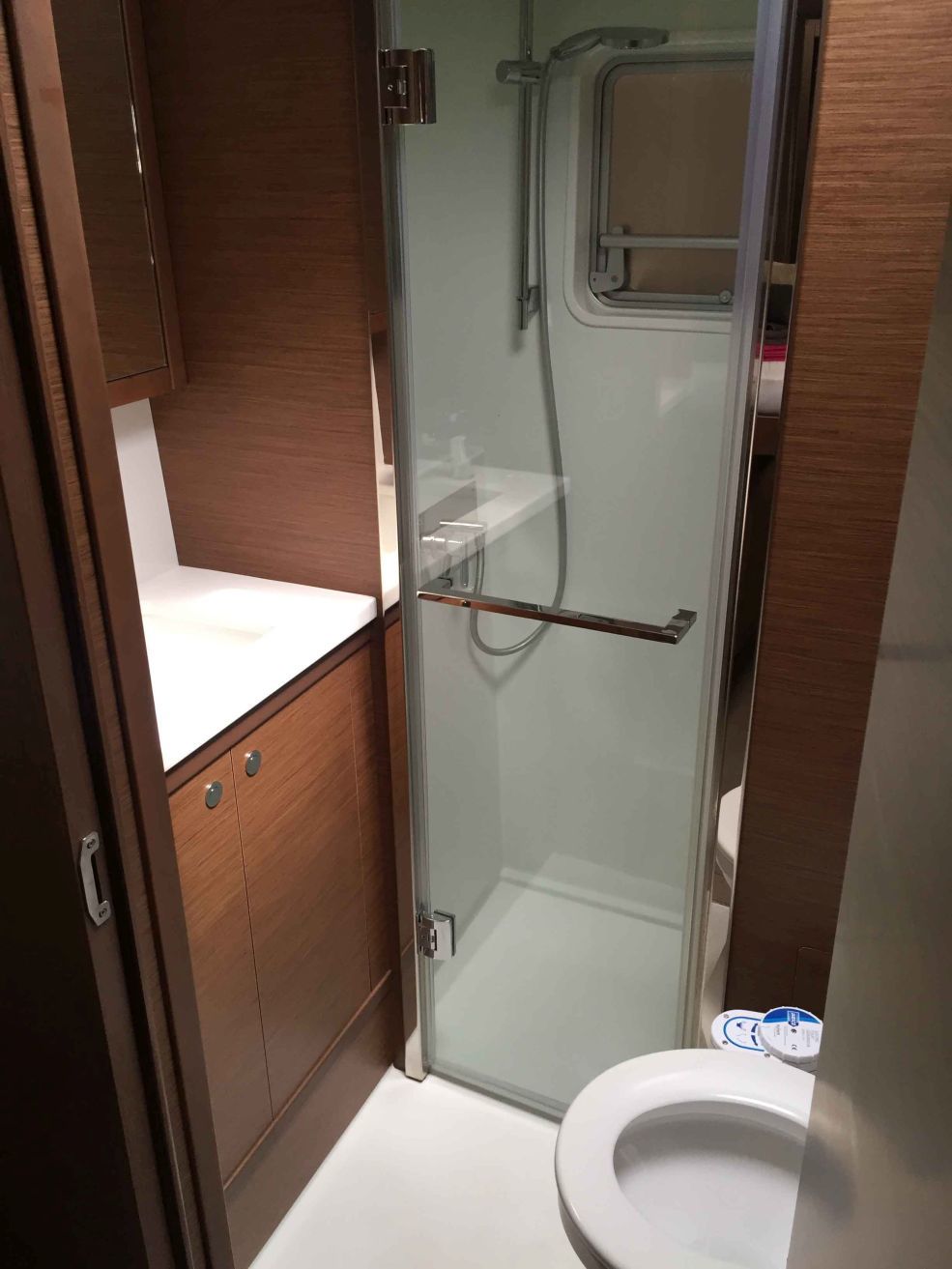 | Inside | 220V Steckdosen, Backofen, Gasherd, Gefrierschrank, Generator, Inverter 12V/220V, Klimaanlage (ohne Landstrombedarf), Kühlschrank, Ladegerät, Radio mit Bluetooth, USB Steckdose, Ventilatoren in Kabinen, Warmwasser, Watermaker, WC (elektr.) |