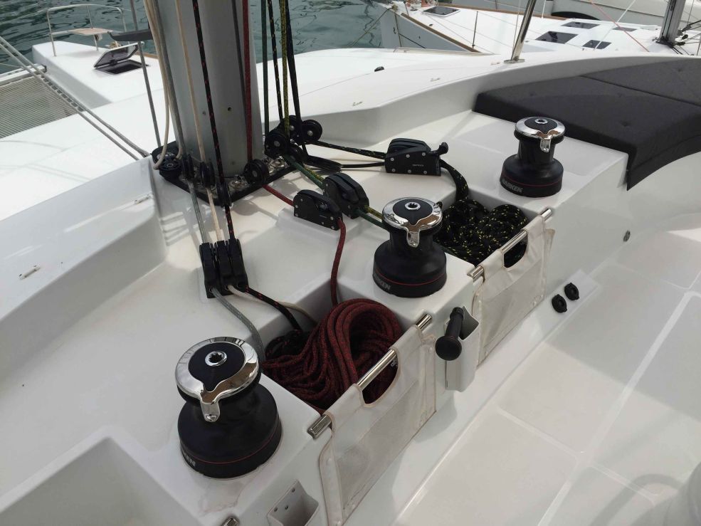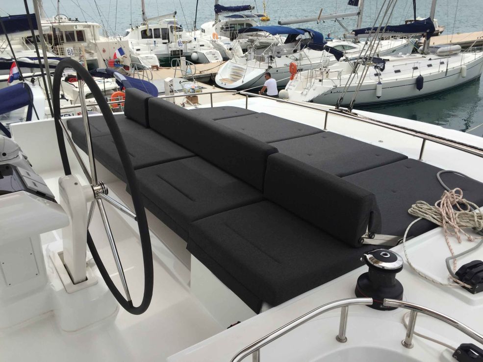 | Outside | Badeleiter, Biminitop, Cockpitdusche, Cockpitkühlschrank, Cockpitlautsprecher, Cockpitpolster, Cockpittisch, Davits, elektr. Ankerwinsch, elektr. Großwinsch, elektr. Winsch, Flybridge, Kühlschrank auf Flybridge, Polster auf Flybridge, Selbstholende Winschen |