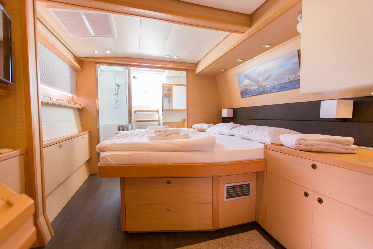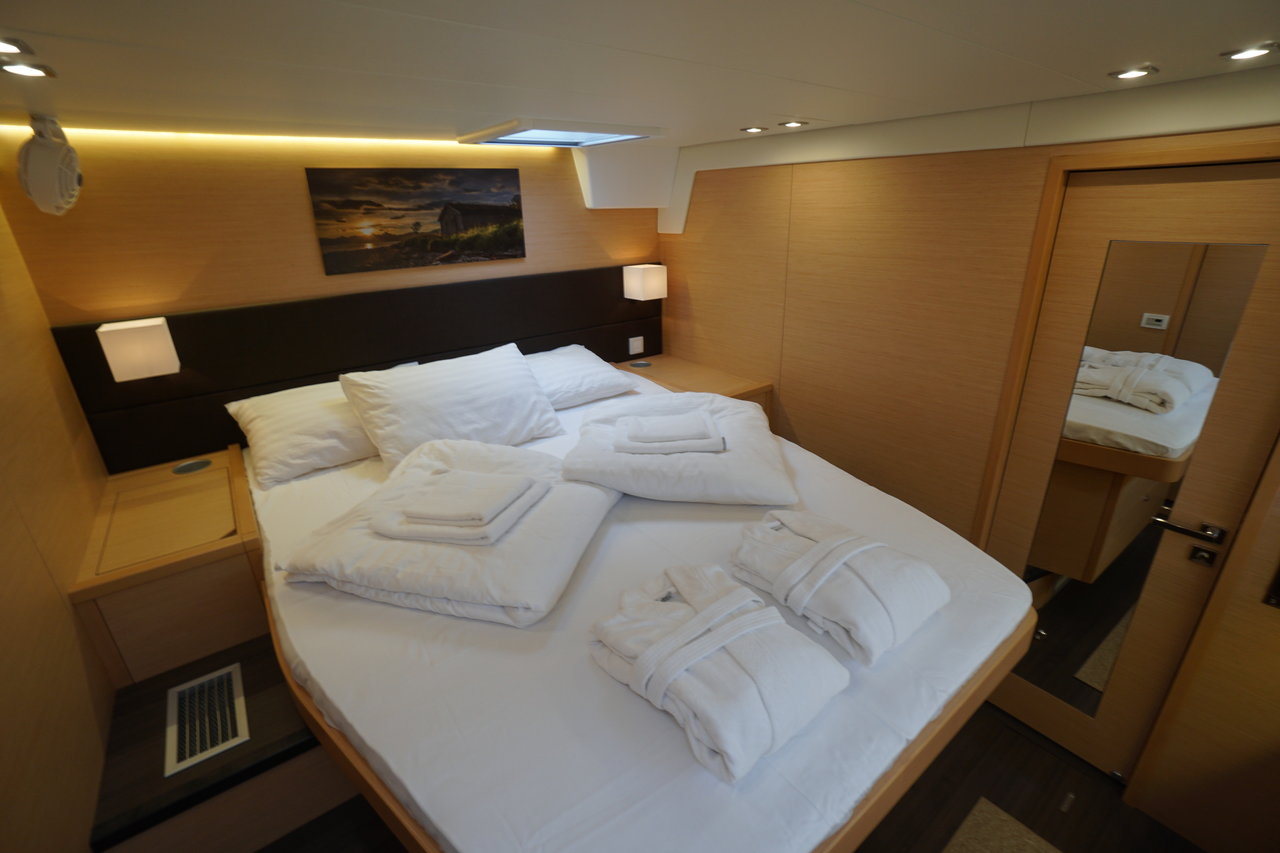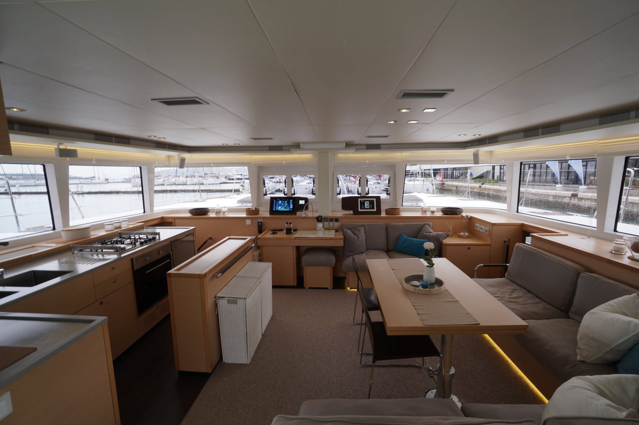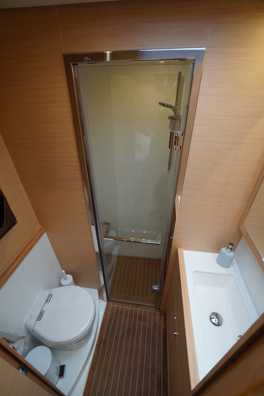| Inside | 2. Kühlschrank, 220V Steckdosen, Elektrische Filterkaffeemaschine, Fäkalientank, Frischwasserpumpe, Gasherd, Gefrierschrank, Generator, Geschirrspüler, Heizung, Inverter 12V/220V, Klimaanlage (ohne Landstrombedarf), Kühlschrank, Ladegerät, Lautsprecher im Salon, LCD Fernseher, Mikrowelle, Mokkakanne, Pantryausstattung, Radio, Toaster, Waschmaschine mit Trockner, Wasserkocher, Watermaker, WC (elektr.) |