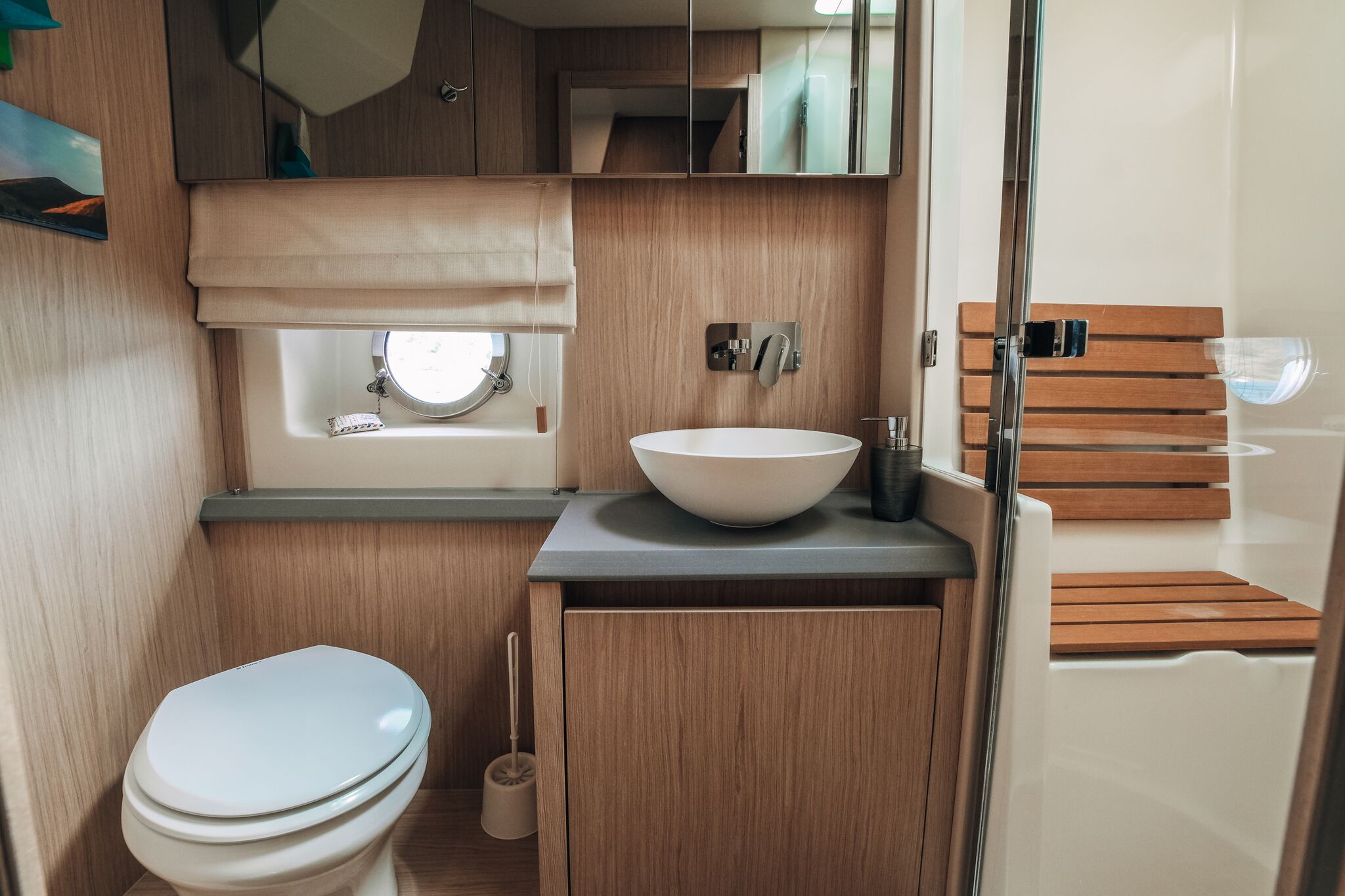 | Inside | Eiswürfelmaschine, Geschirrspüler, Klimaanlage (ohne Landstrombedarf), Kühlschrank, Radio mit CD, TV, Waschmaschine |