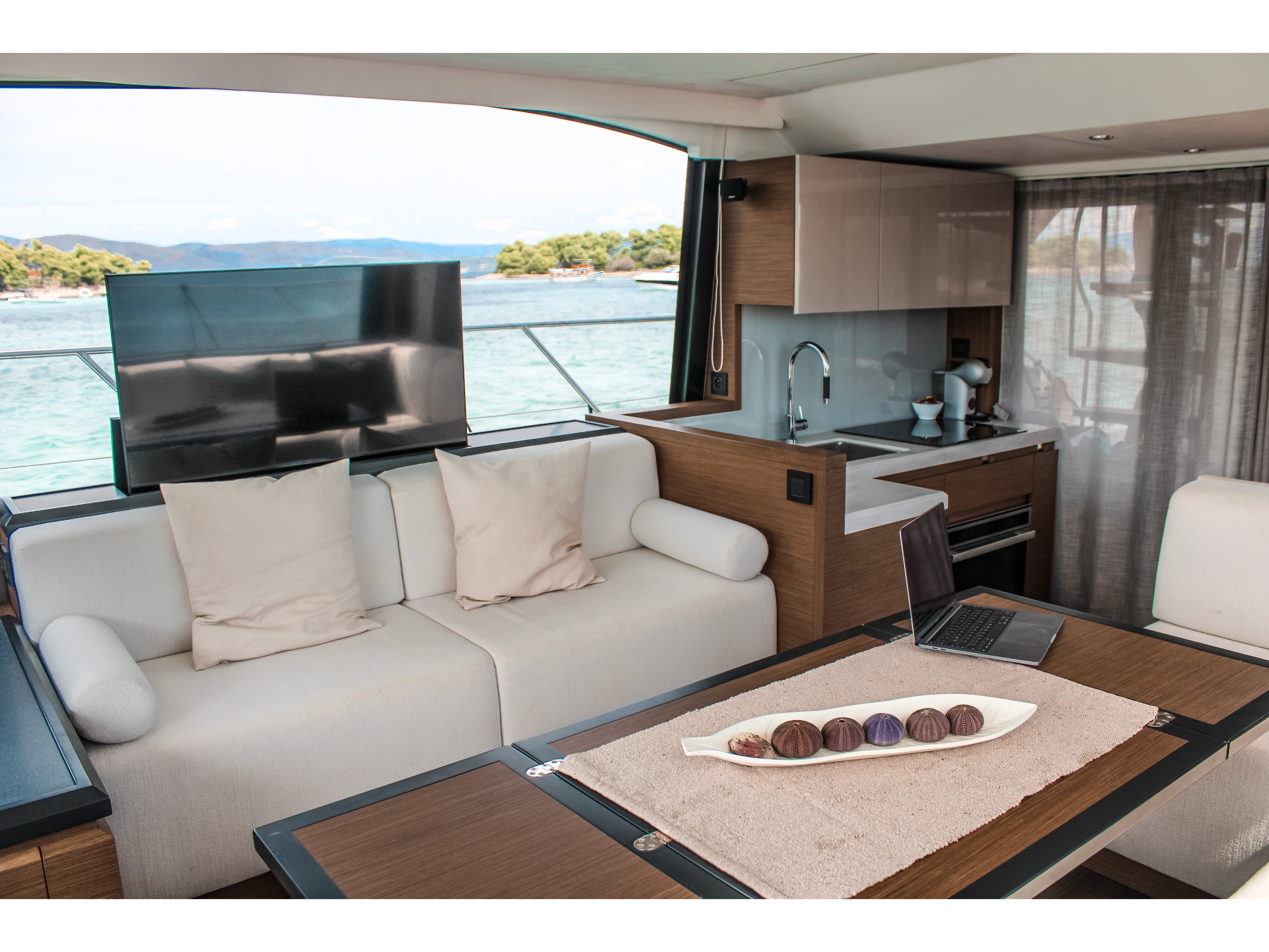 | Outside | Badeplattform, Biminitop, Cockpitlautsprecher, Flybridge |