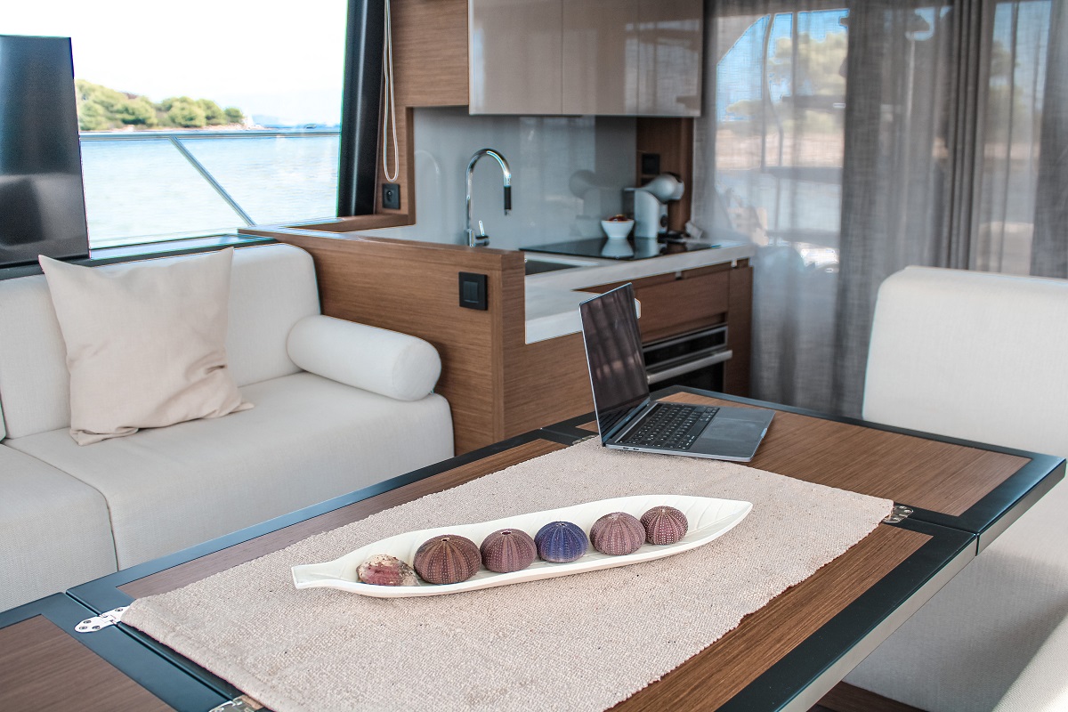 | Inside | Backofen, Dusche, Generator, Heizung, Herd, Klimaanlage (ohne Landstrombedarf), Kühlschrank, LCD Fernseher, Pantryausstattung, Spülbecken, Watermaker |