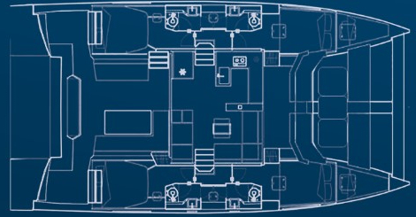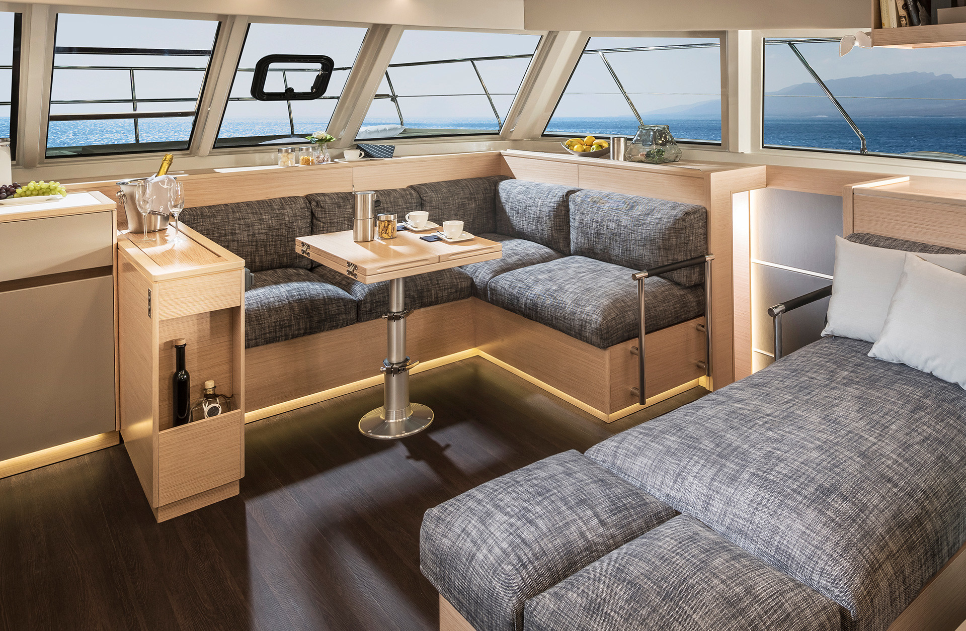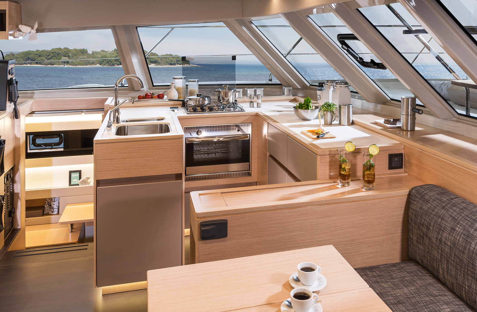 | Inside | Backofen, Gasherd, Generator, Inverter 12V/220V, Klimaanlage (ohne Landstrombedarf), Kühlschrank, Radio, Salontisch absenkbar, USB Steckdose, Ventilatoren in Kabinen, Watermaker, WC (elektr.) |